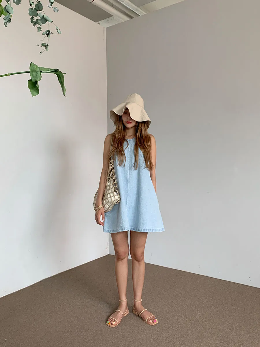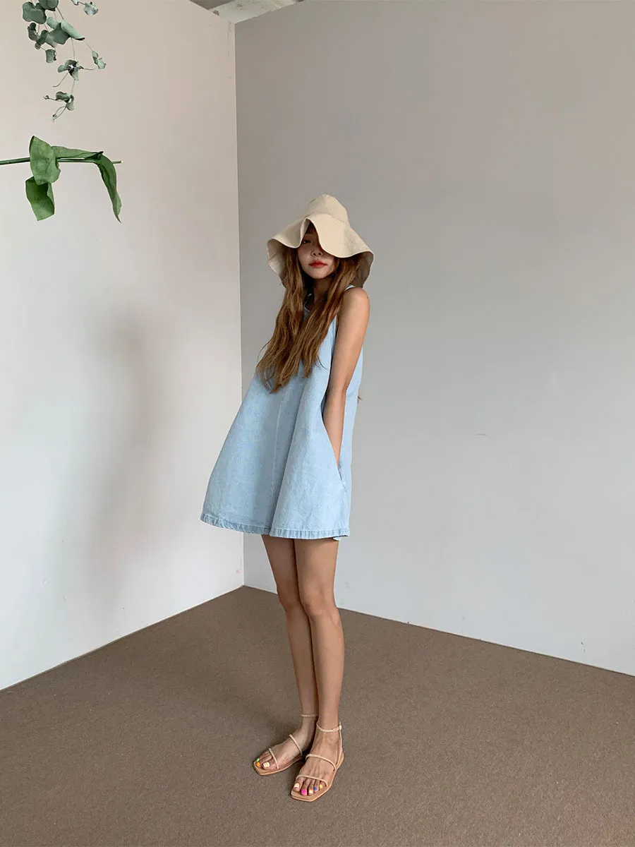 春日微醺暖陽-裙擺飄飄牛仔吊帶裙