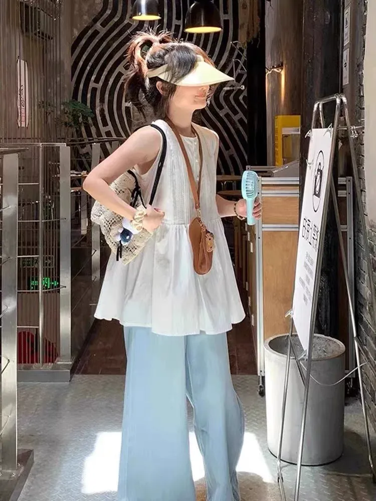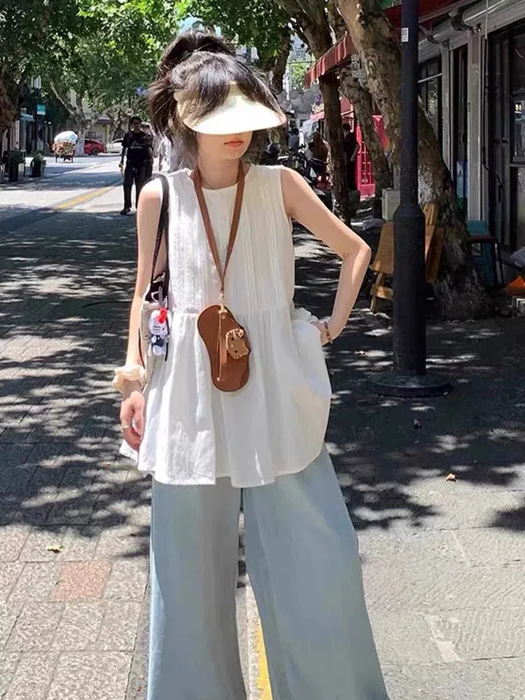 春日微醺暖陽-純情圓領蕾絲傘背心