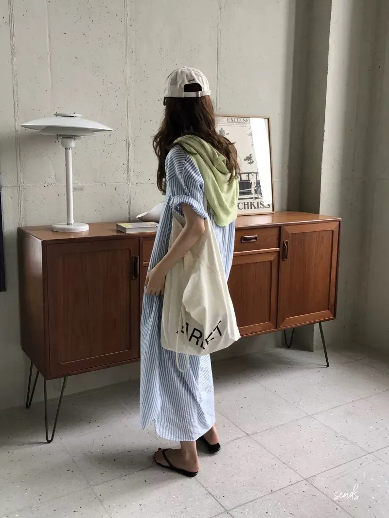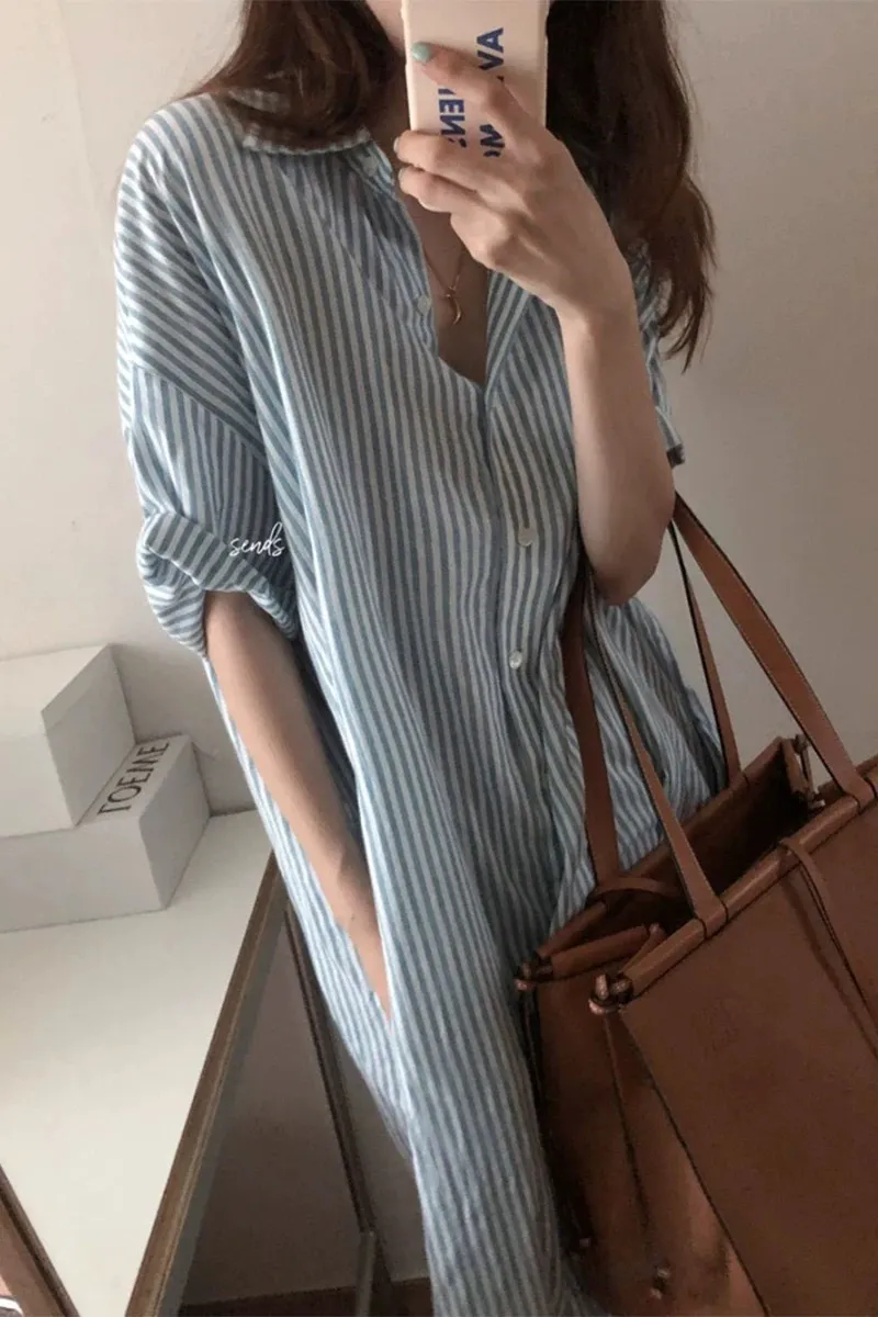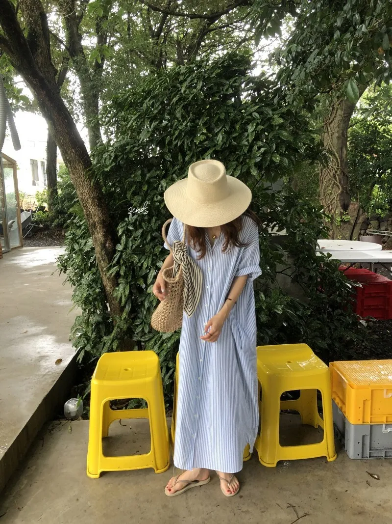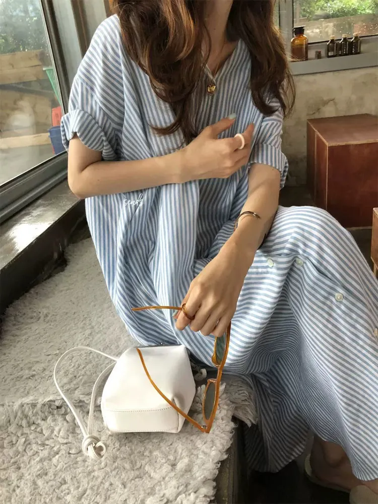 春日微醺暖陽-海邊渡假感條紋襯衫連衣裙