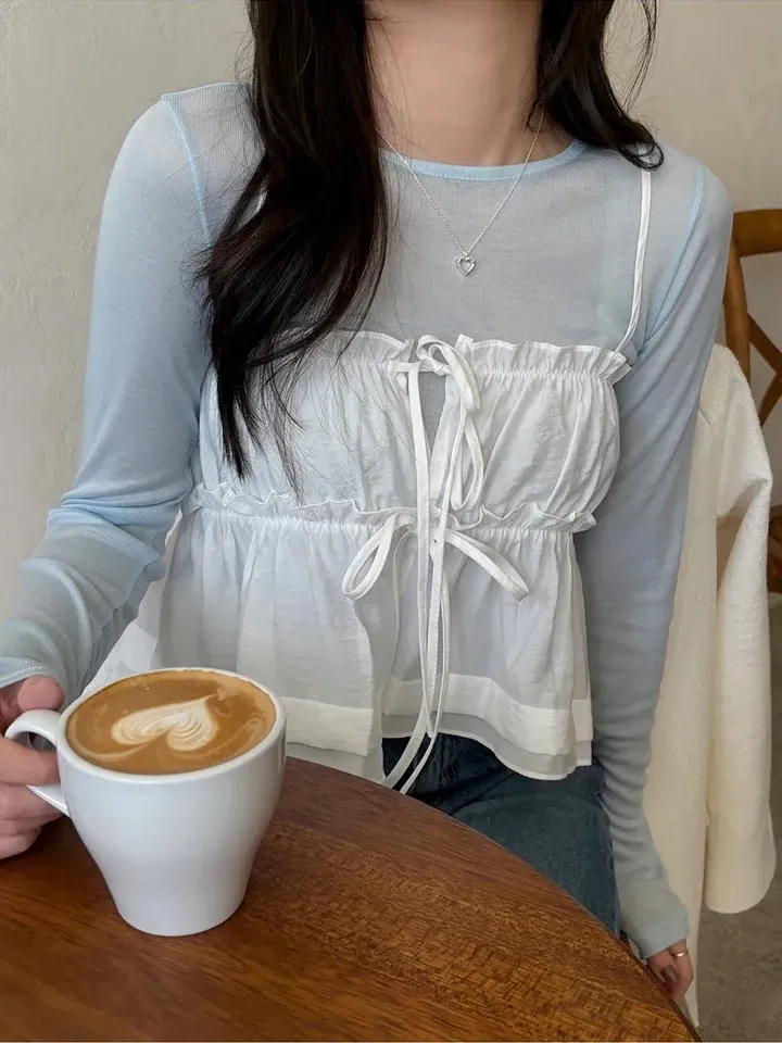 春日微醺暖陽-早春氣質疊穿荷葉背心