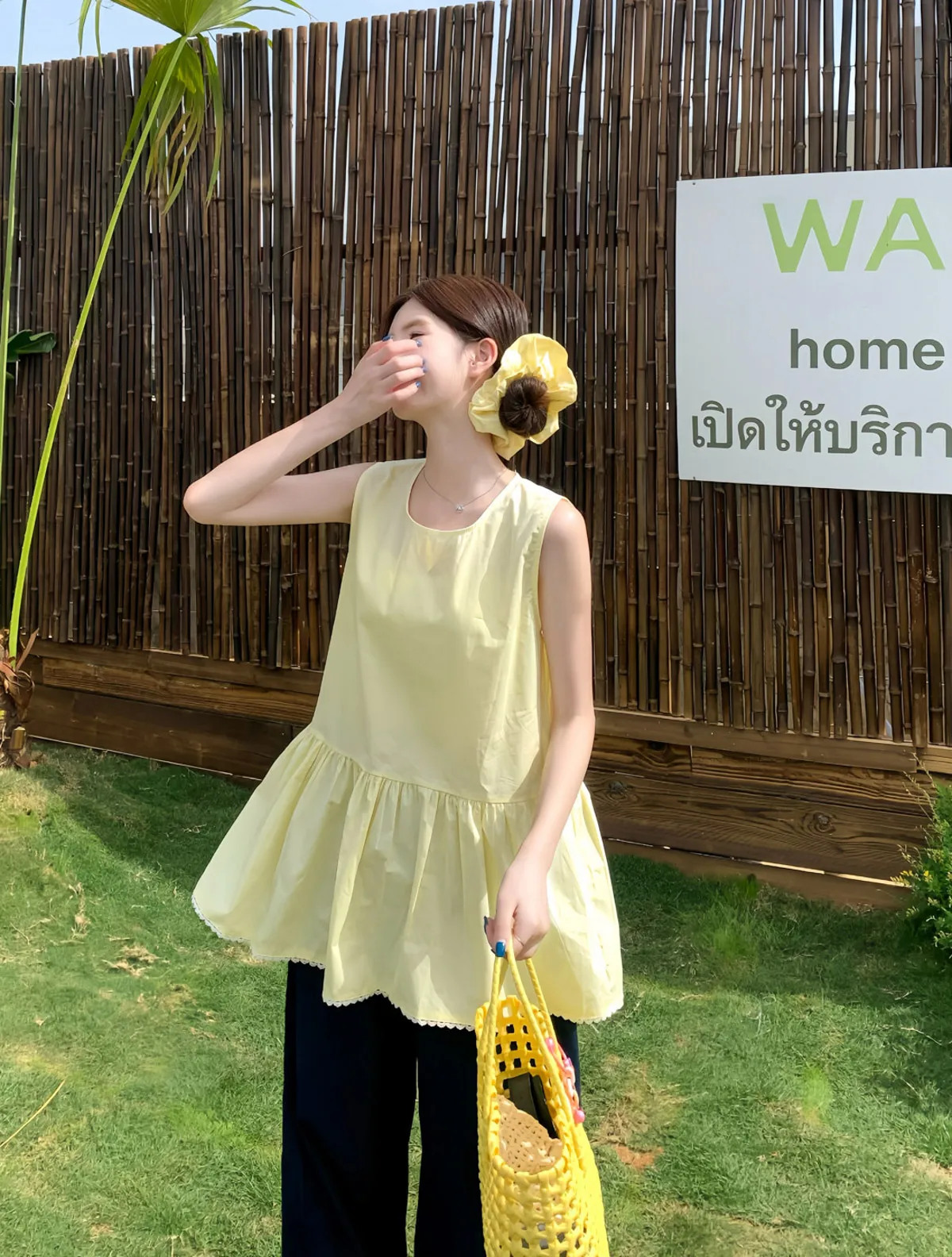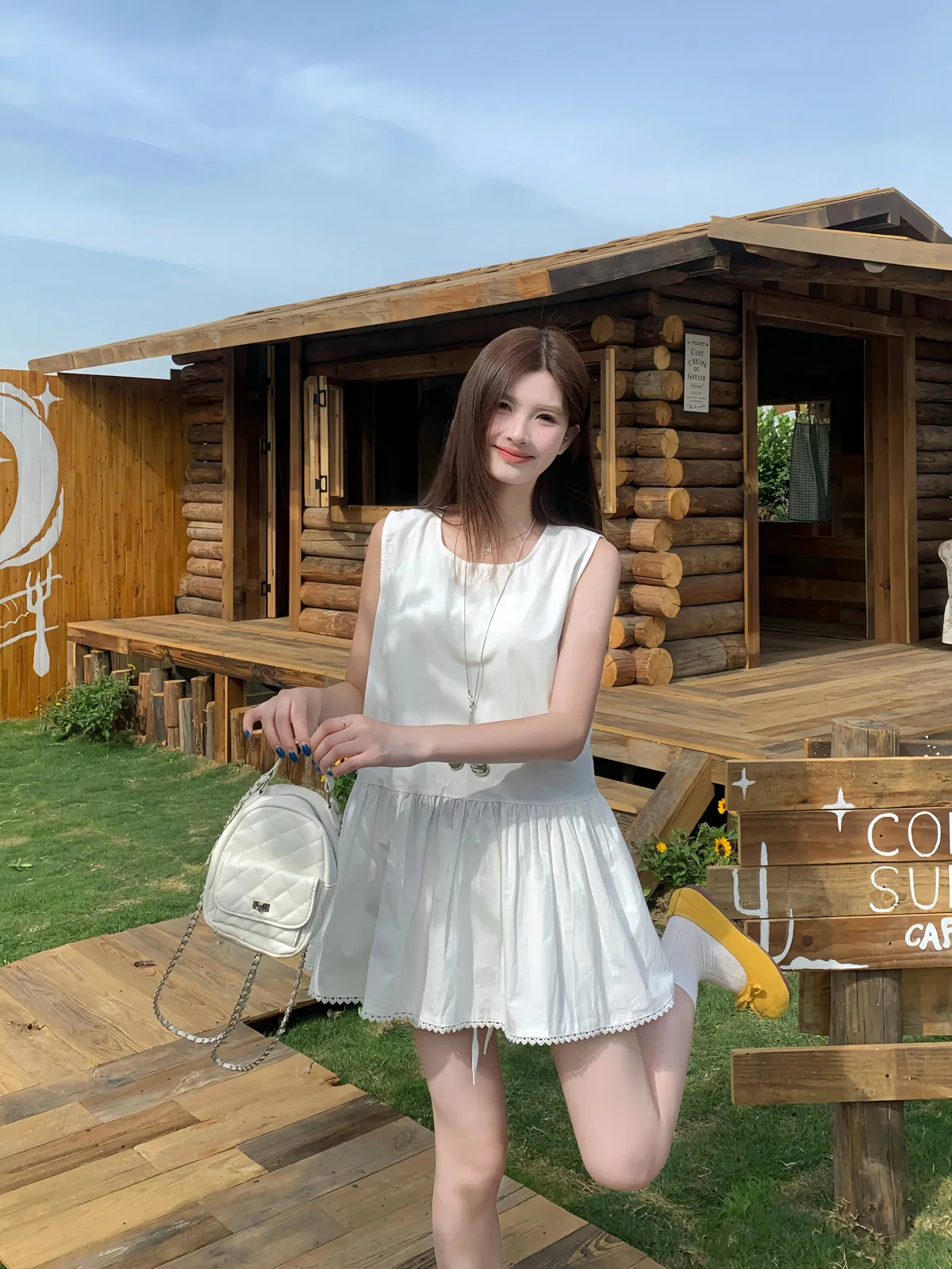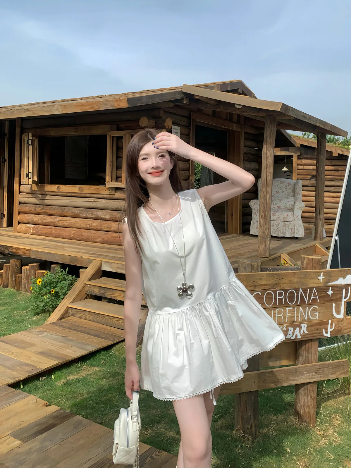 春日微醺暖陽-簡單自在花邊寬帶背心裙