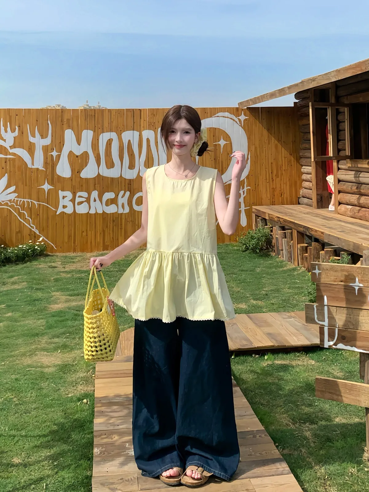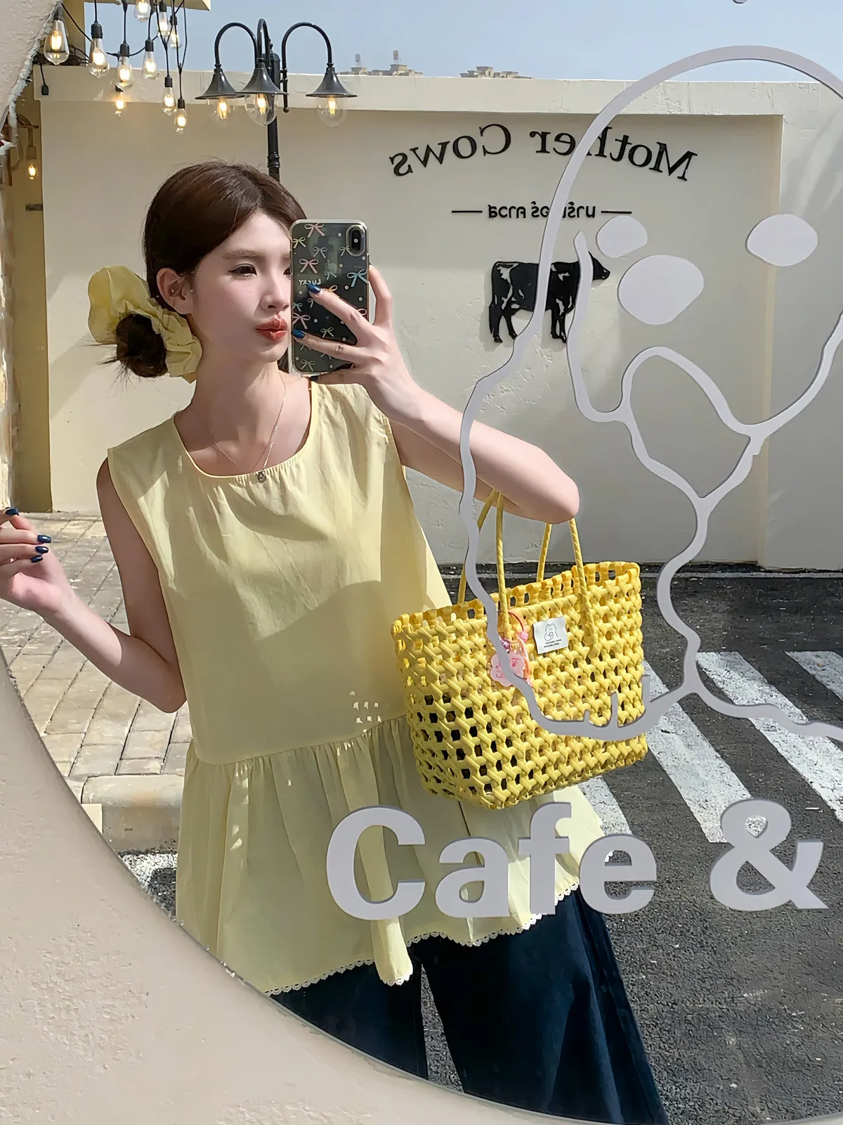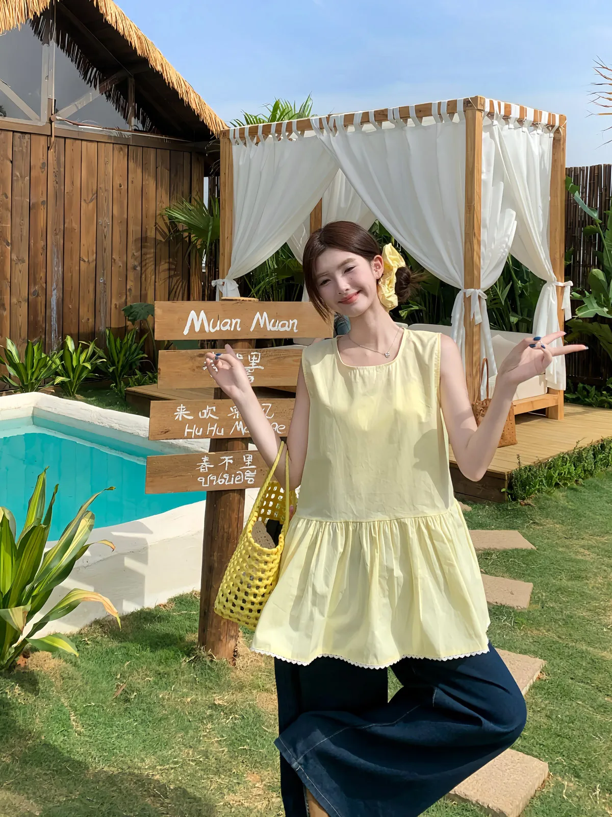春日微醺暖陽-簡單自在花邊寬帶背心裙