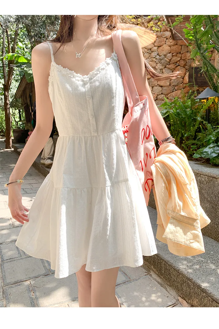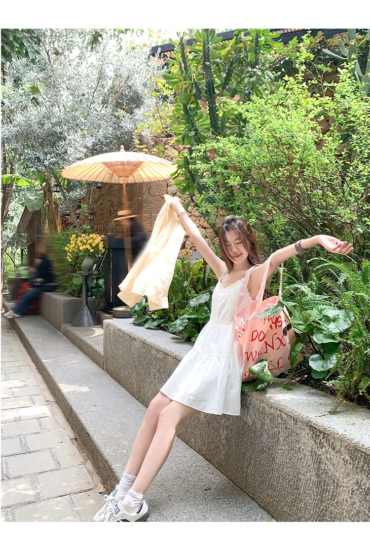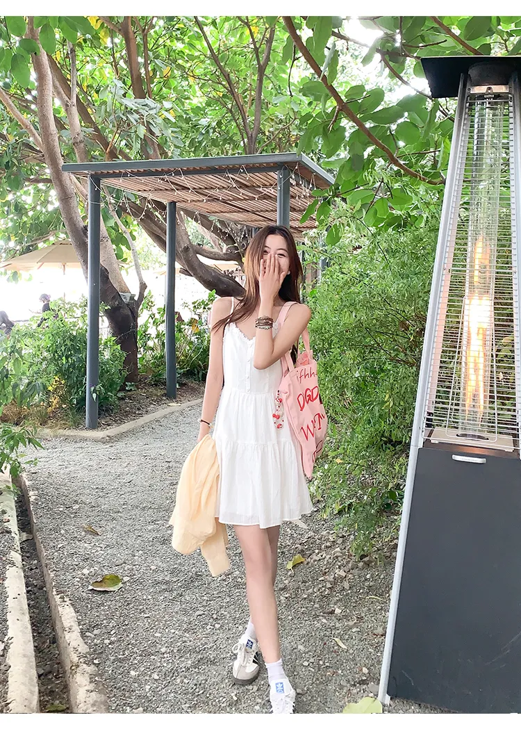 春日微醺暖陽-可愛宜人細肩蕾絲短裙