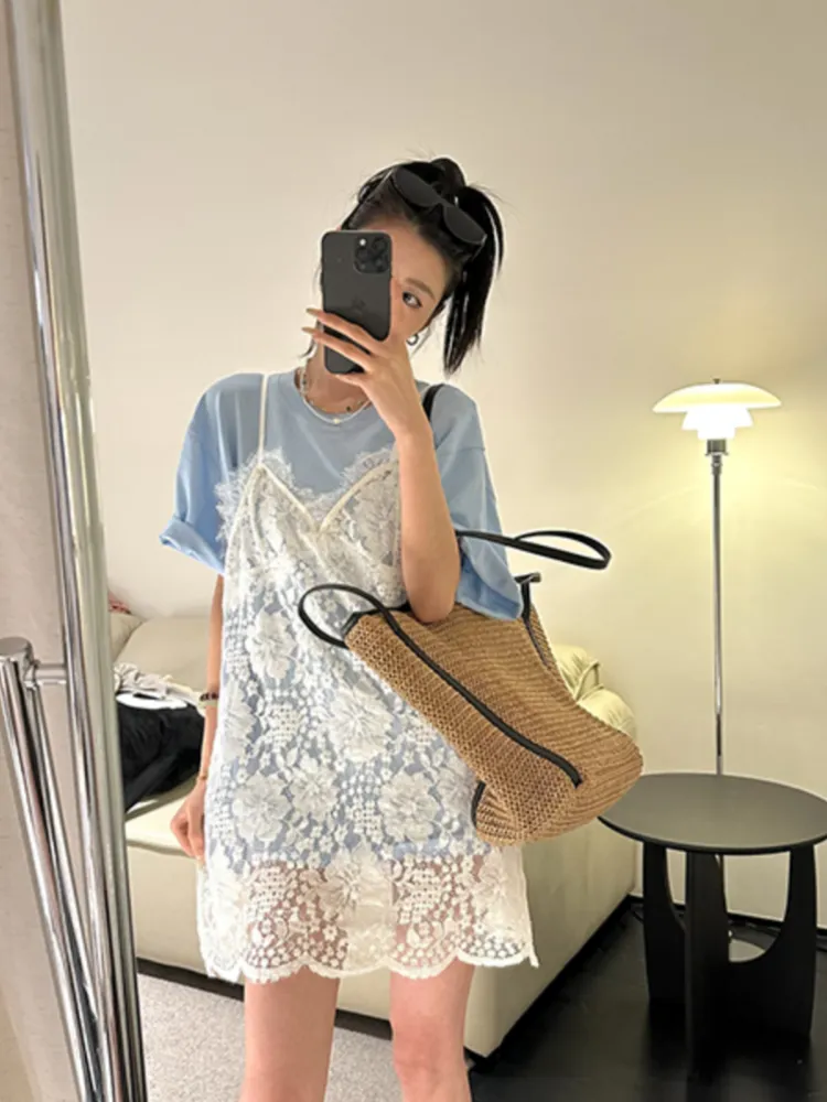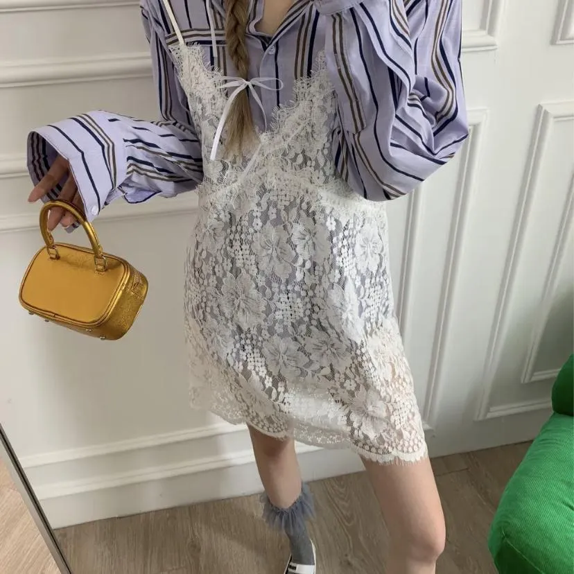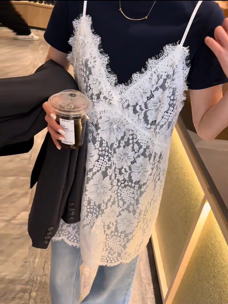 春末柔霧夏日光-簍空蕾絲吊帶背心