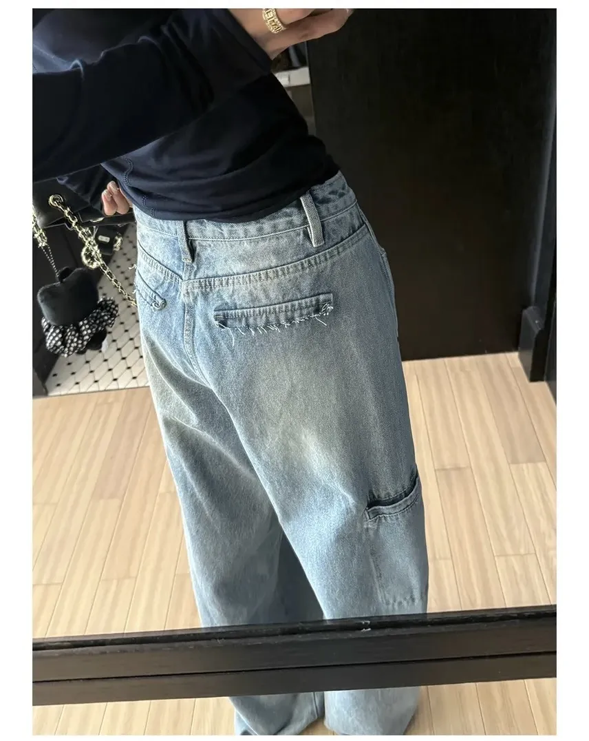 春末柔霧夏日光-個性水洗工裝褲