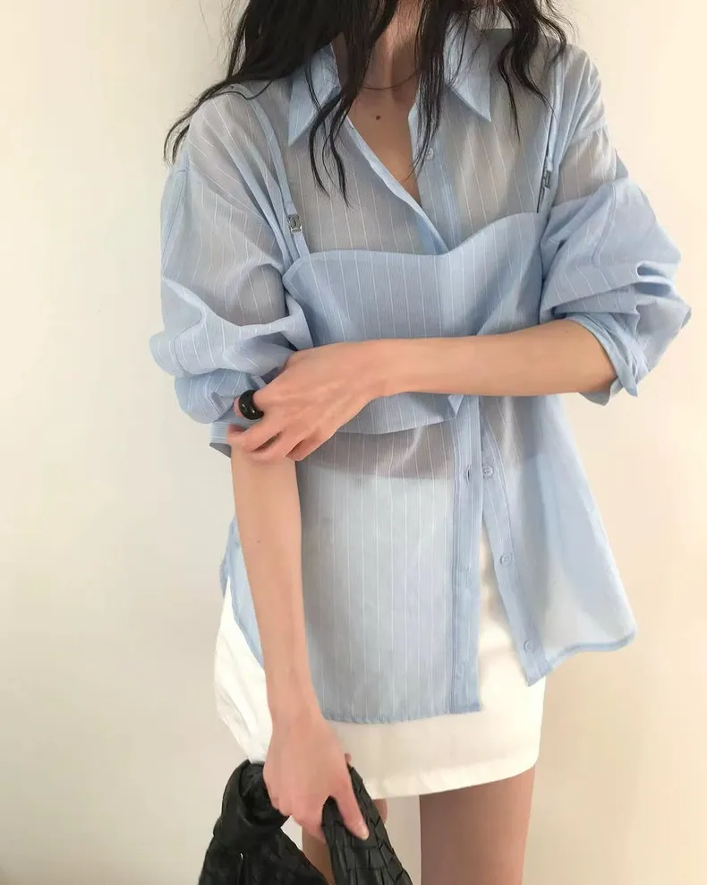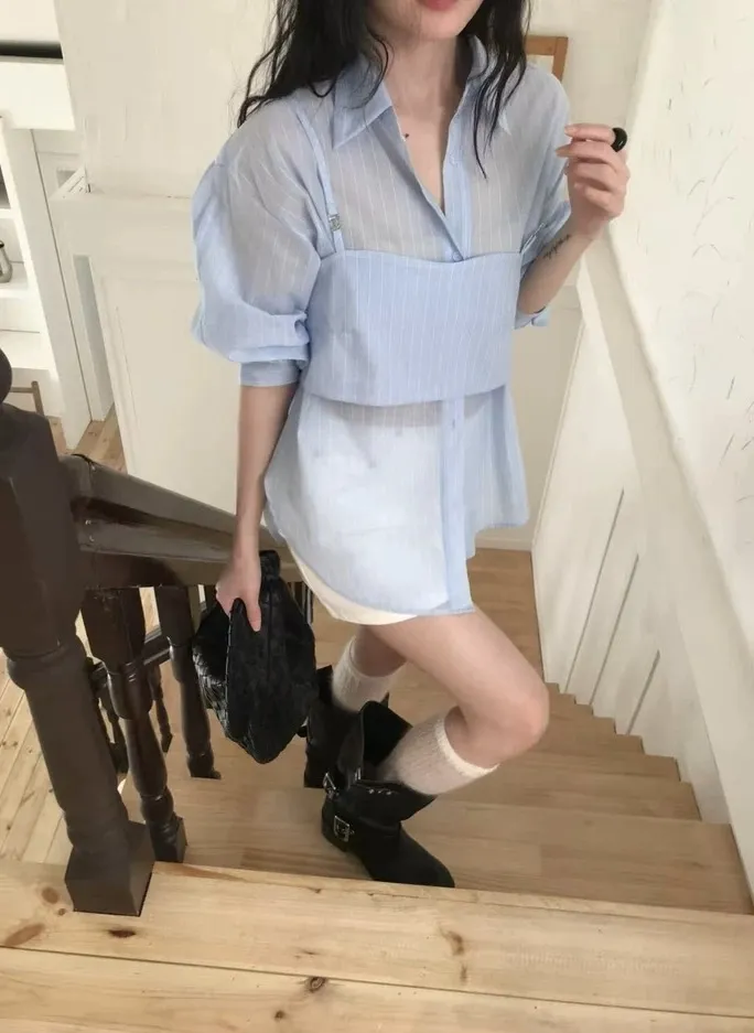 春末柔霧夏日光-質感疊穿條紋衫