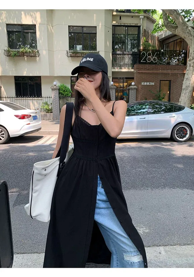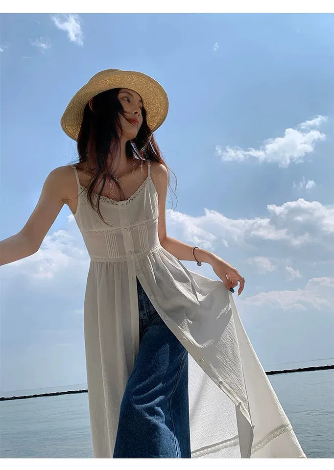 春末柔霧夏日光-蕾絲排扣兩穿長洋