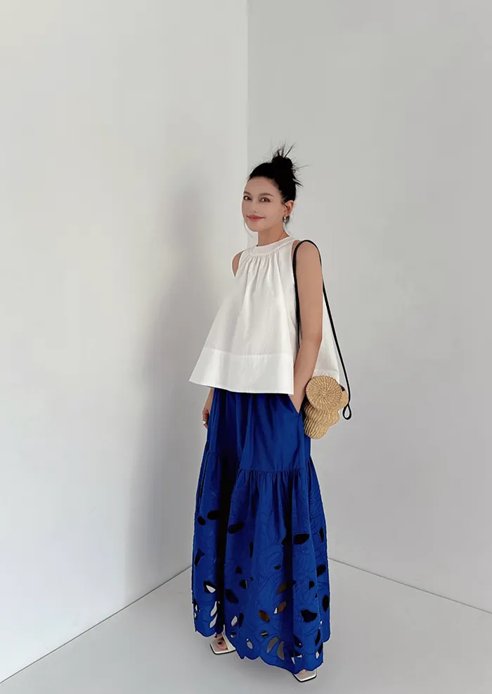 春末柔霧夏日光-克萊因藍簍空繡花裙