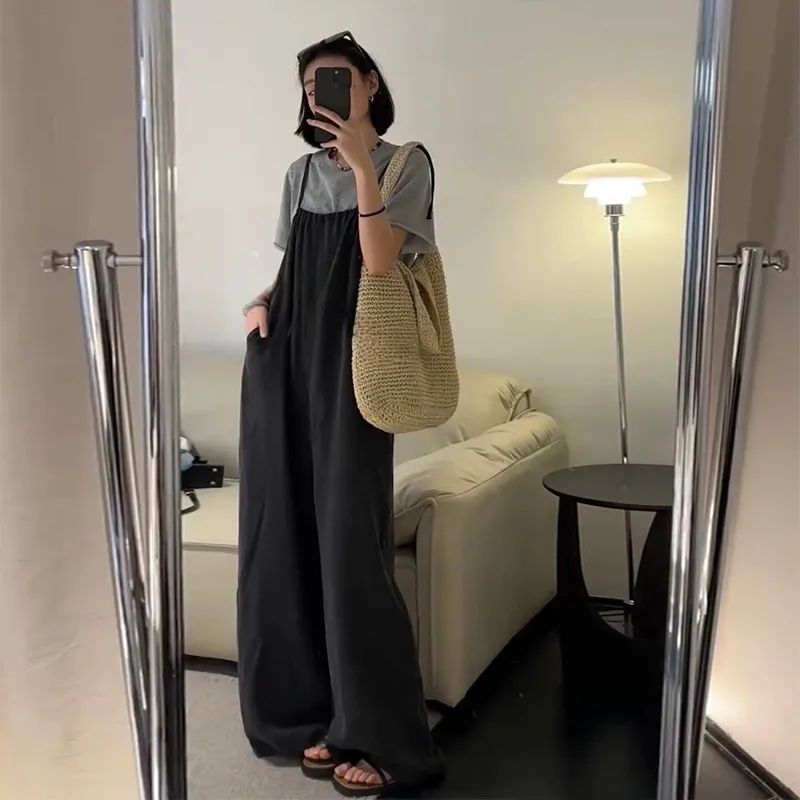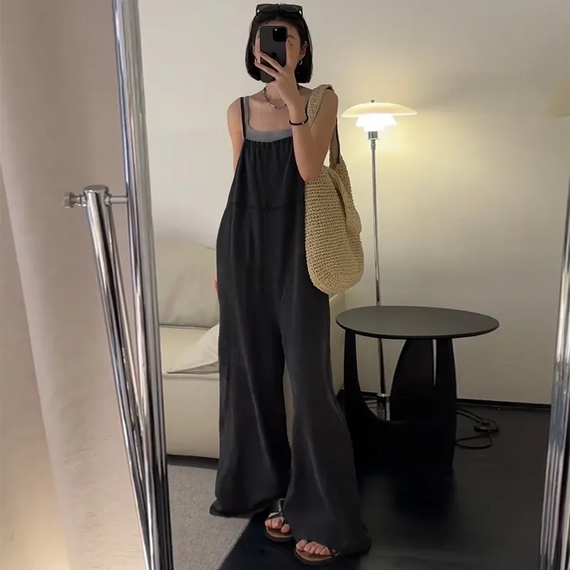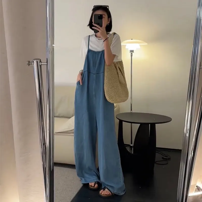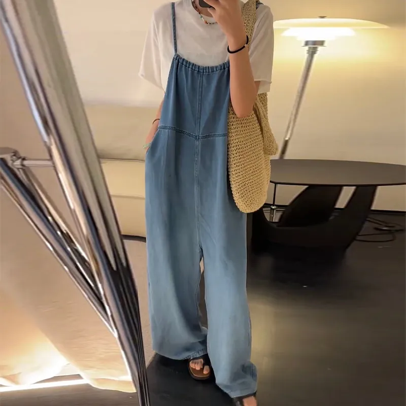 春末柔霧夏日光-天絲牛仔色吊帶褲