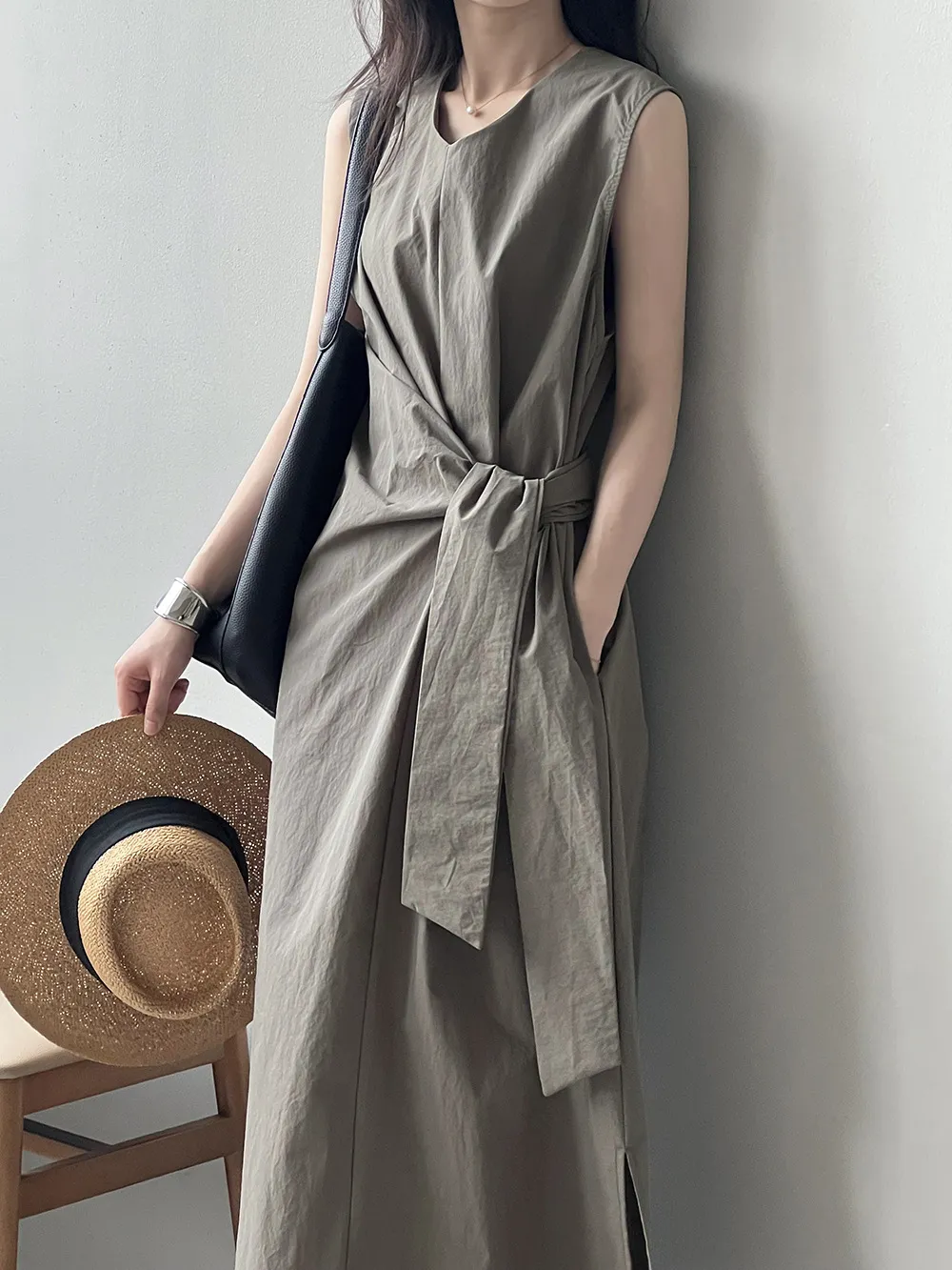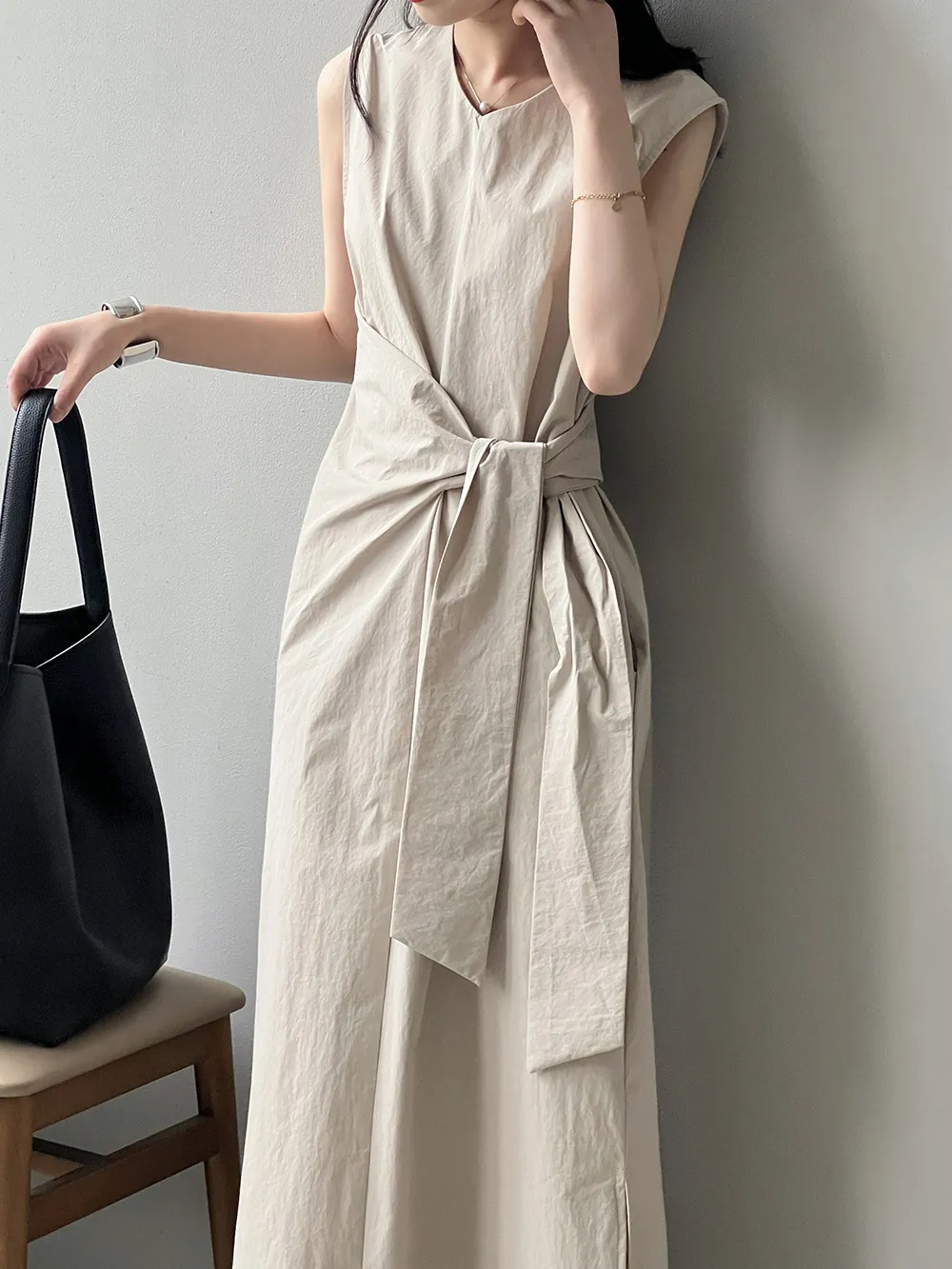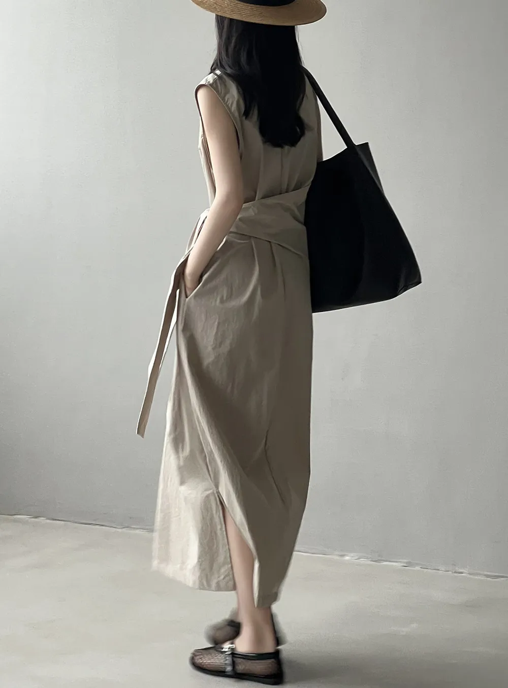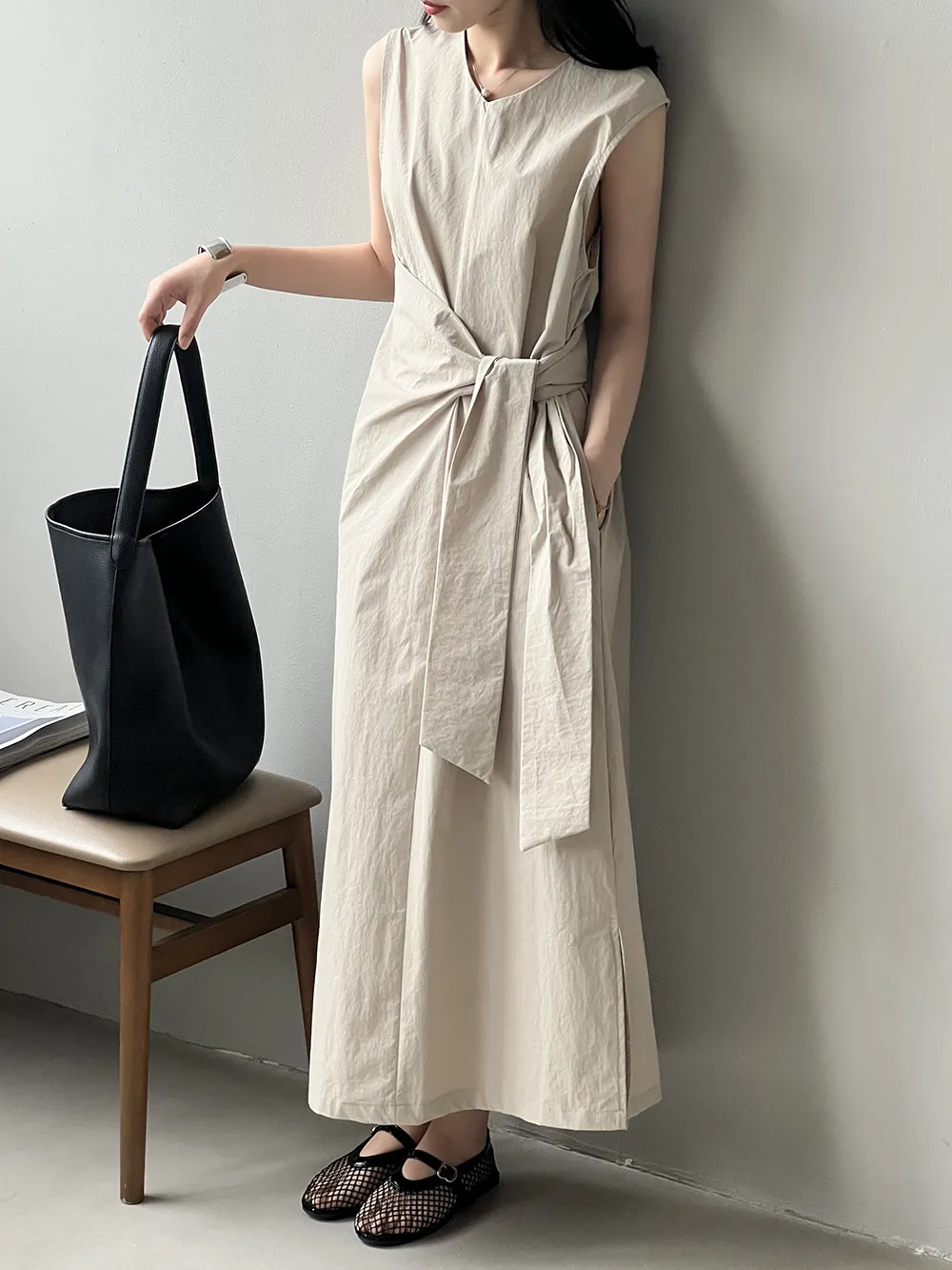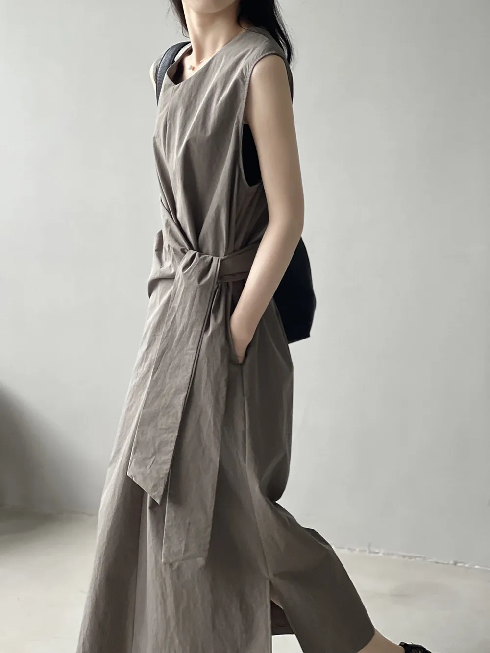 春末柔霧夏日光-收腰寬綁帶背心洋