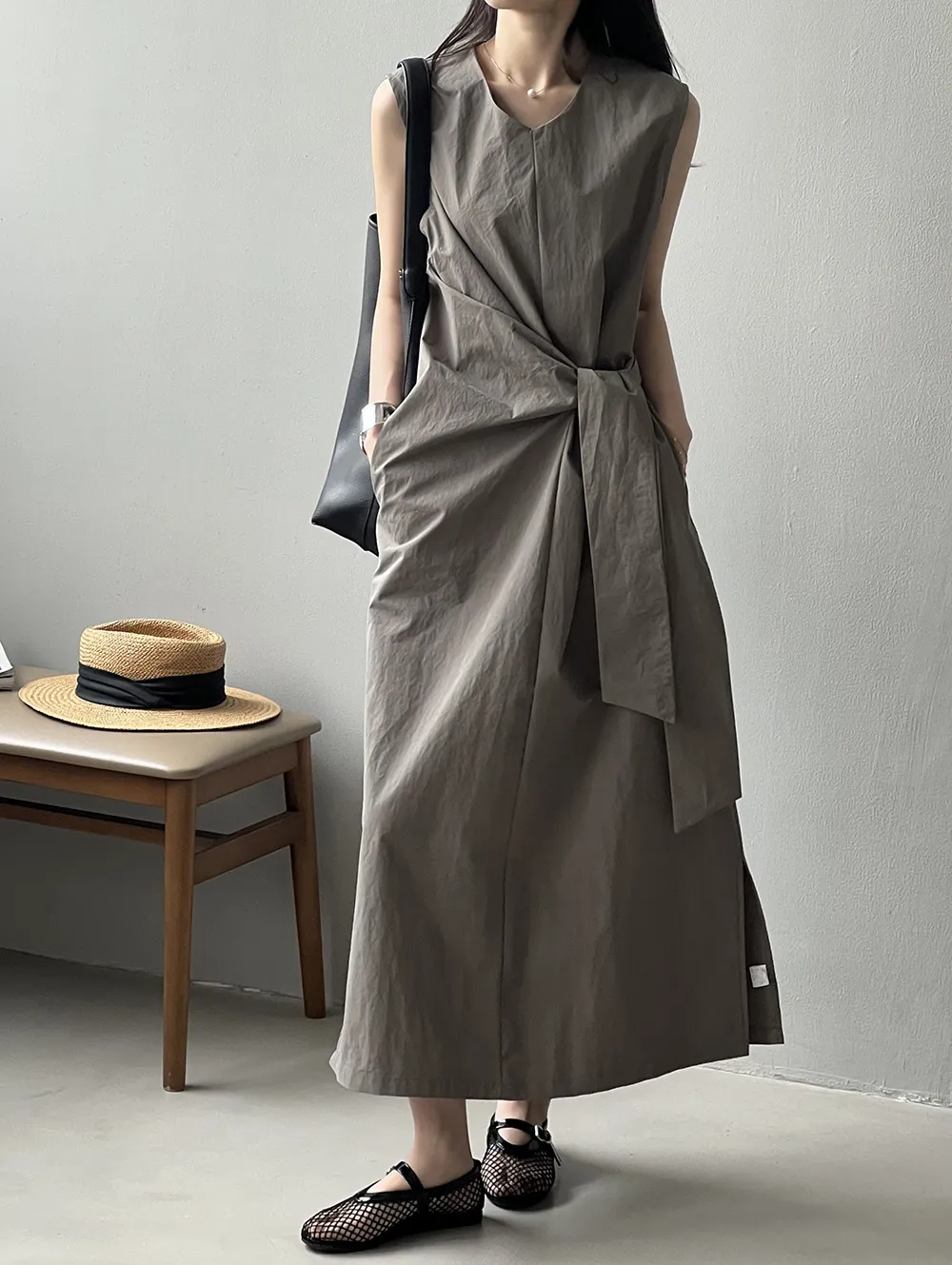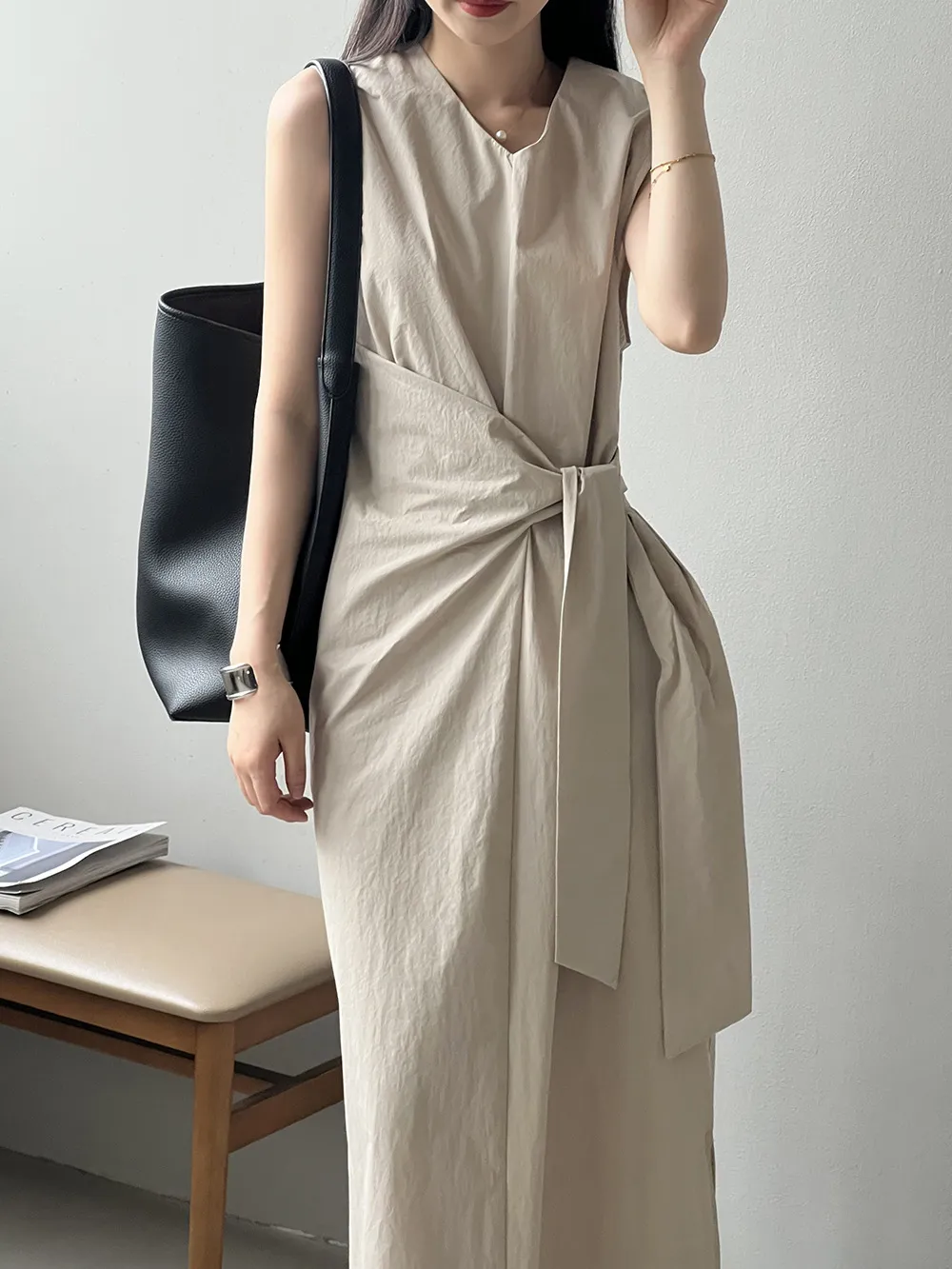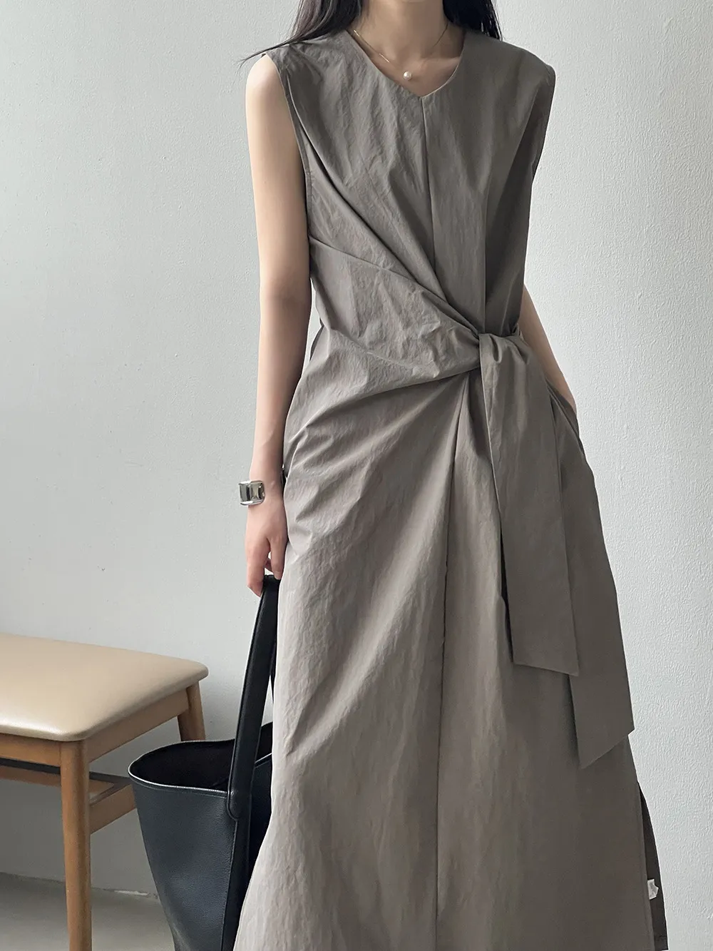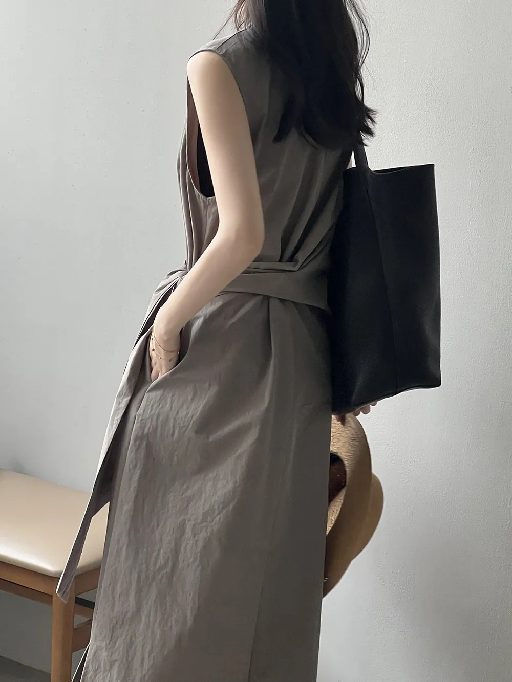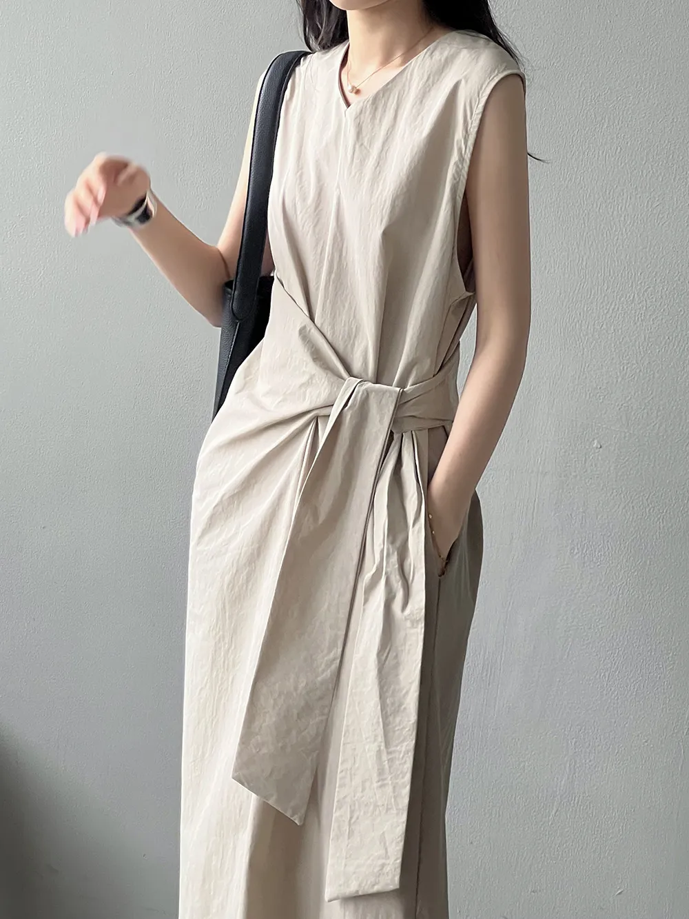 春末柔霧夏日光-收腰寬綁帶背心洋