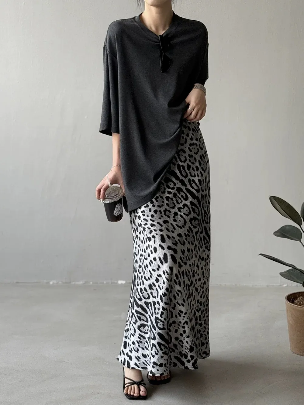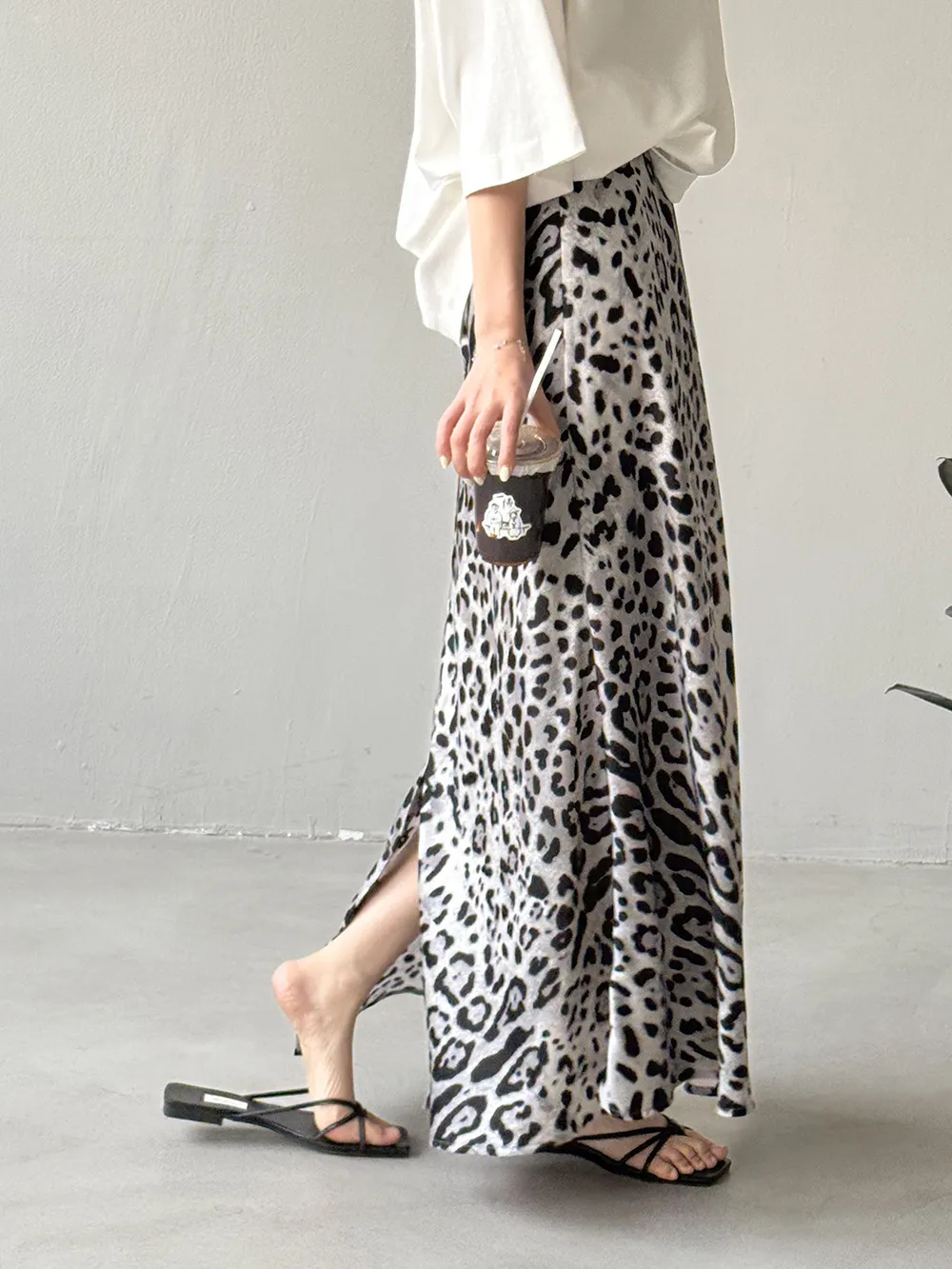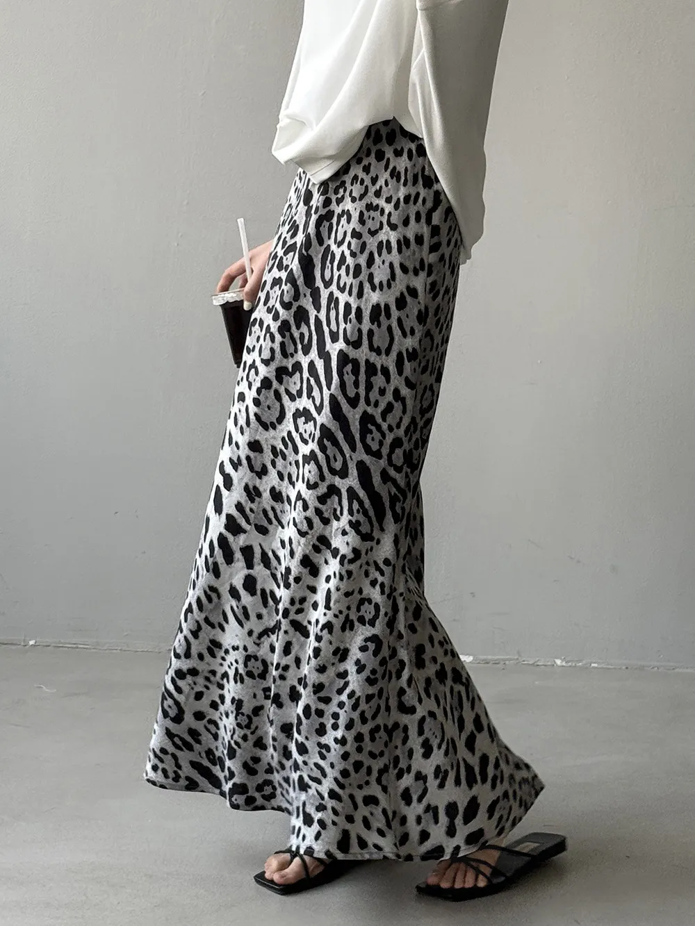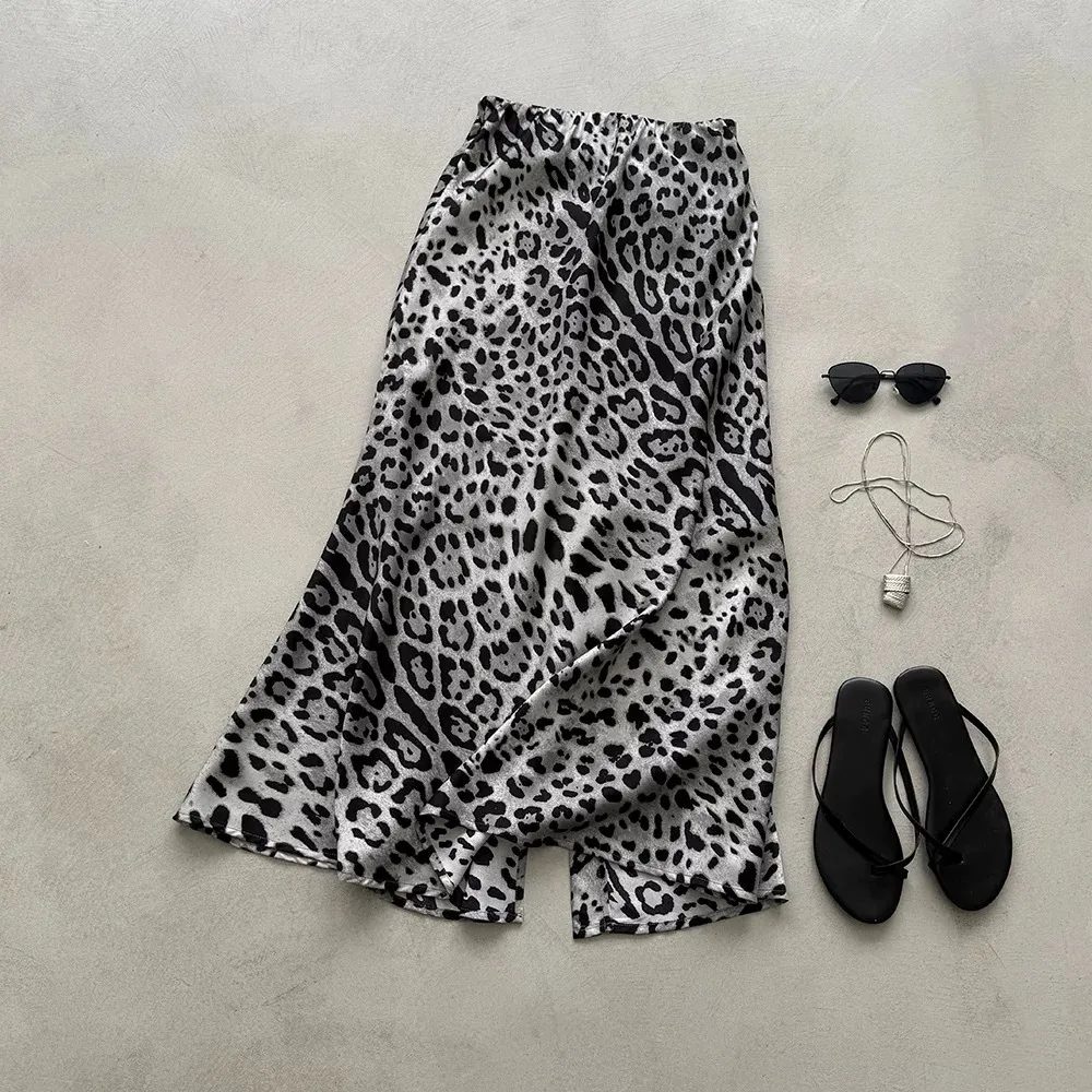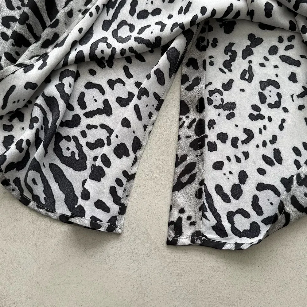 春末柔霧夏日光-緞面豹紋柔軟長裙
