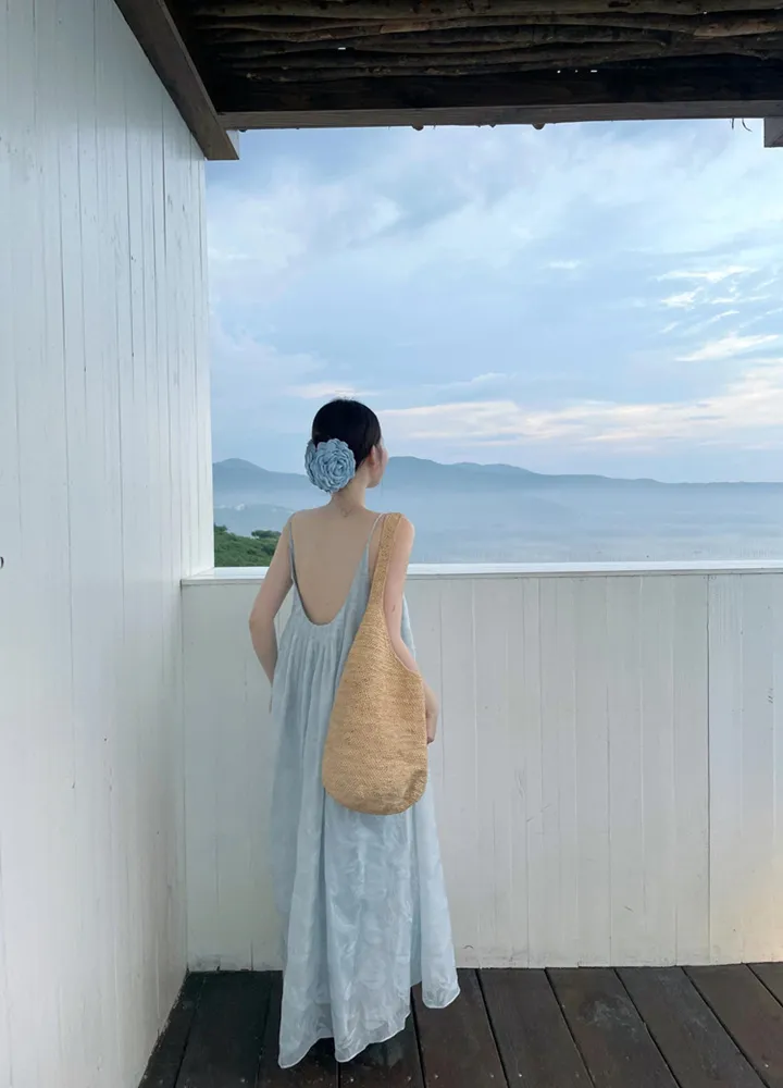 夏日沙灘渡假天絲露背洋裝