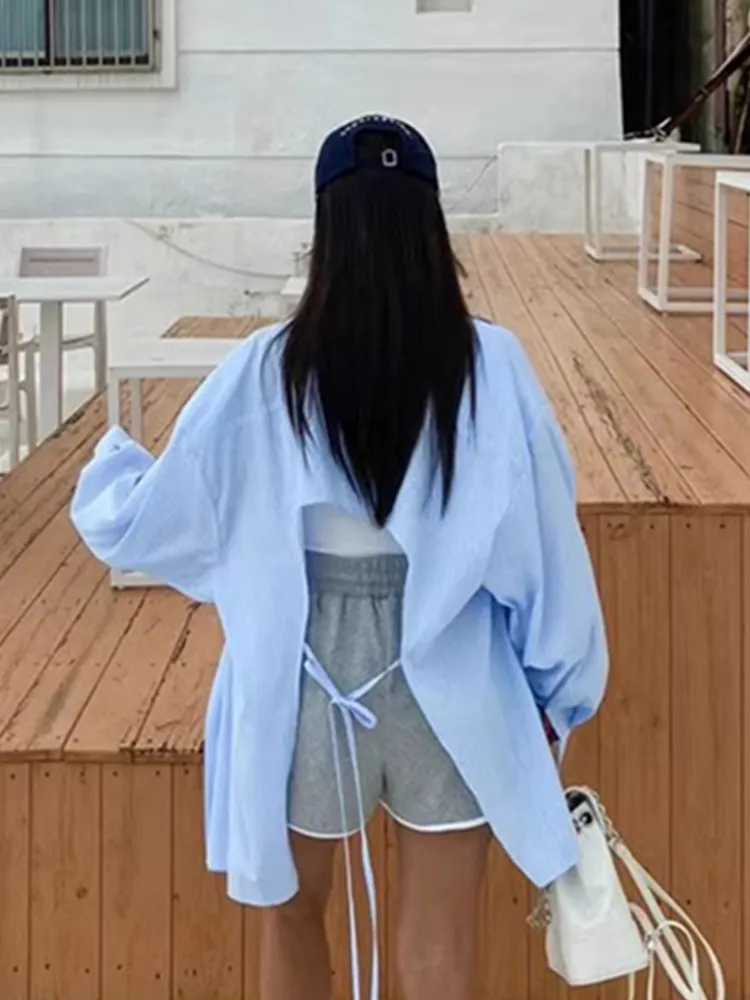 韓系小眾設計感繫帶防曬衫