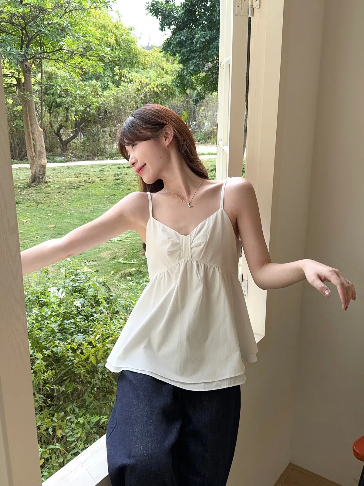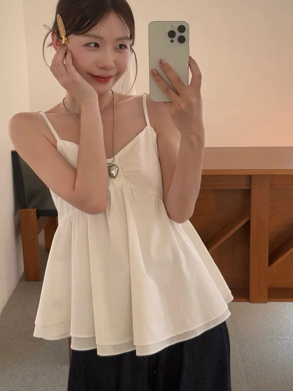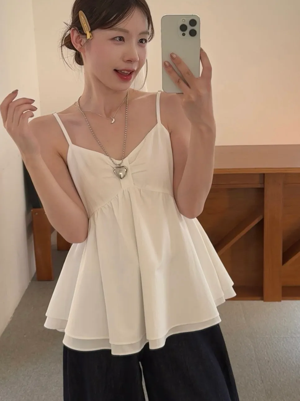 微甜細肩帶雙層荷葉小背心