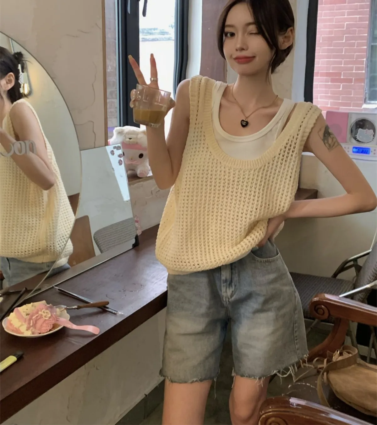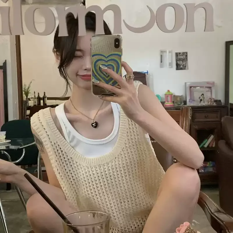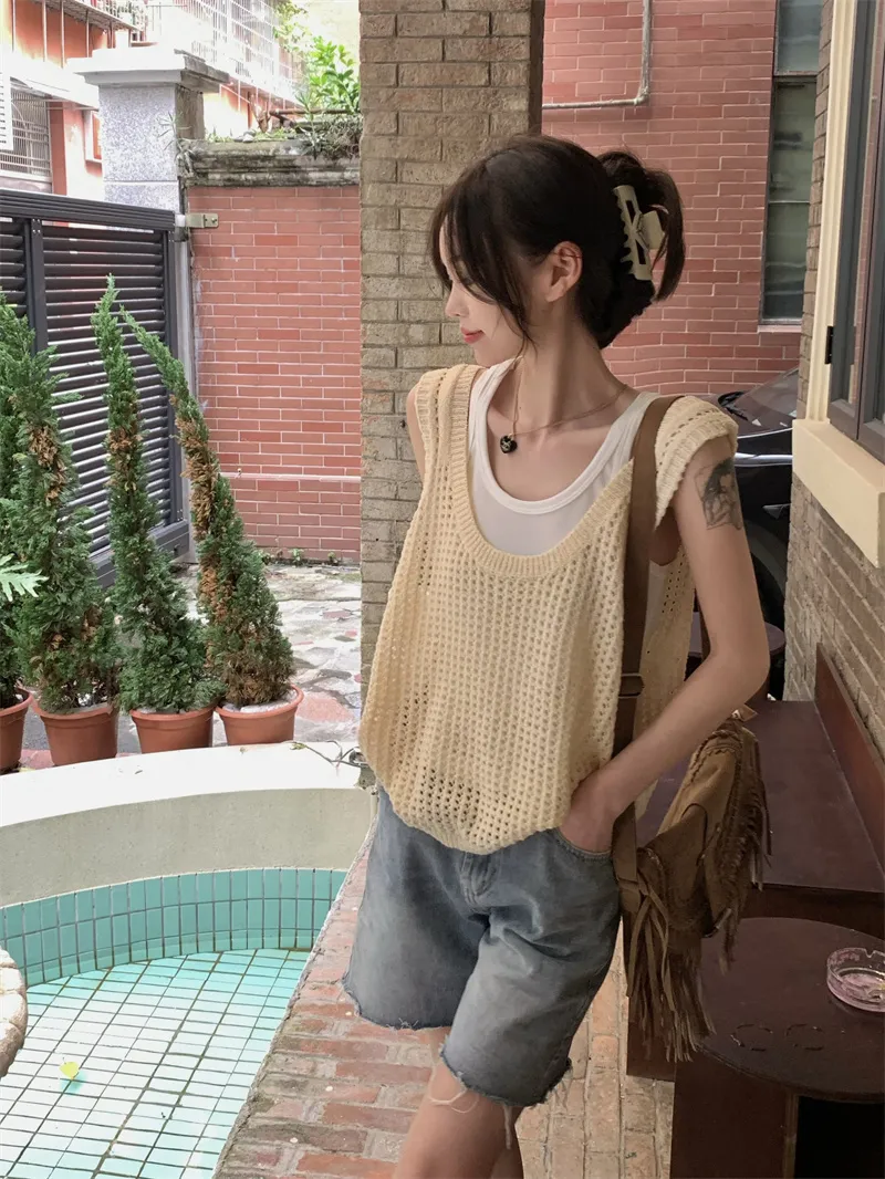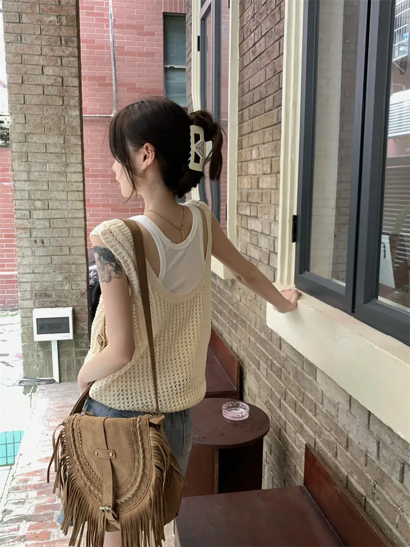 兩件套洞洞吊帶針織背心