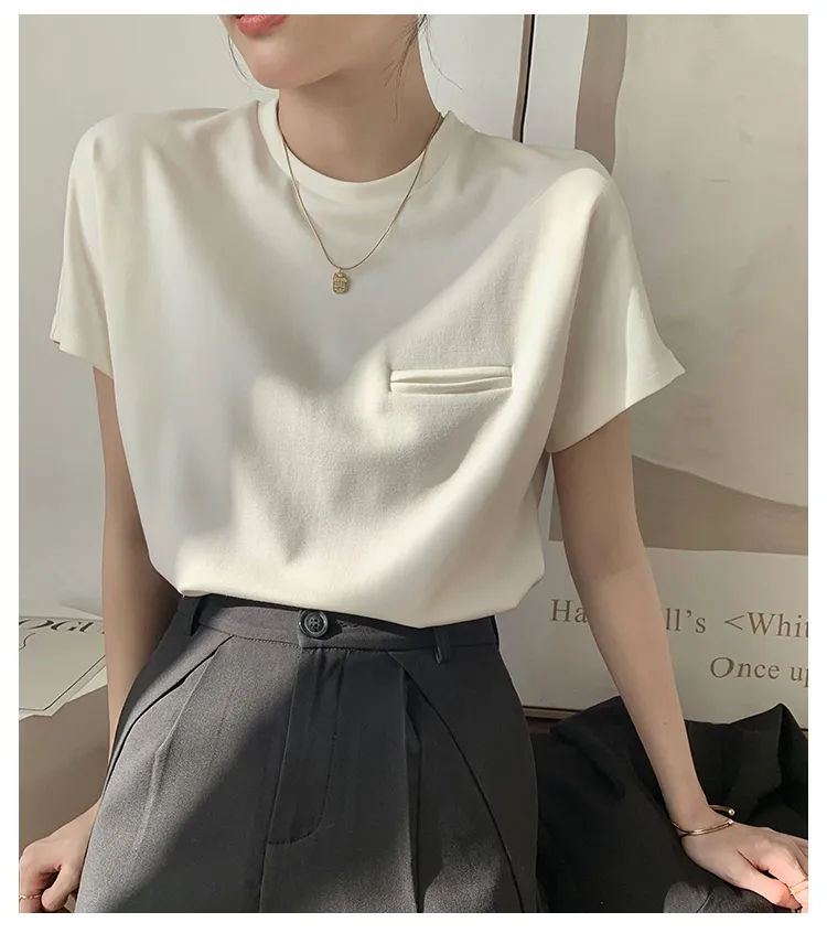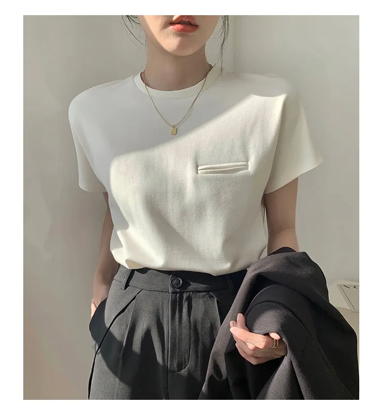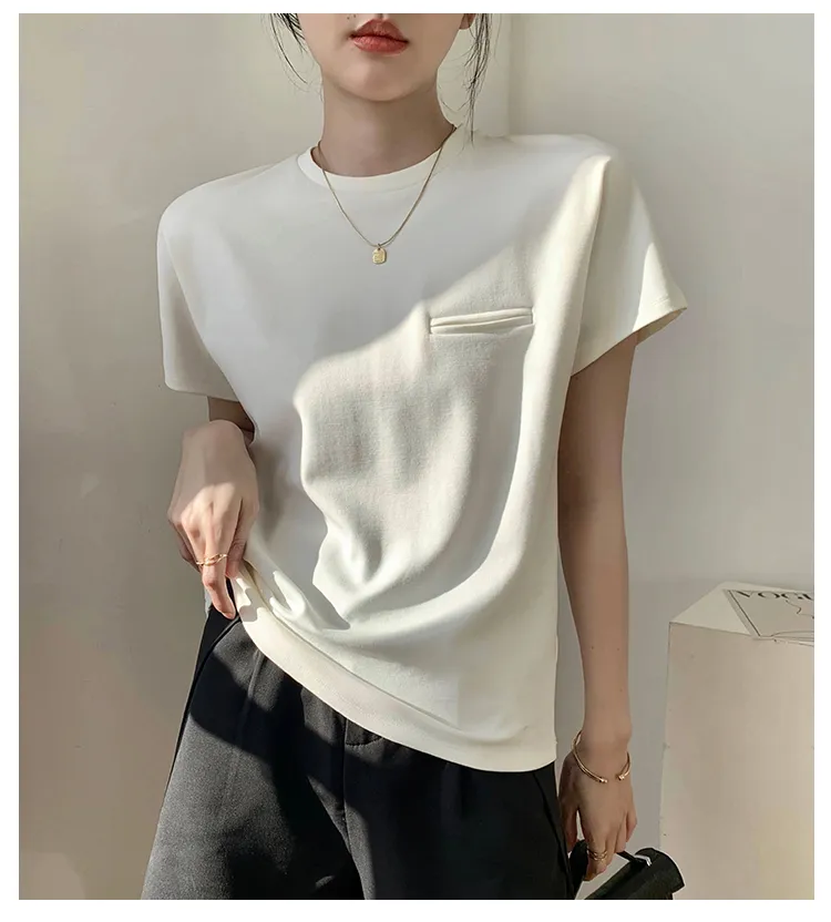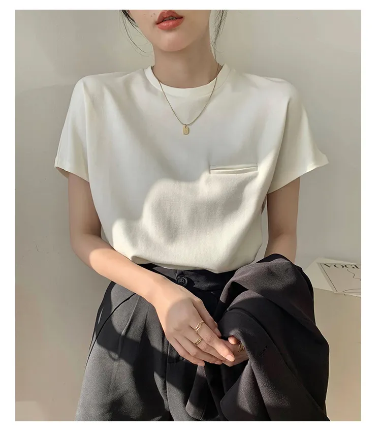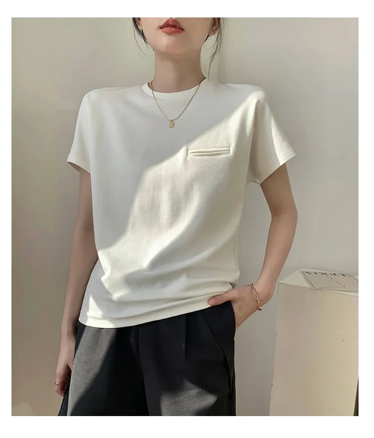 顯瘦到不行正肩小口袋白tee