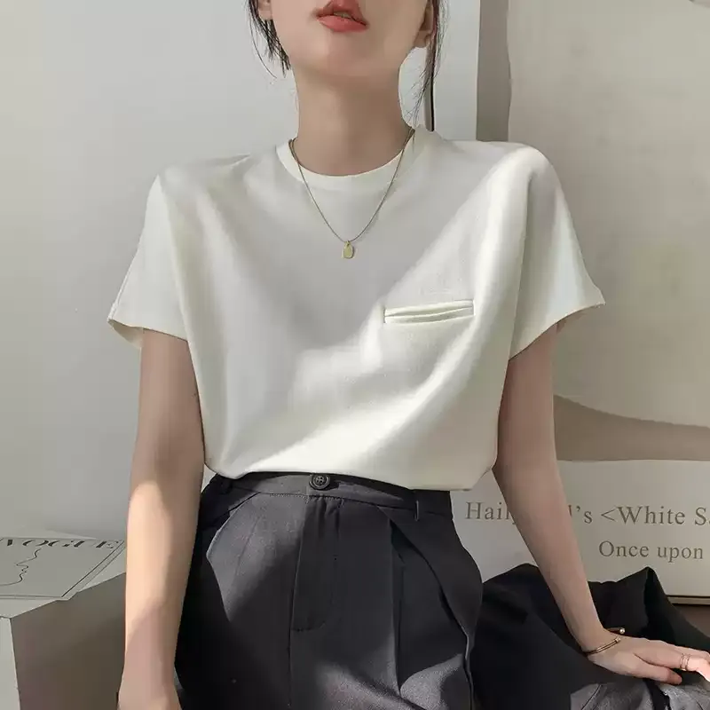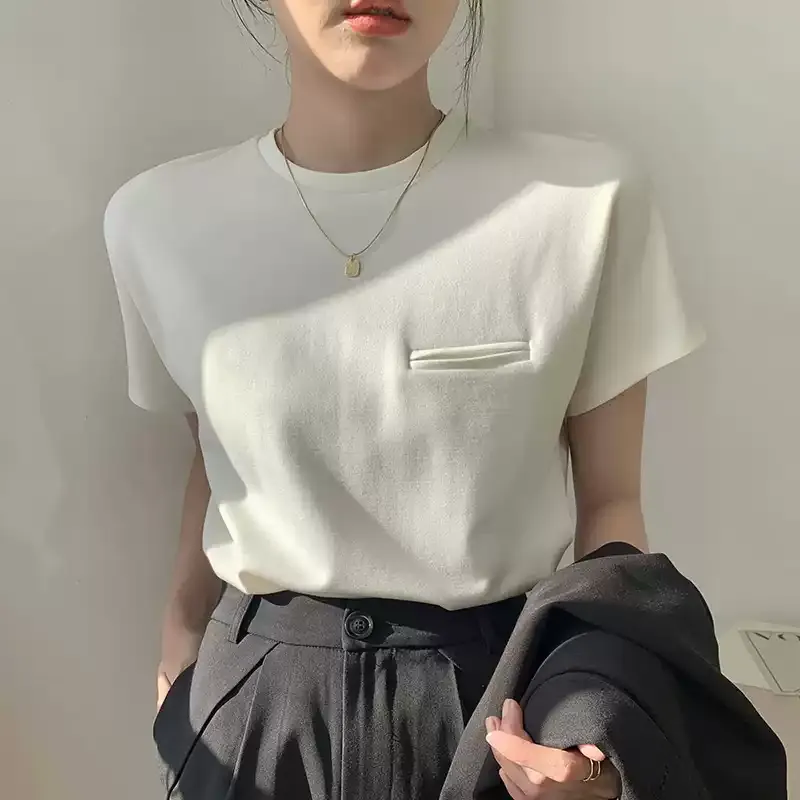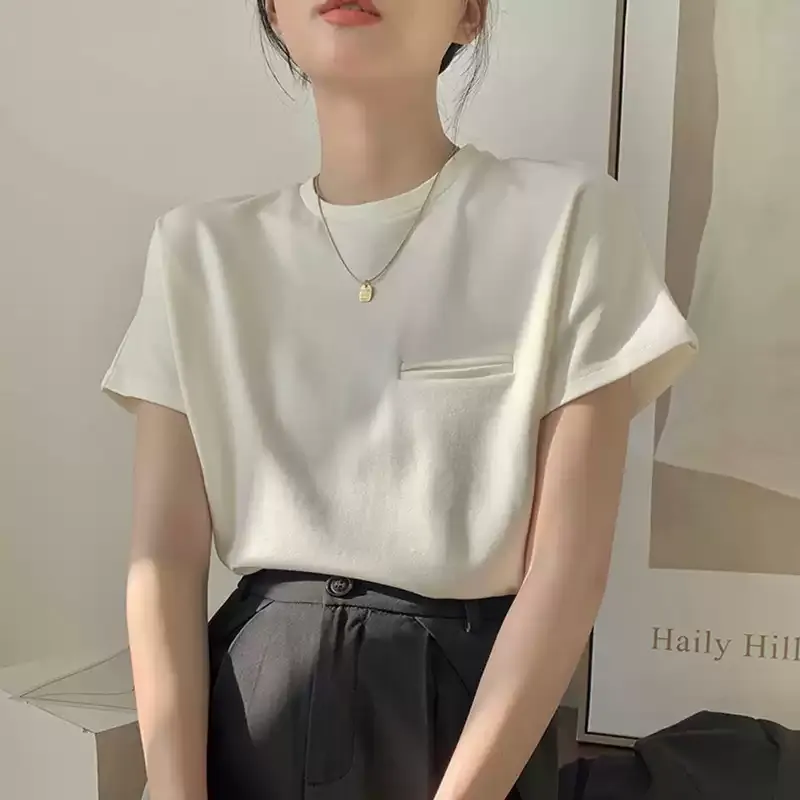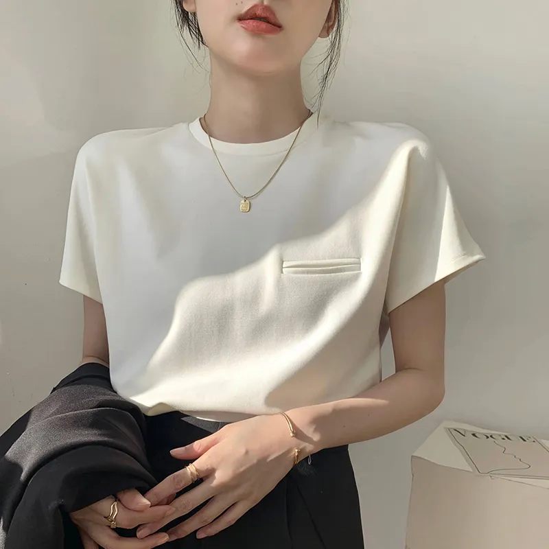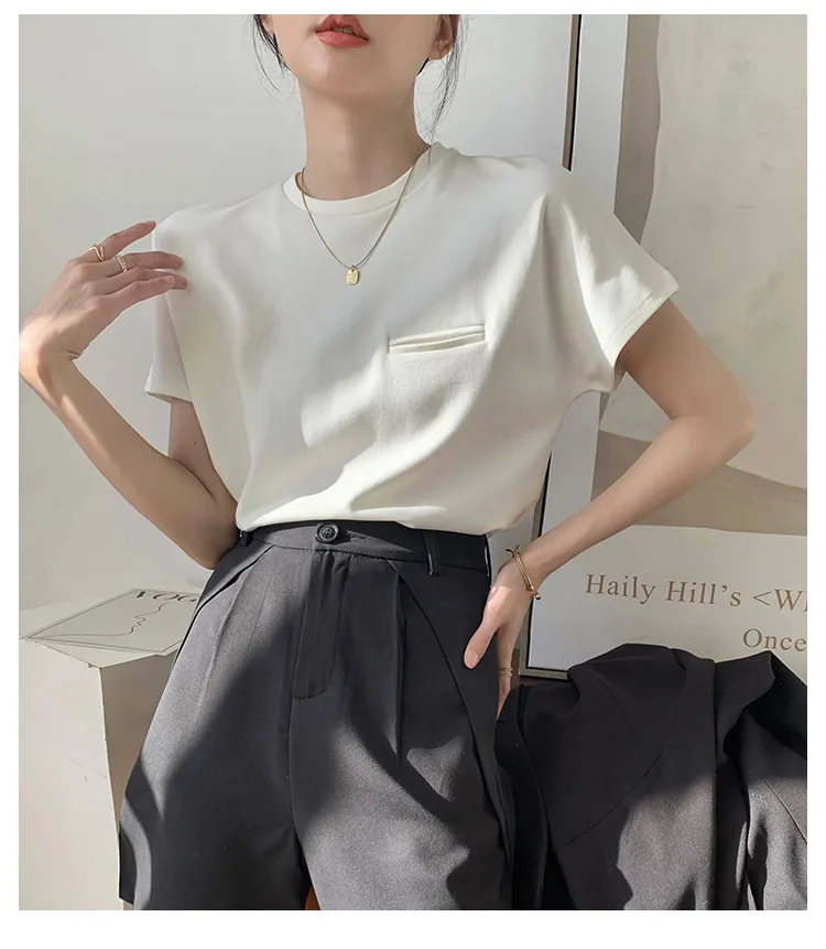 顯瘦到不行正肩小口袋白tee