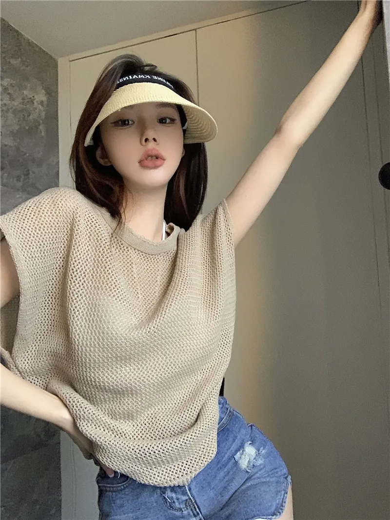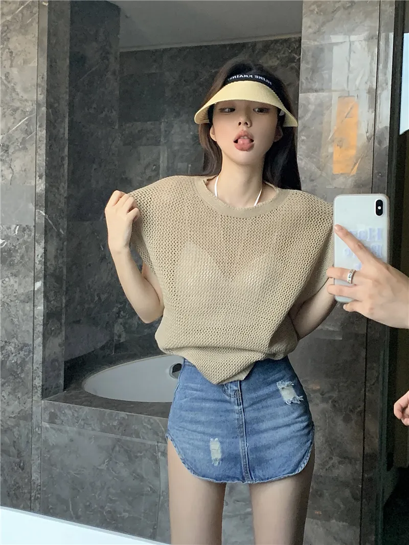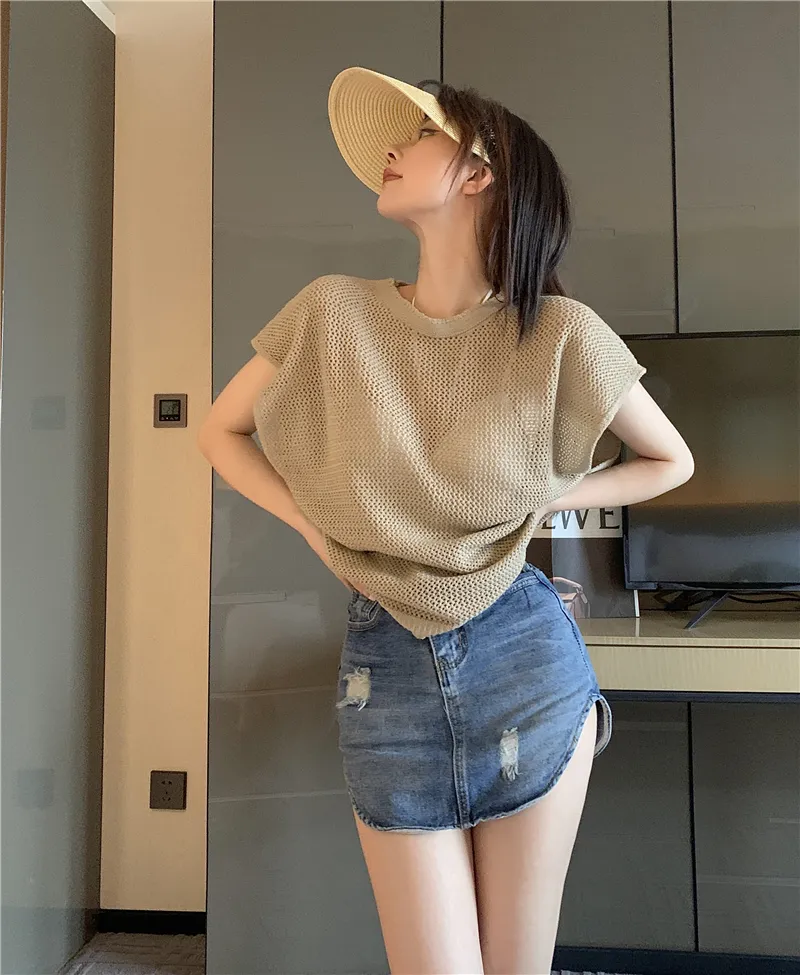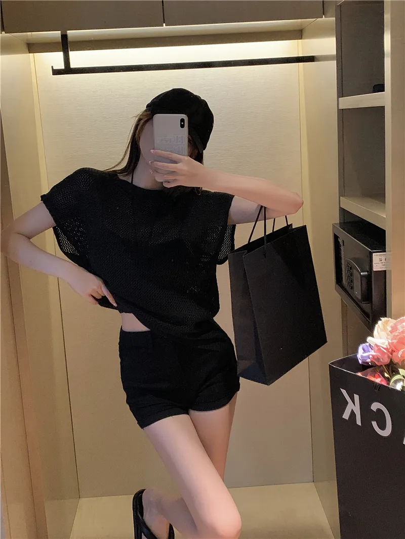 若隱若現洞洞微性感針織衫套裝