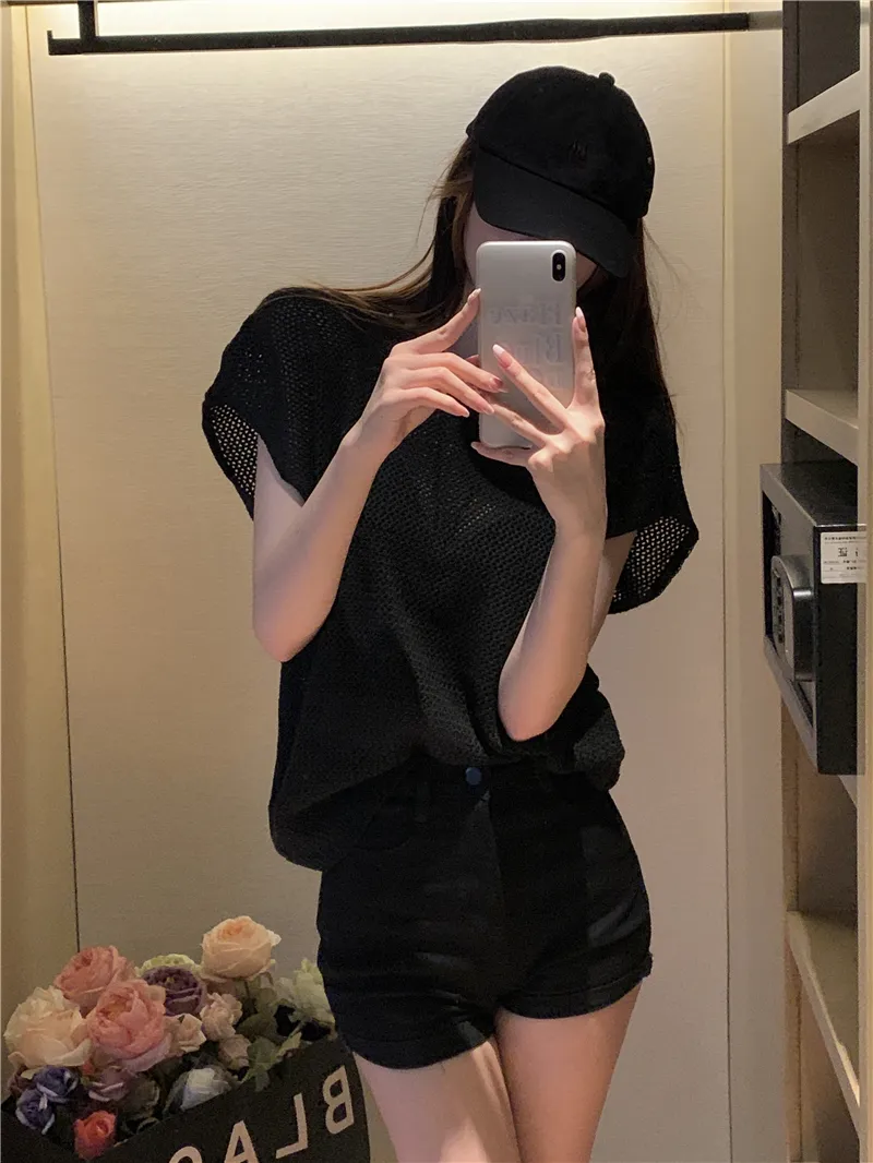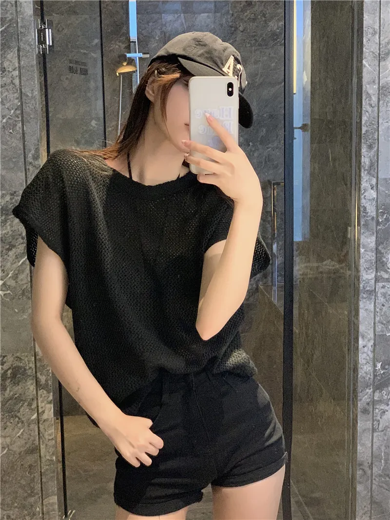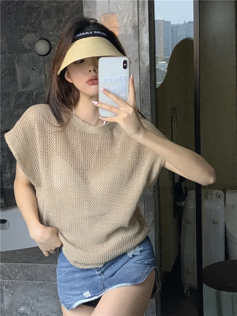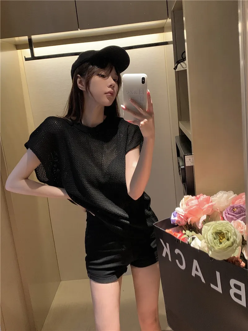 若隱若現洞洞微性感針織衫套裝