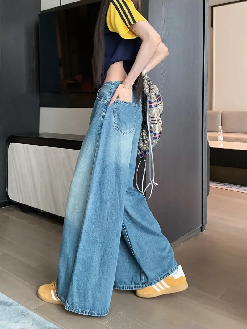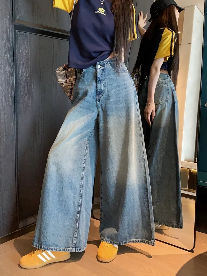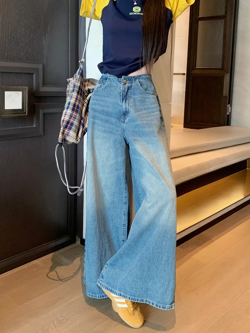 復古水洗完美刷色高腰寬牛仔褲
