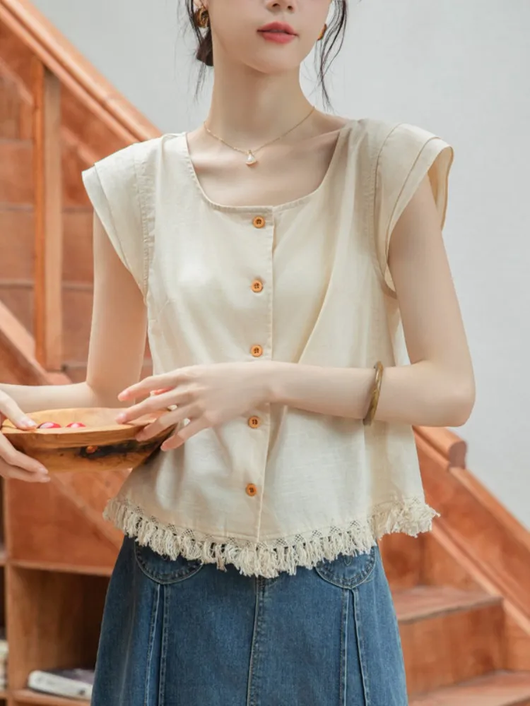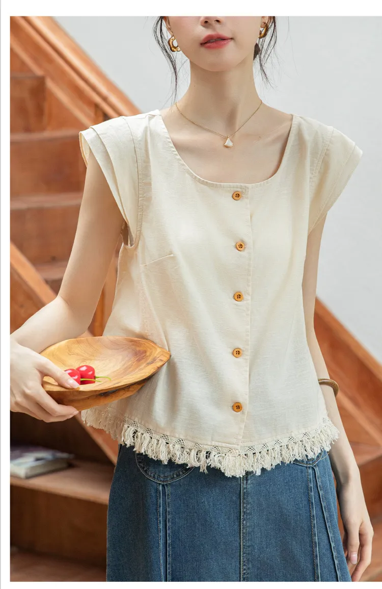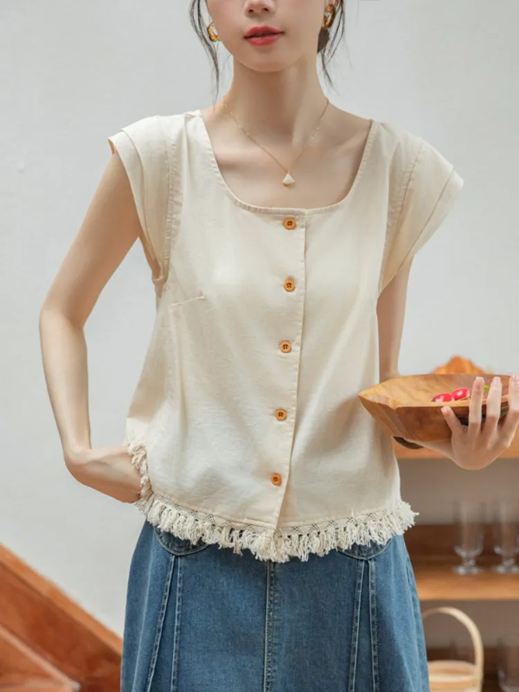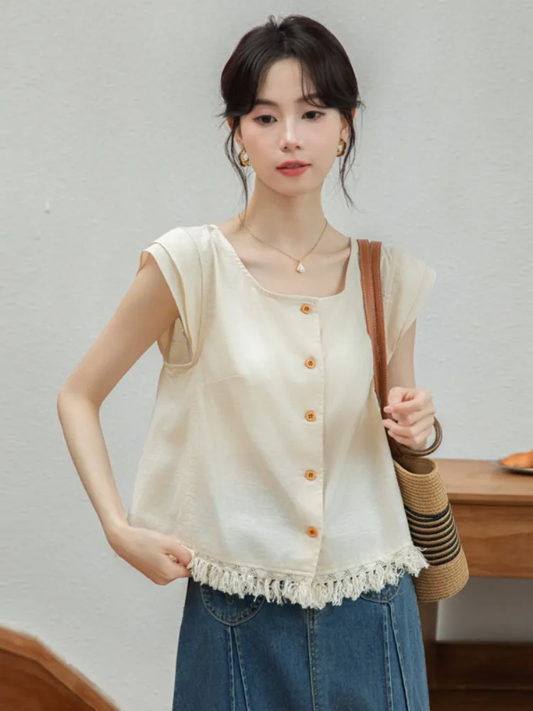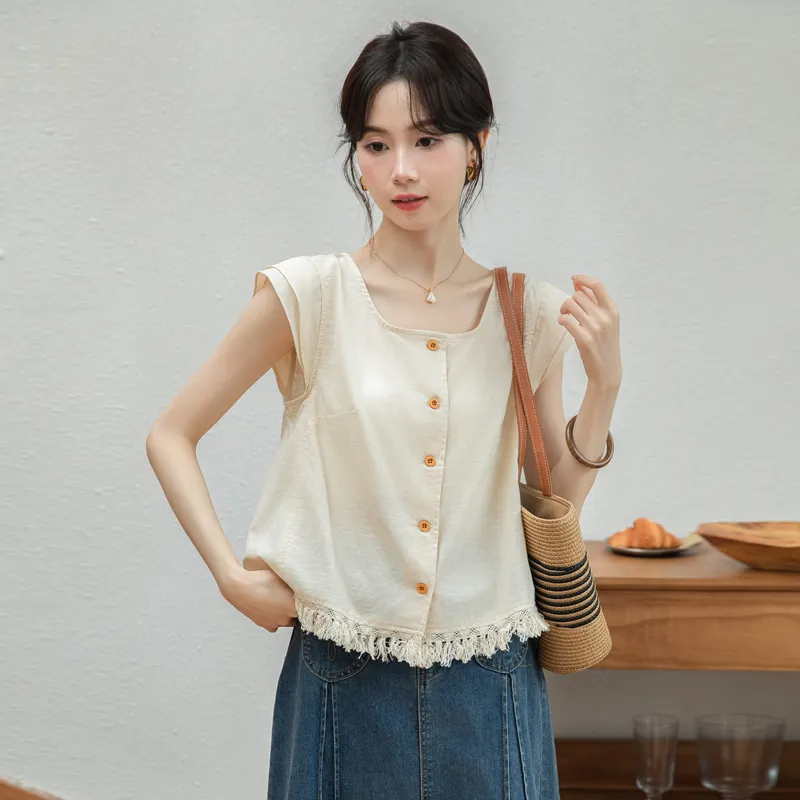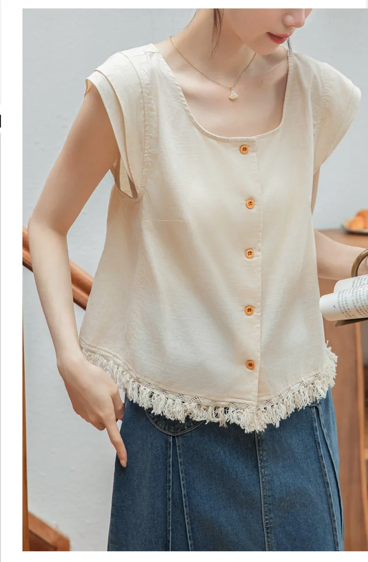 韓系小眾設計下擺流蘇上衣