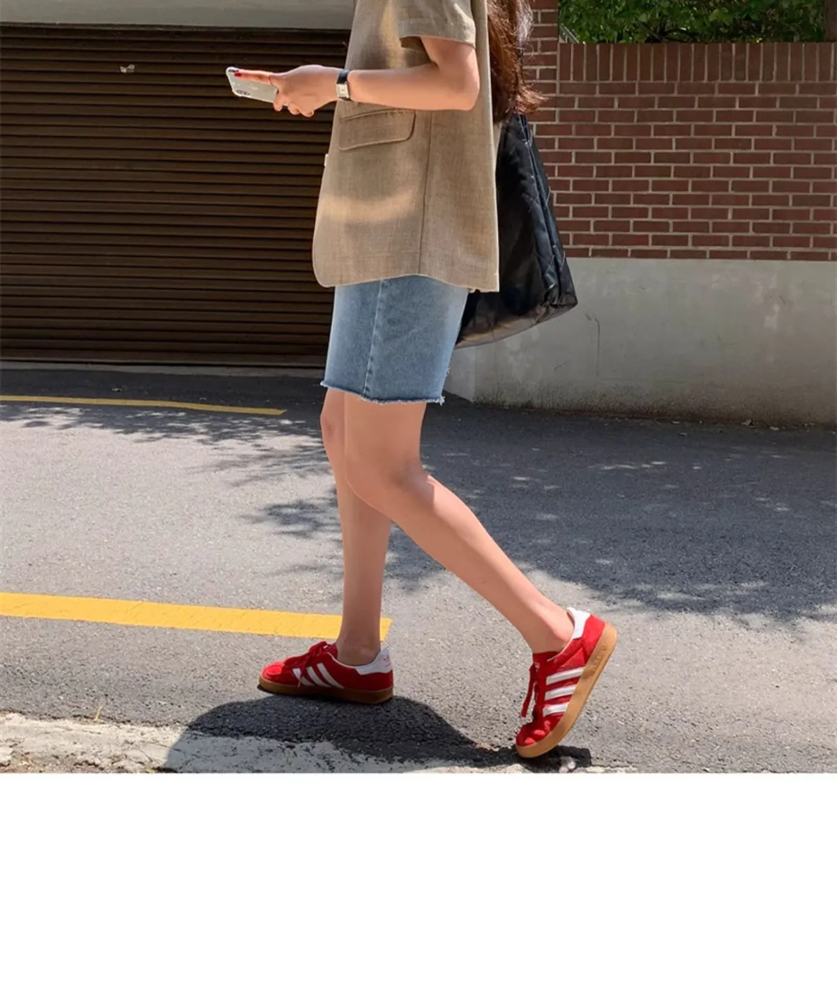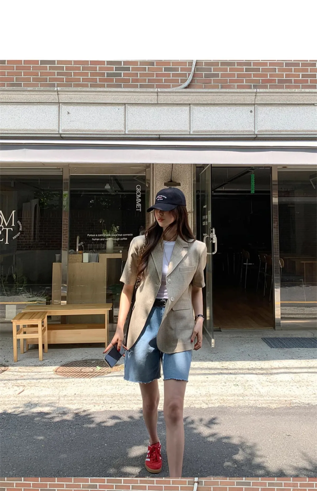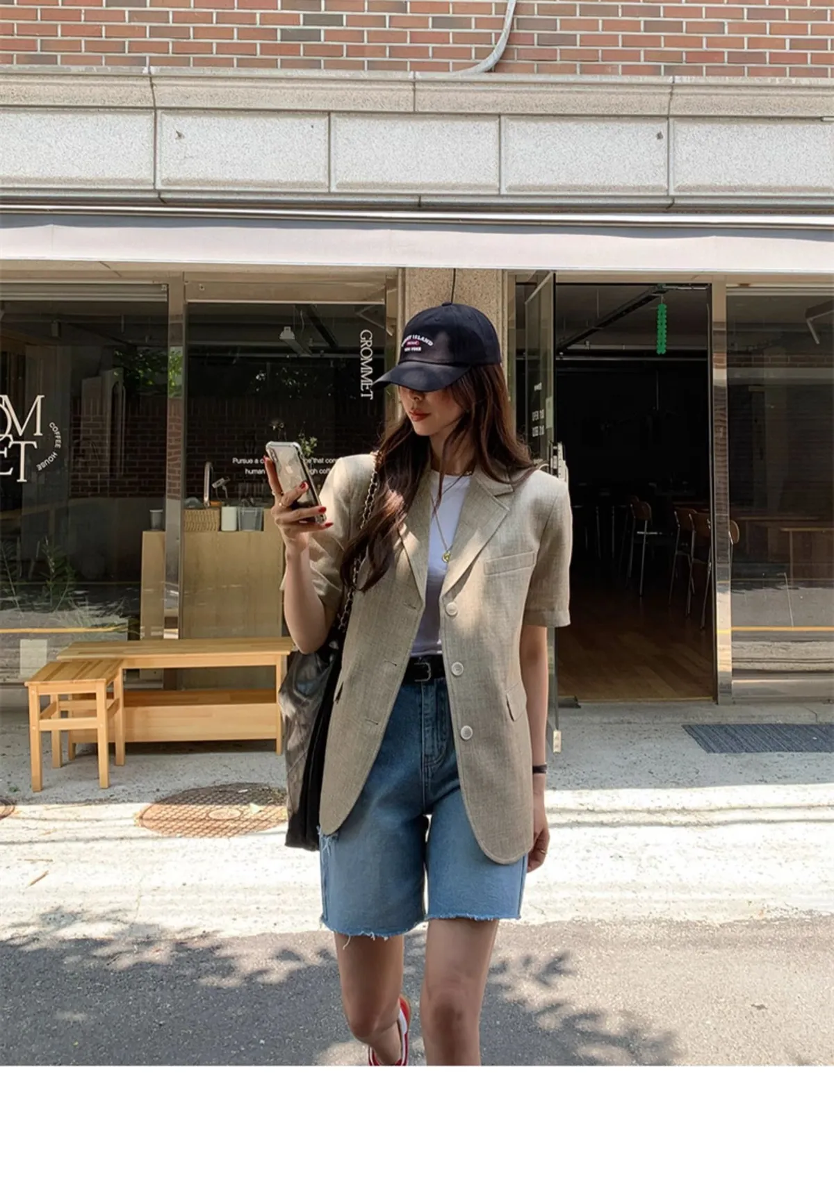 高腰顯瘦側邊破洞五分牛仔褲