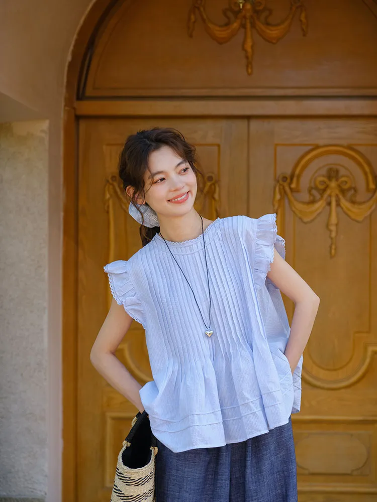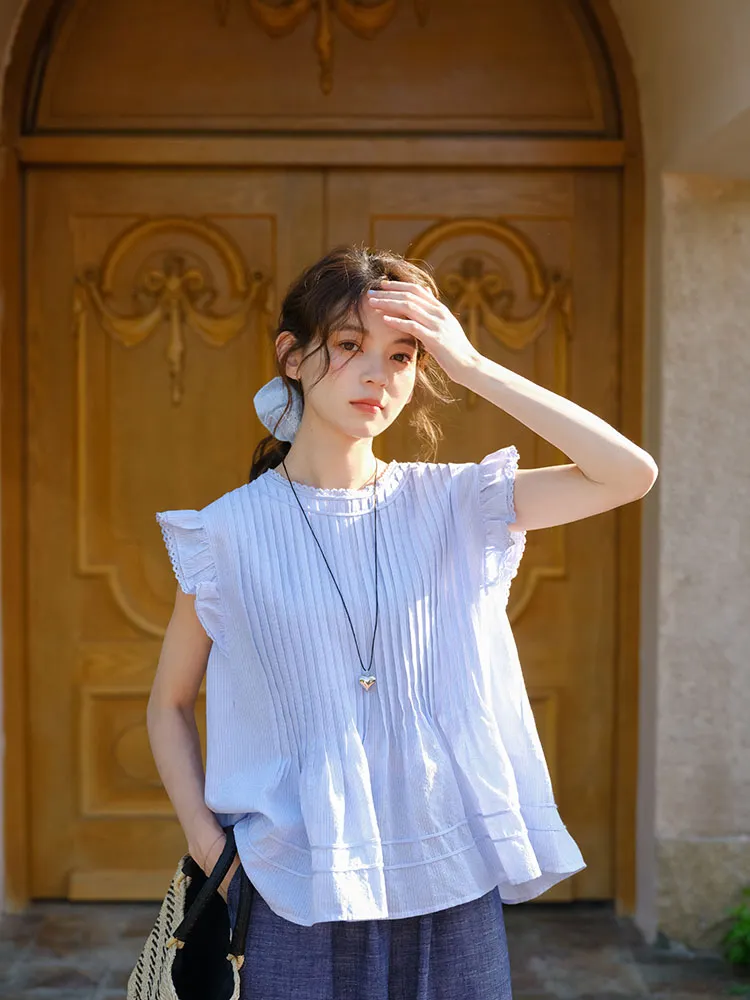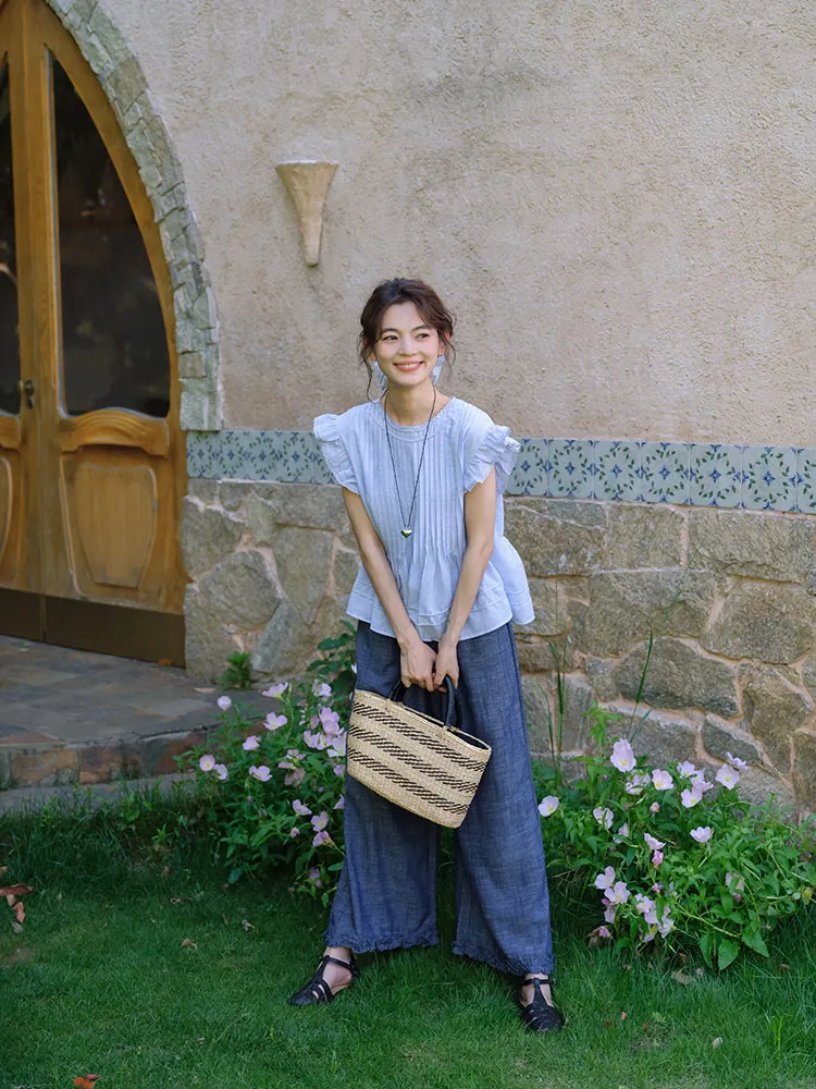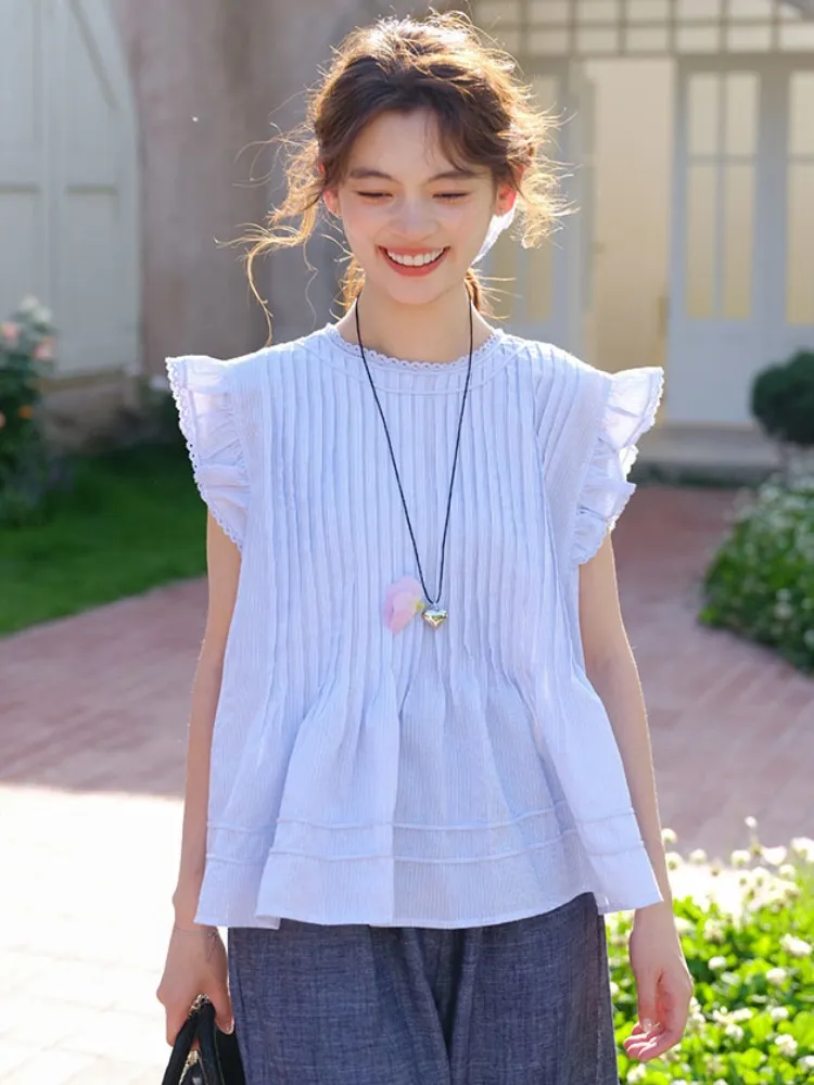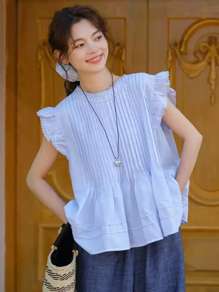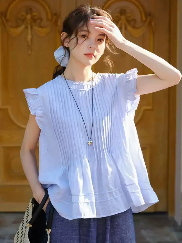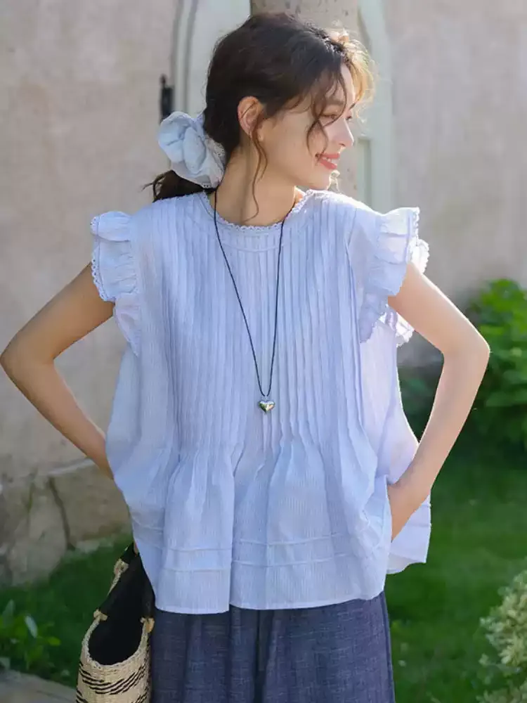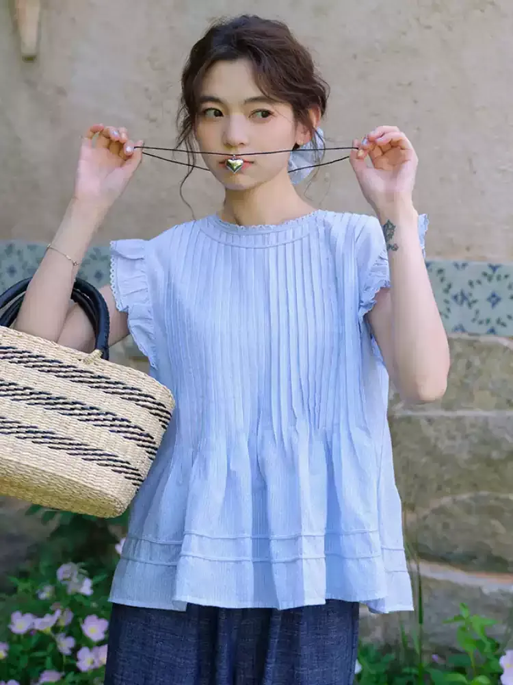 小清新韓系文藝打摺小飛袖衫