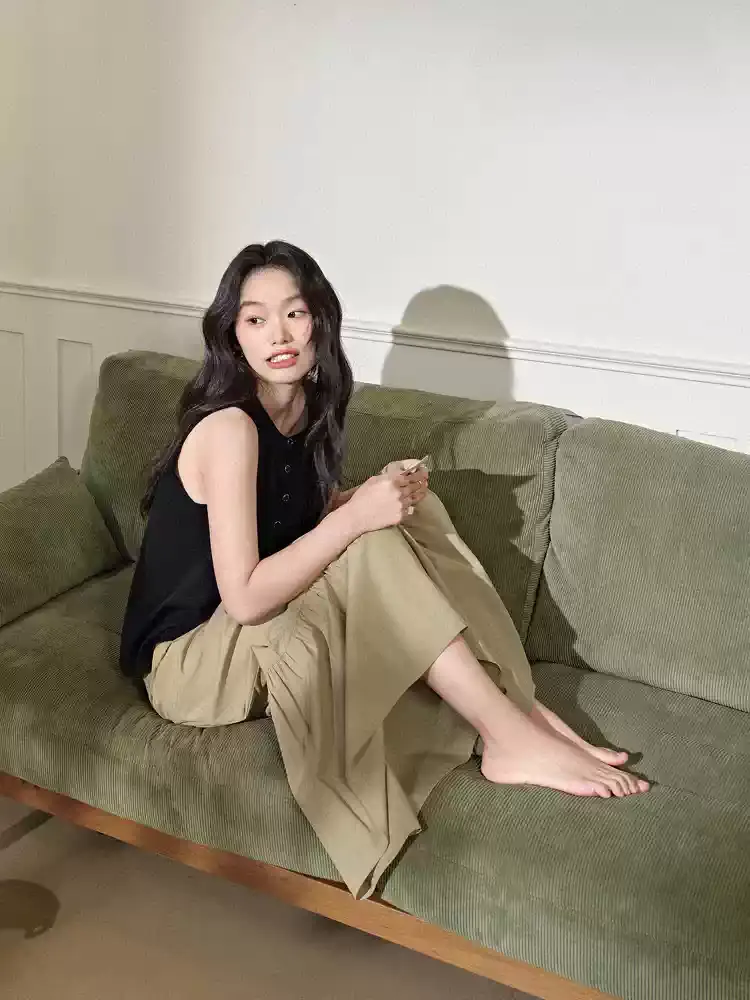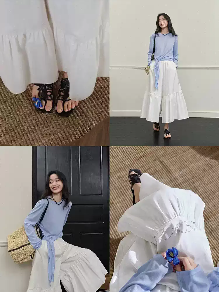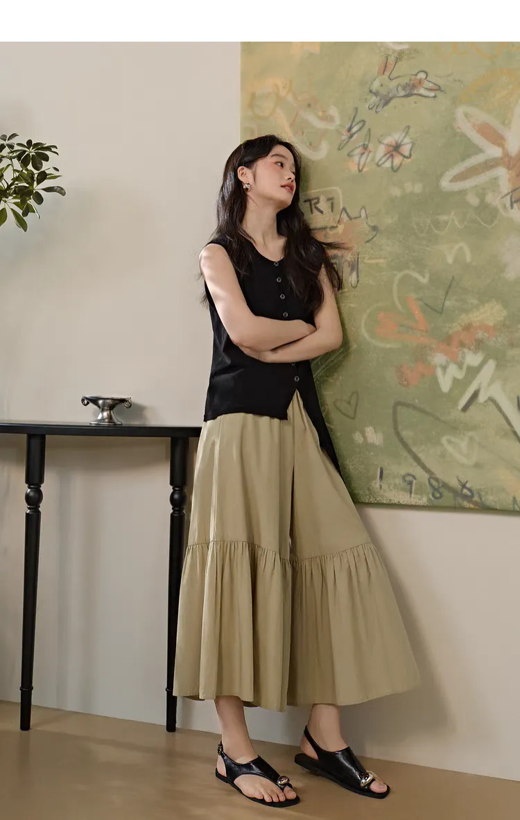 韓系荷葉邊九分休閒褲裙