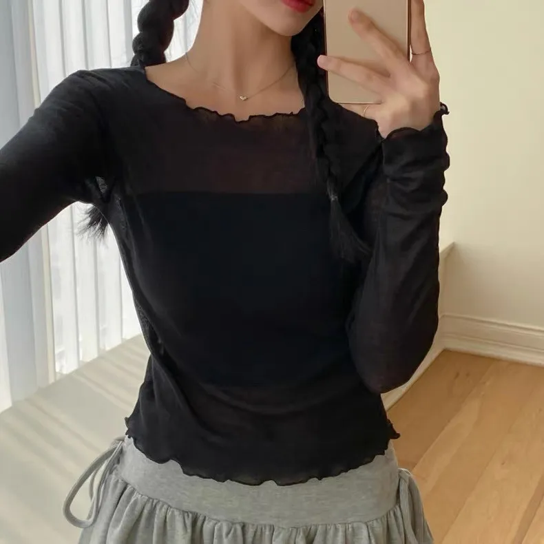 你會發現,這種簡單微透敷的款式,在穿搭上面是超級加分