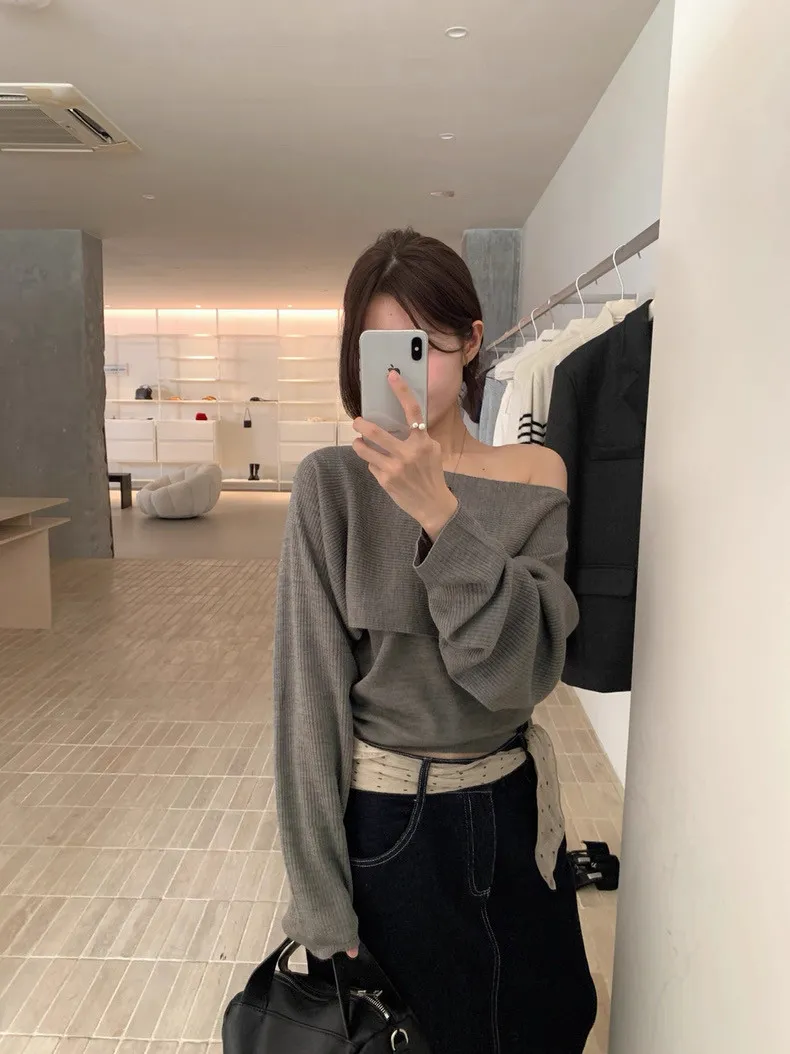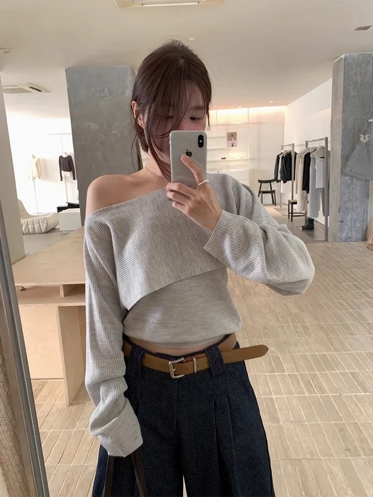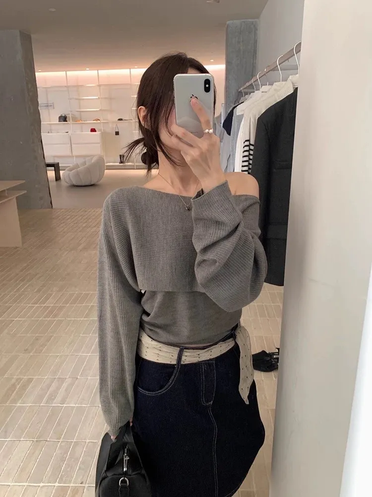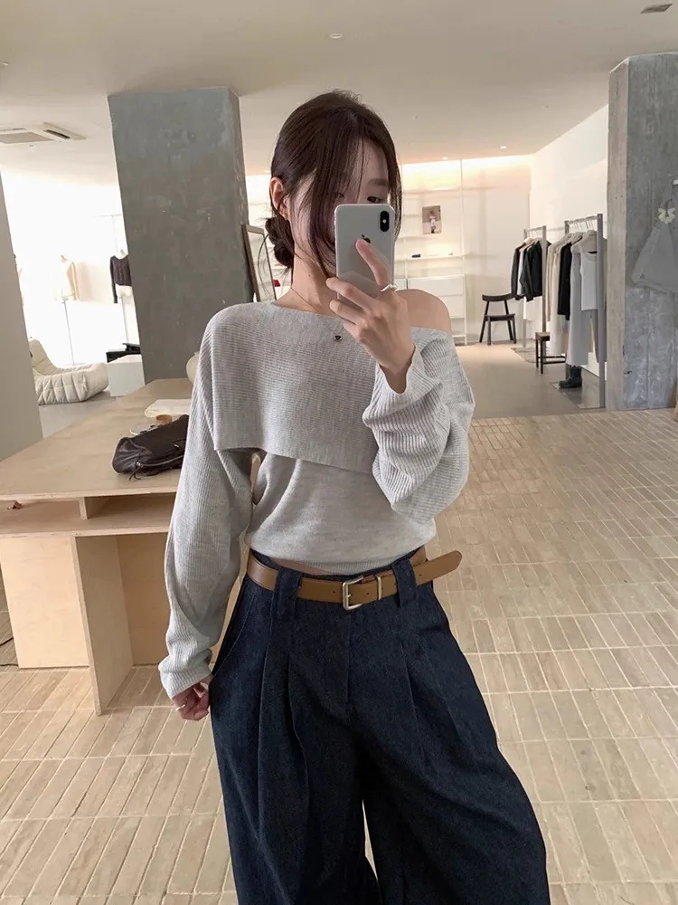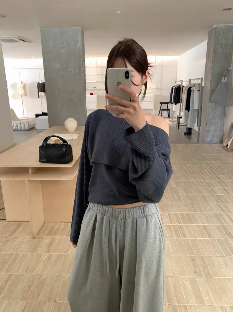 秋季復古大翻領+bra軟針織背心兩件套
