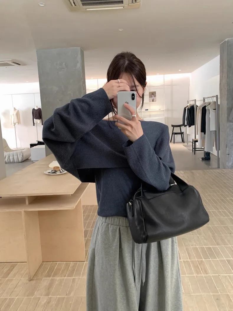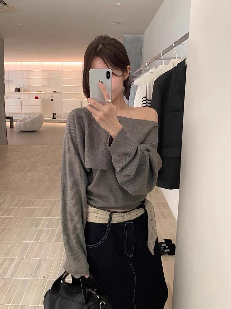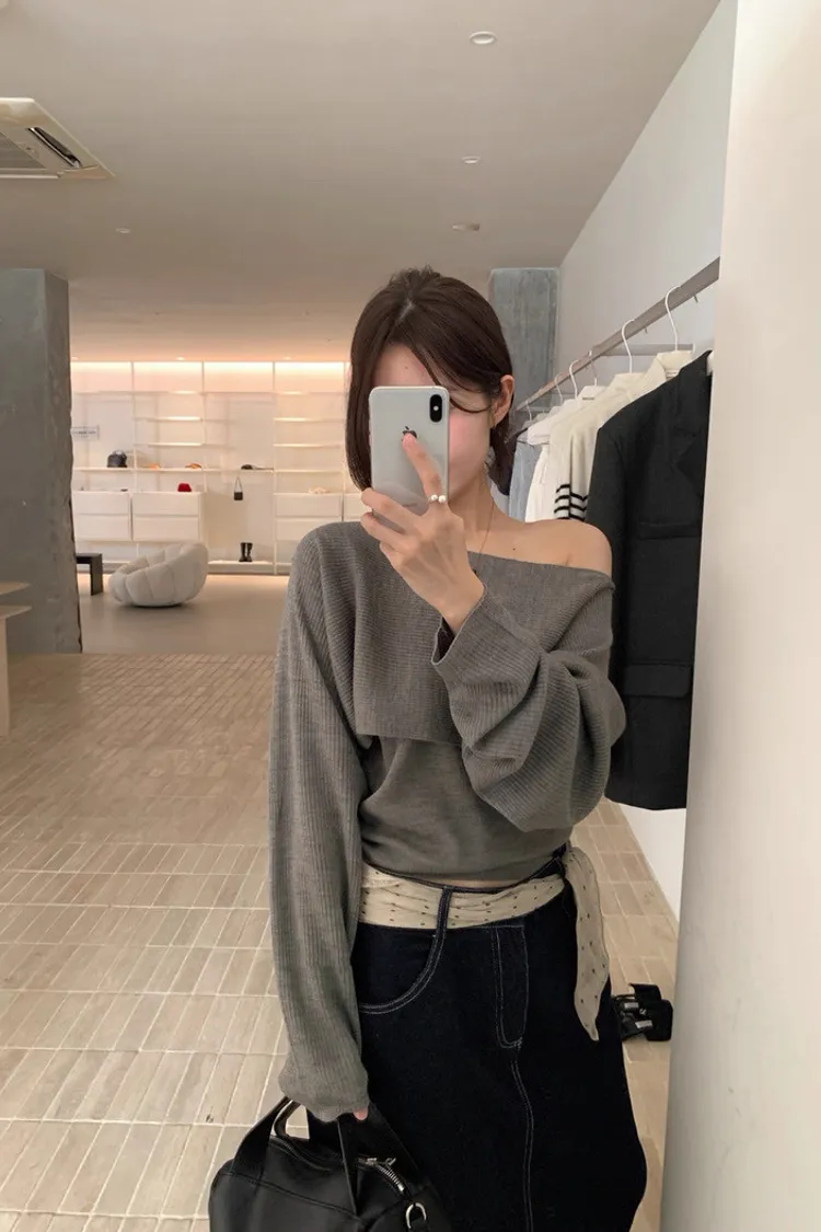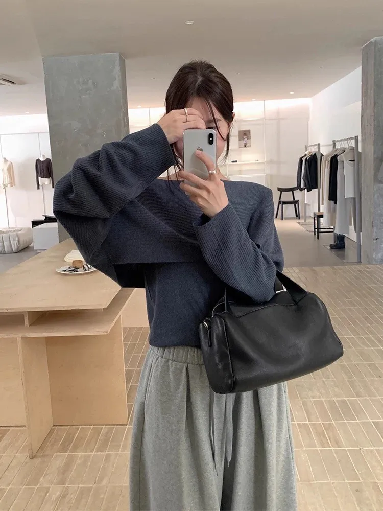 秋季復古大翻領+bra軟針織背心兩件套