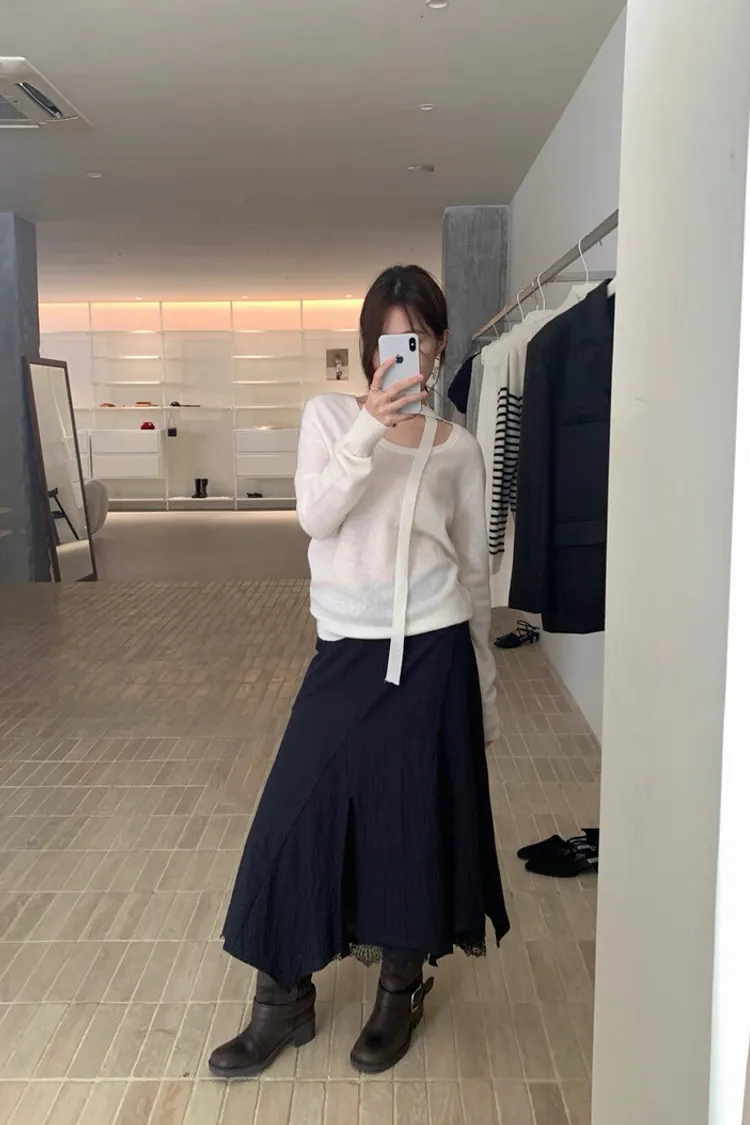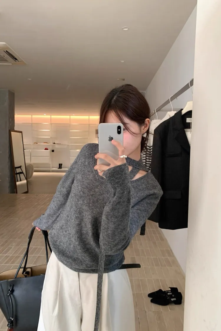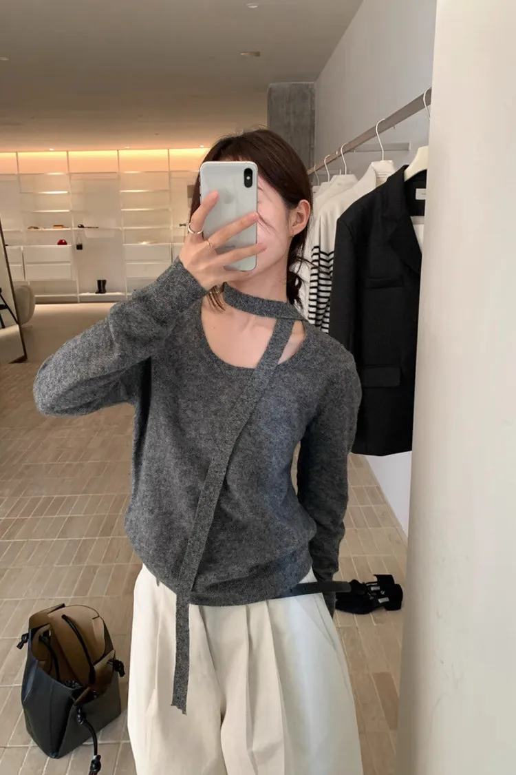 溫柔小眾圓領百搭軟糯針織衫(附飄帶)