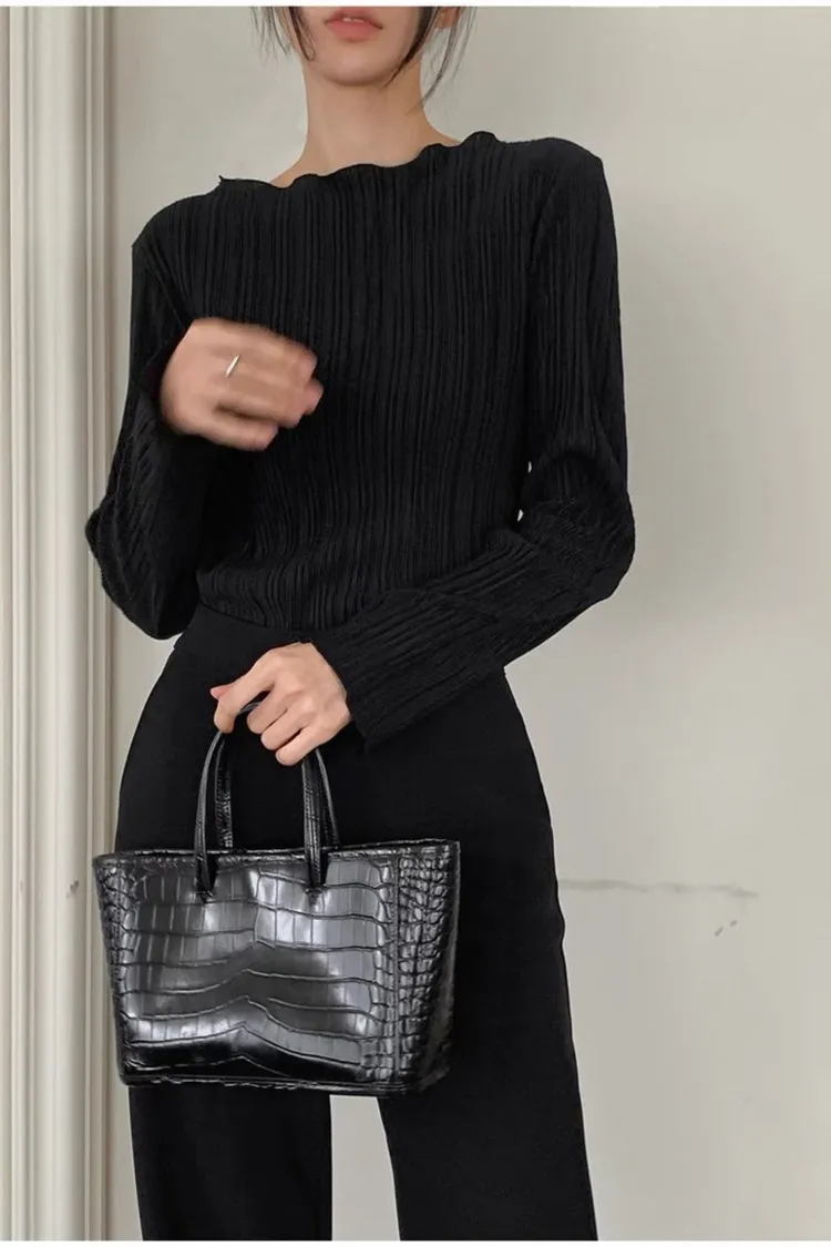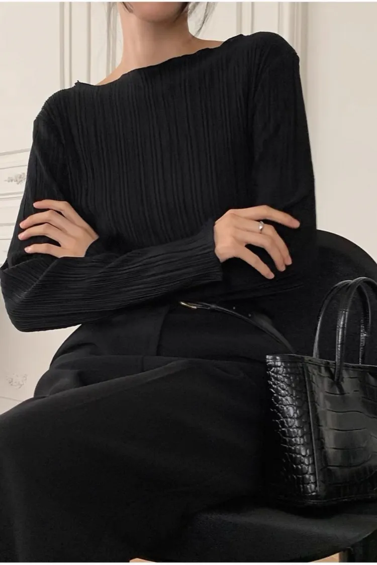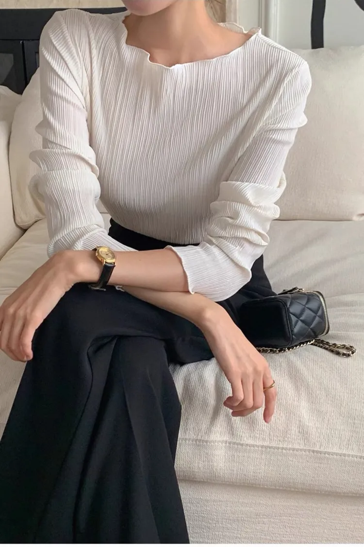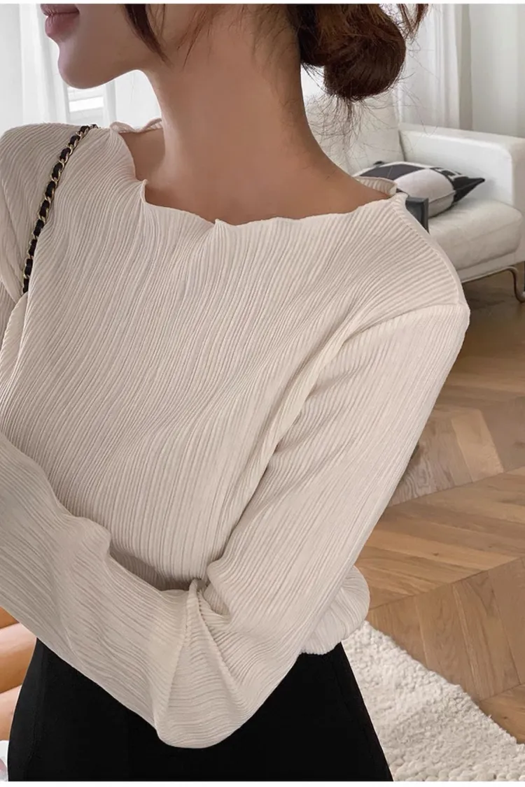 秋季法式氣質花瓣領紋理感上衣