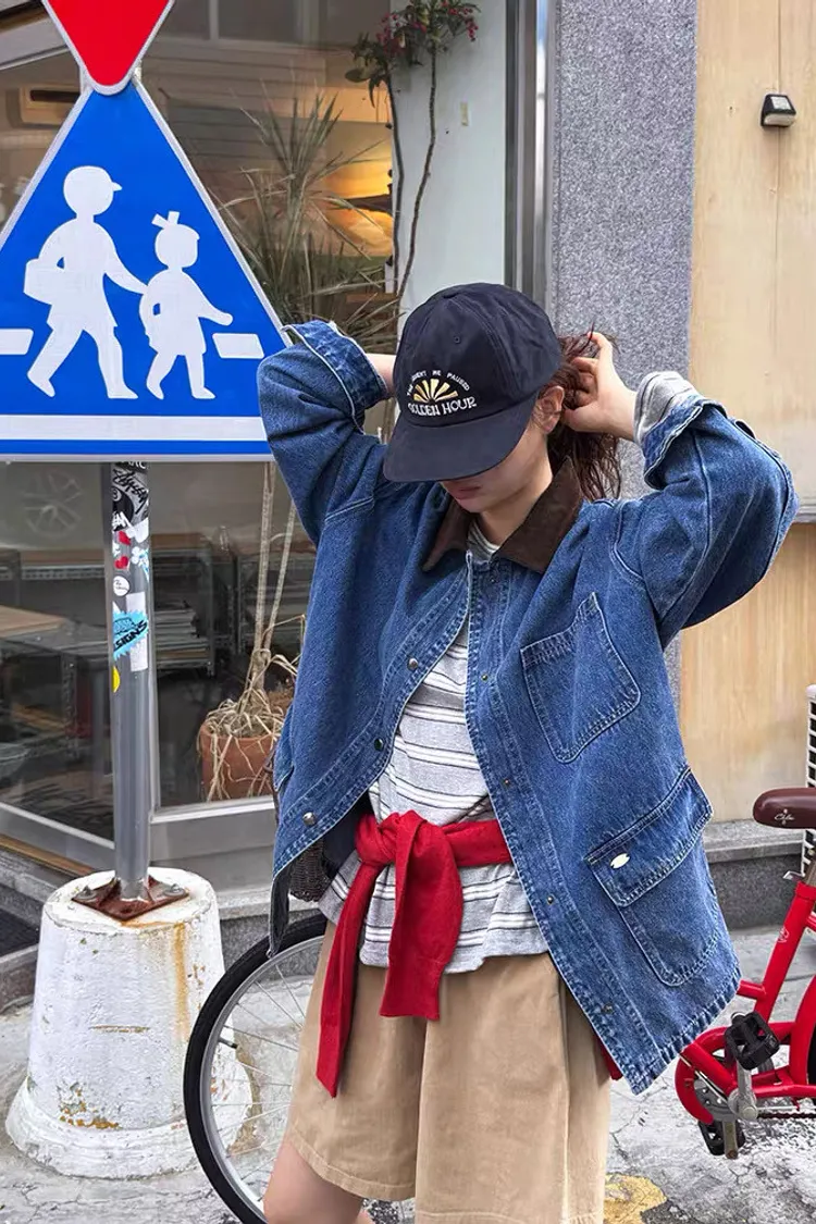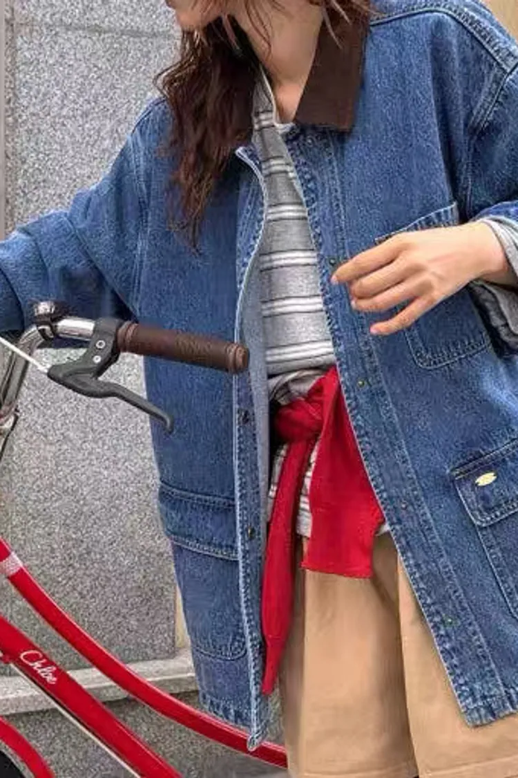 港風復古燈心絨大翻領牛仔寬鬆外套