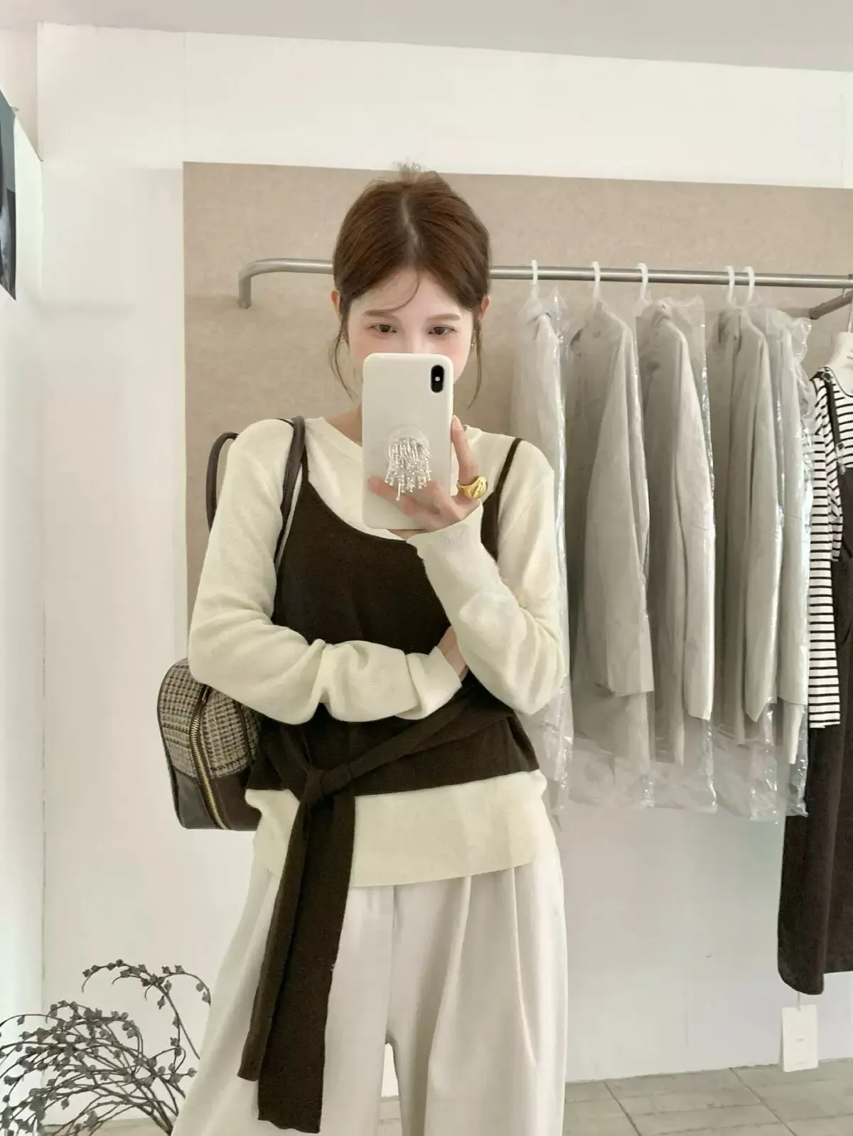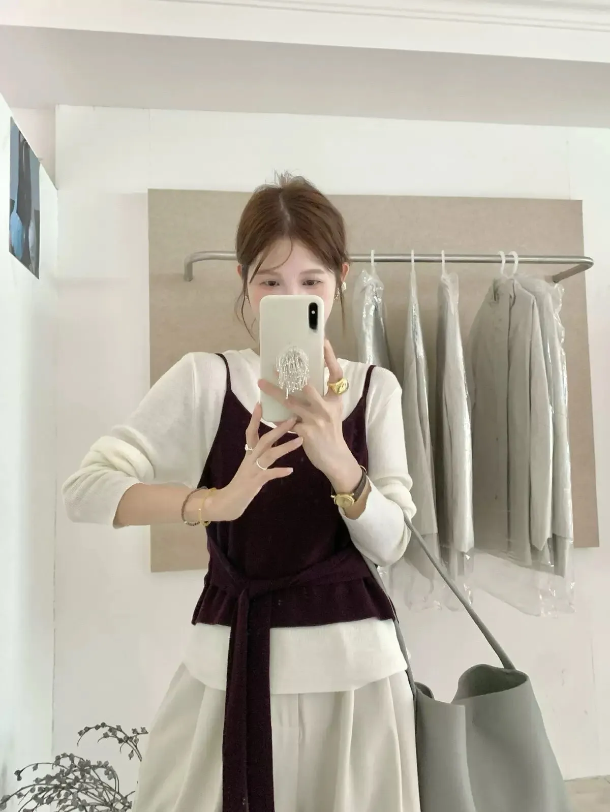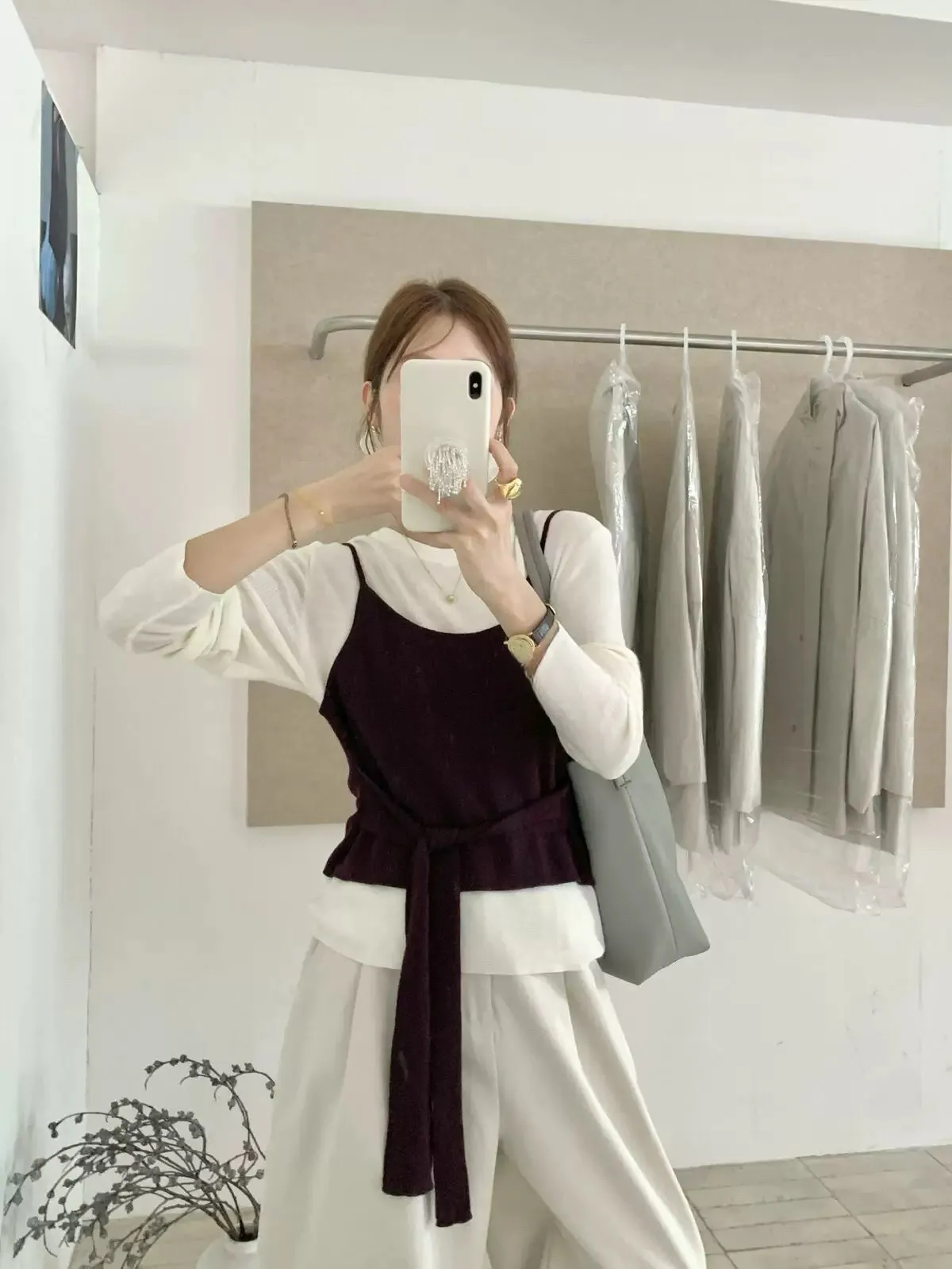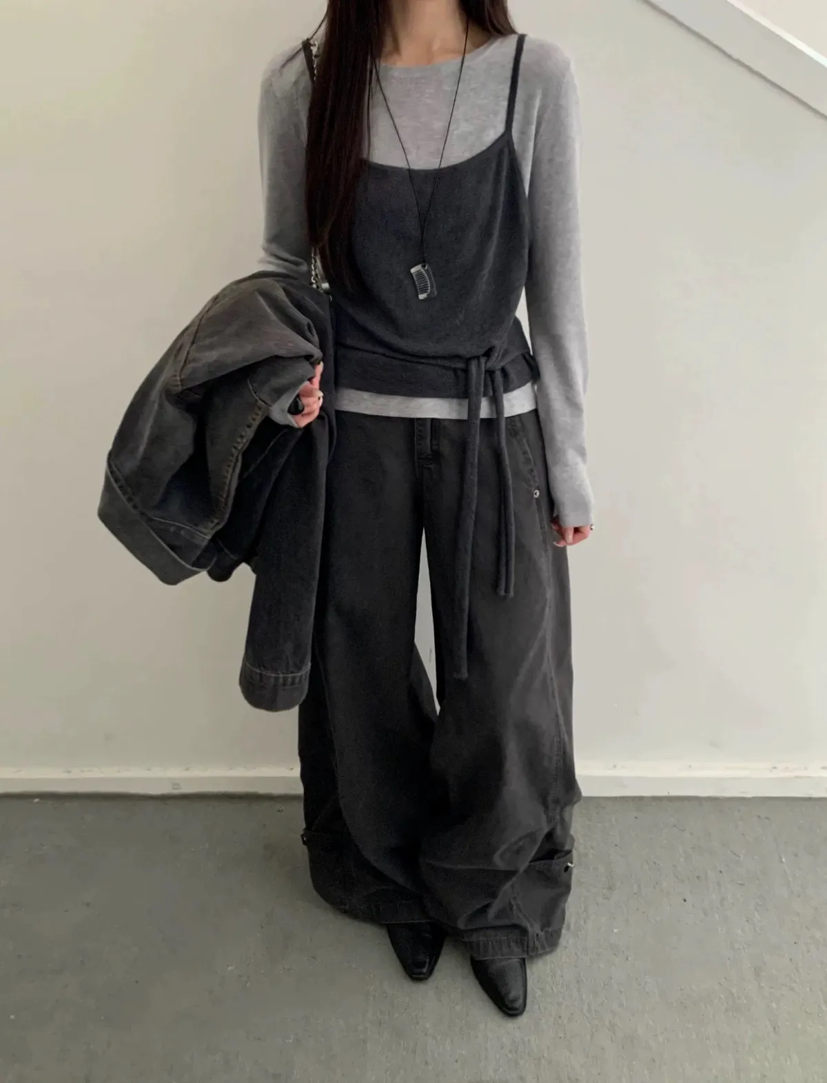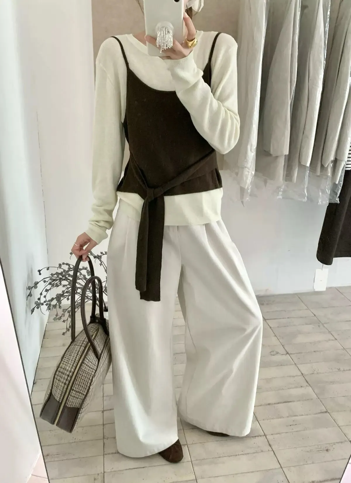 慵懶日常假兩件撞色綁帶針織衫