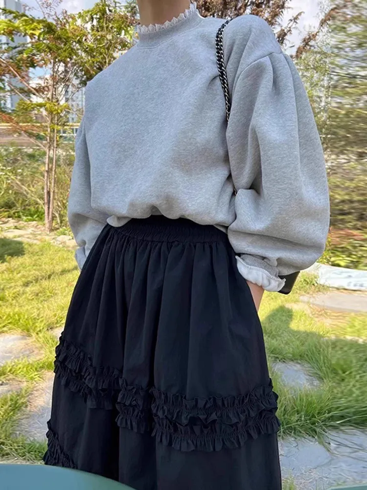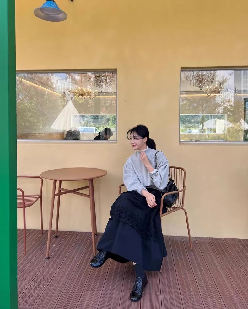 鬆緊腰立體蕾絲花半身圓裙