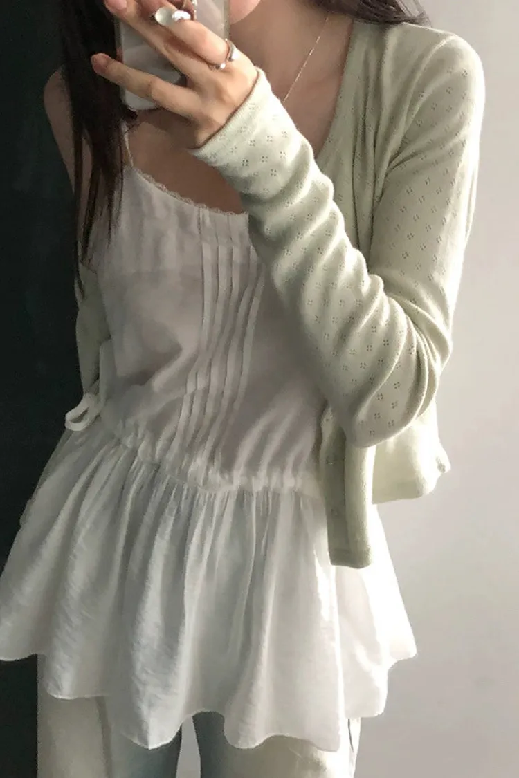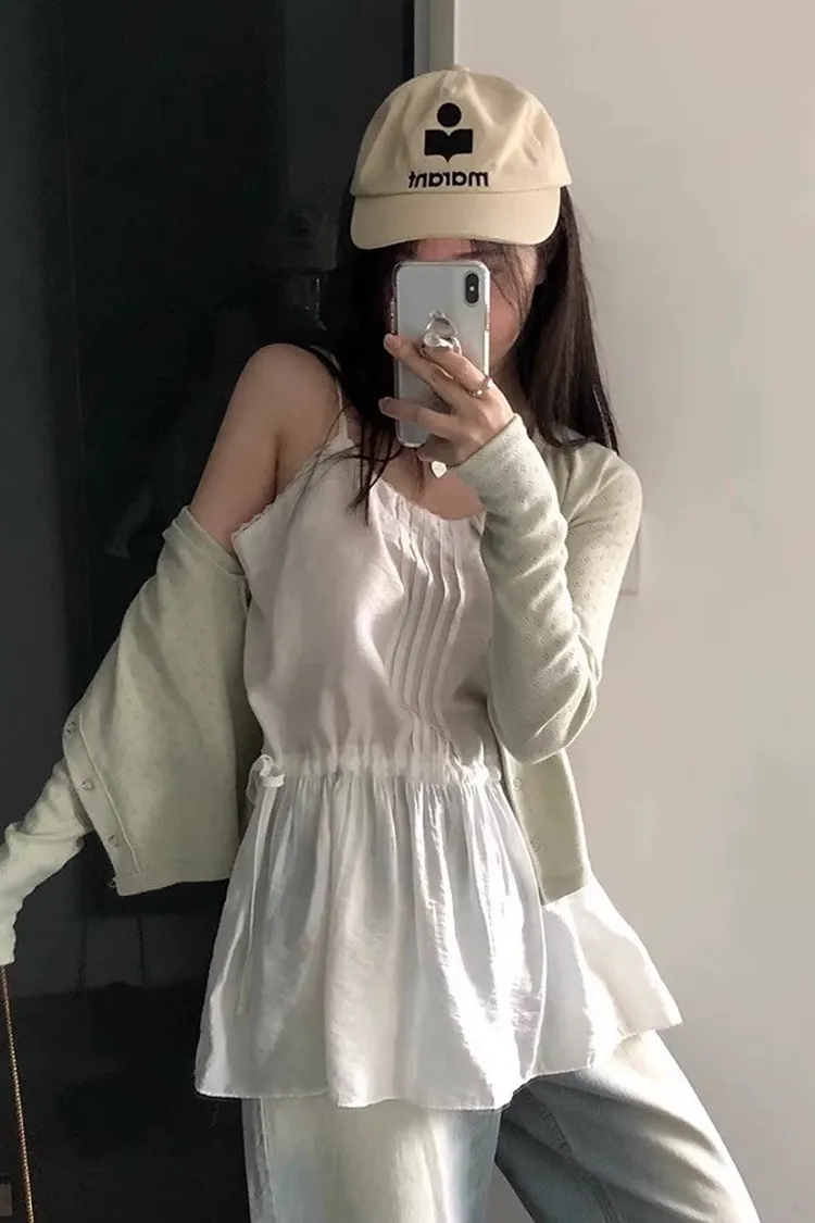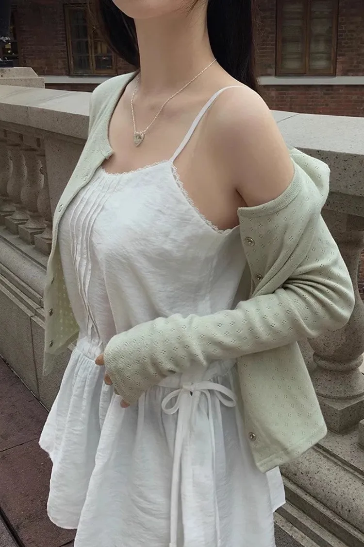 內搭疊穿蕾絲花邊抽繩繫帶小背心裙