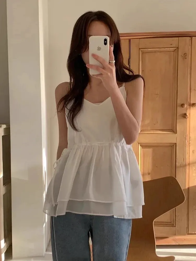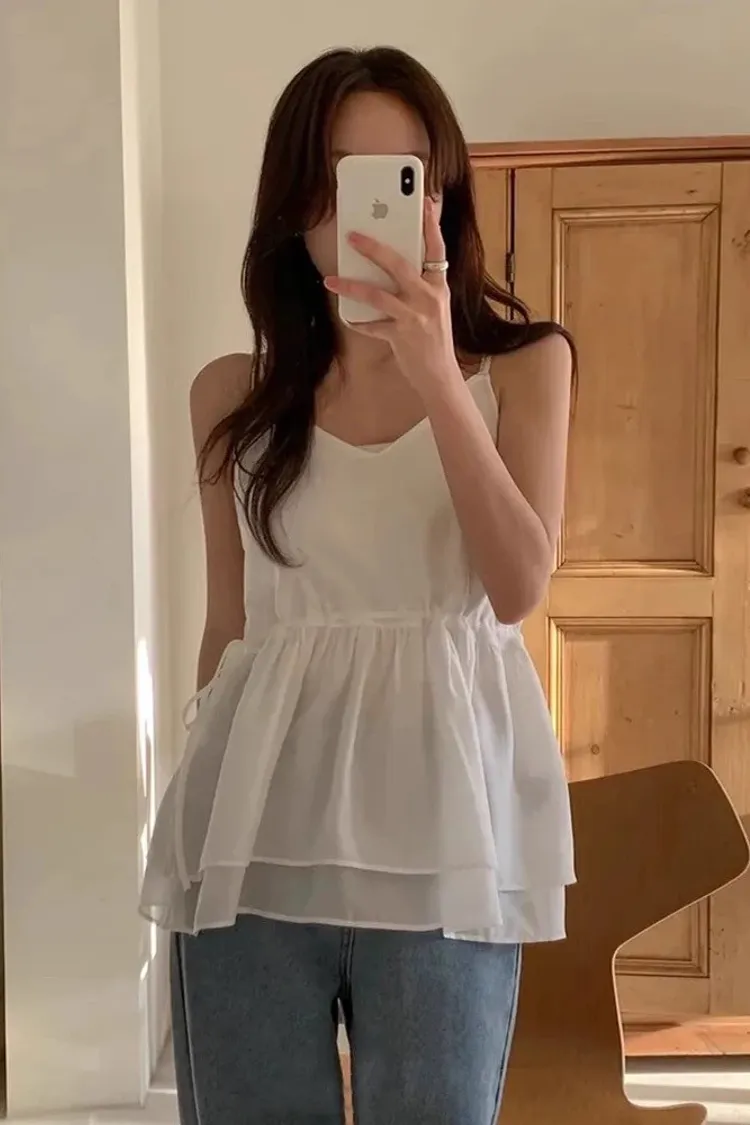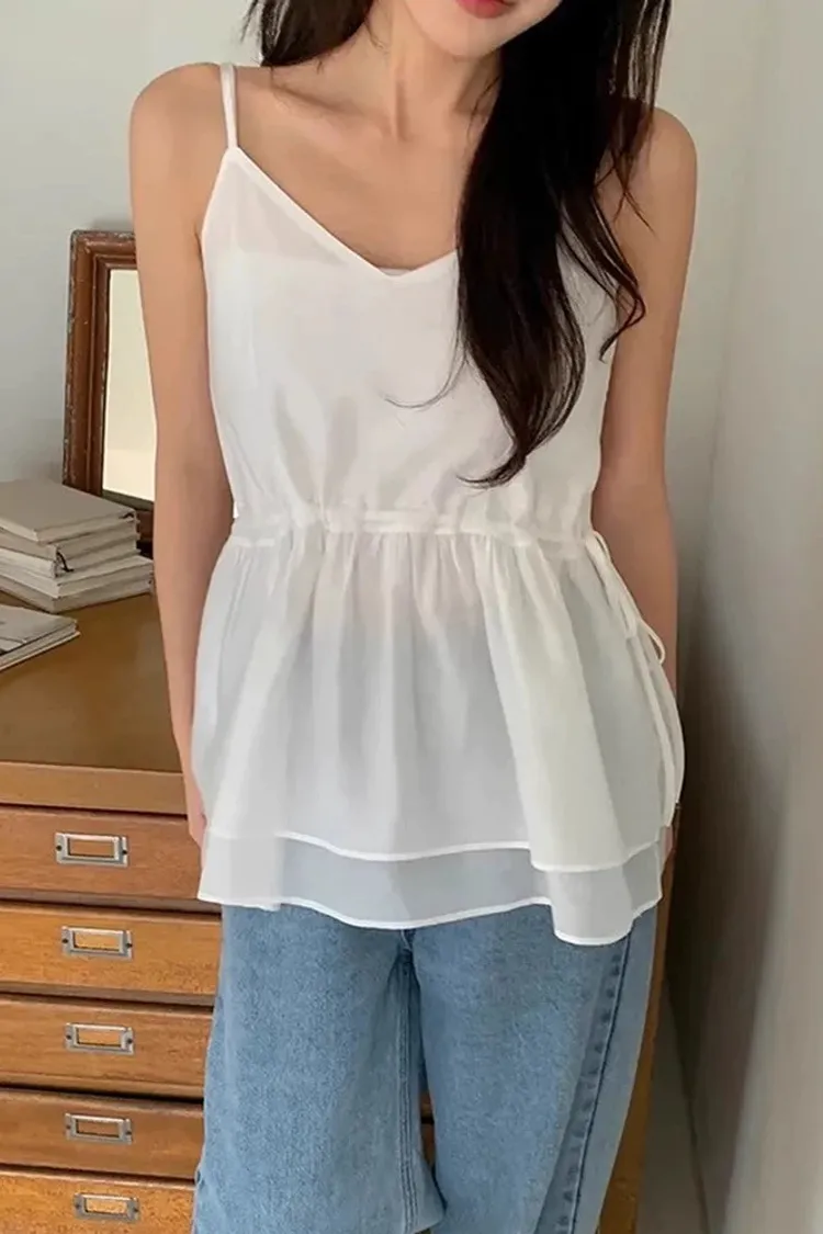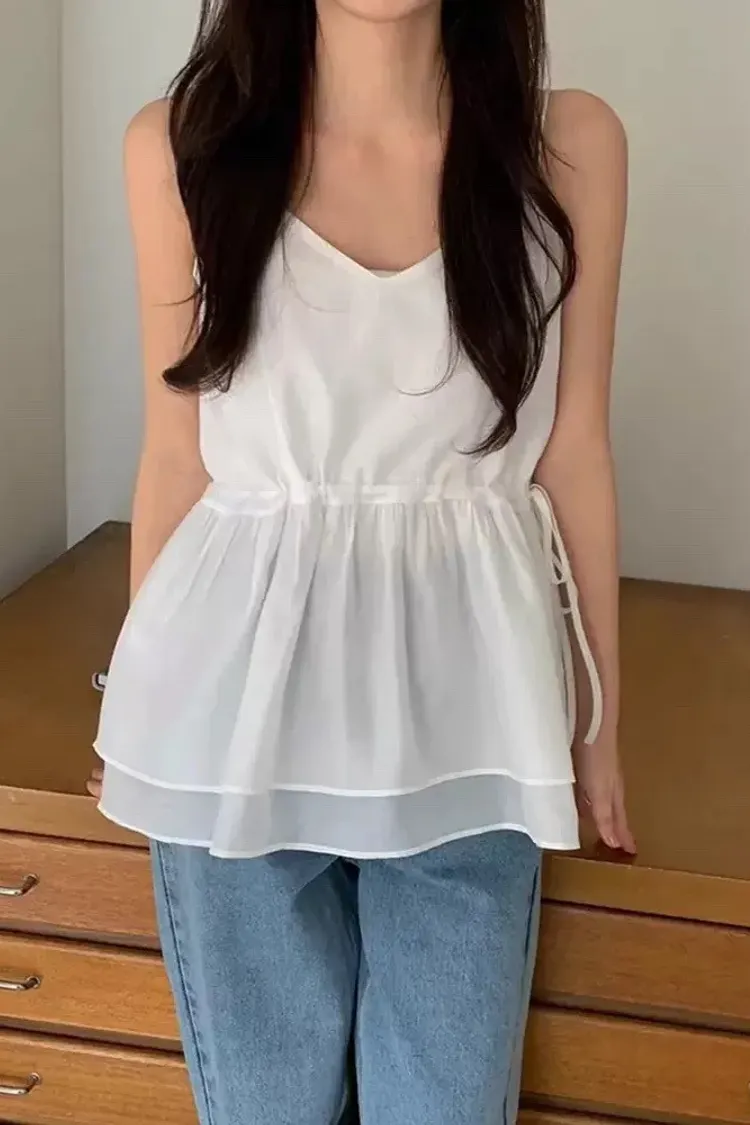 疊穿神器間帶可調雙層裙擺側邊抽繩背心裙