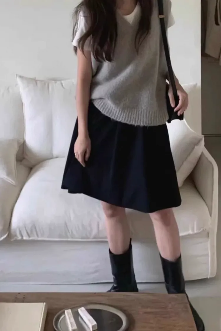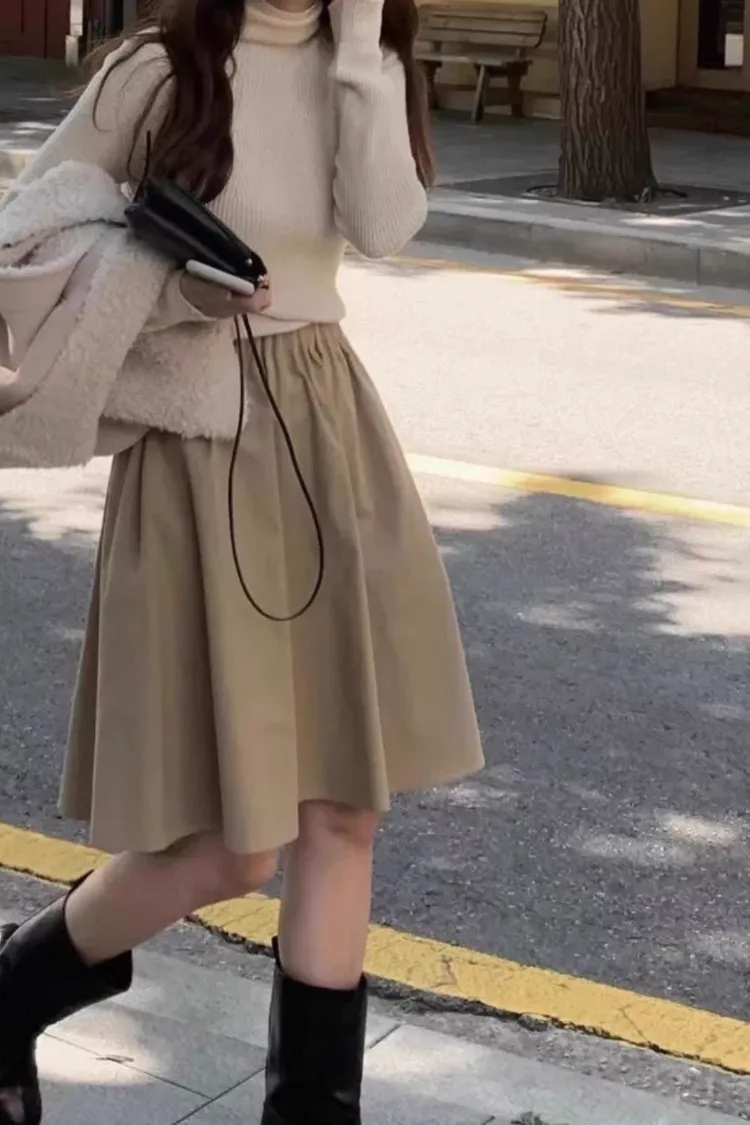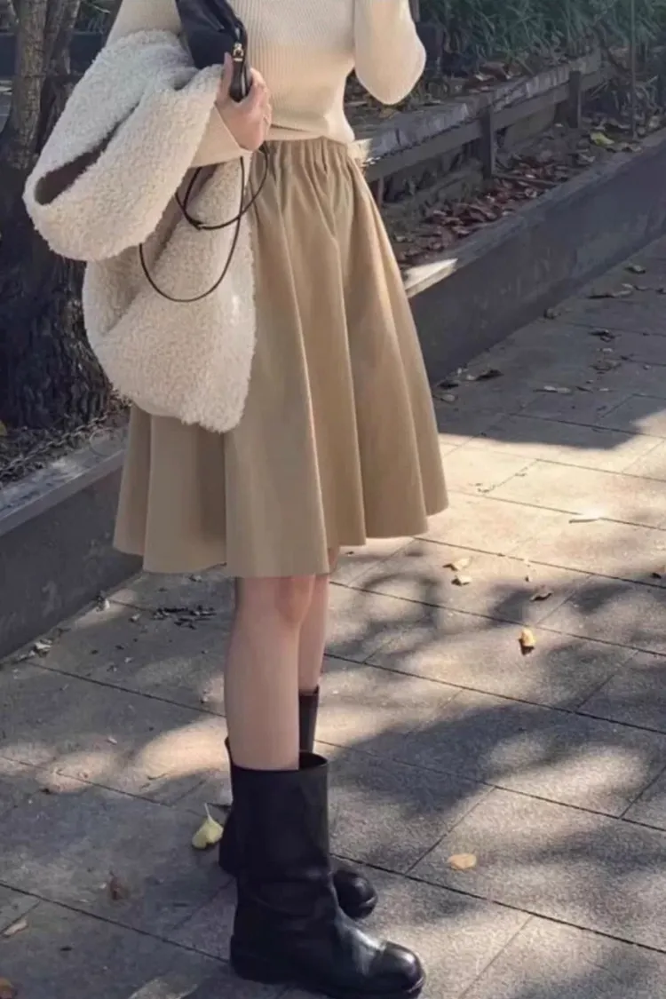 秋季法式復古鬆緊高腰A字半身裙