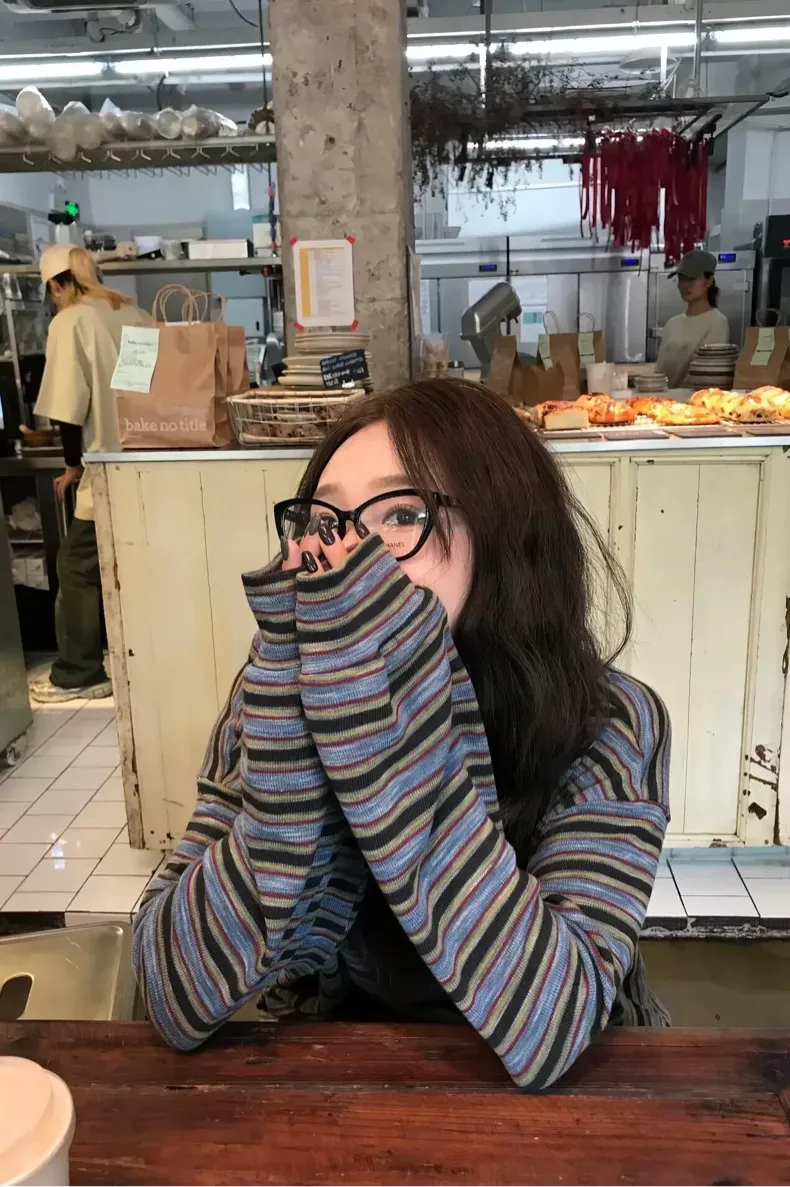 復古慵懶寬鬆條紋超舒服軟針織上衣