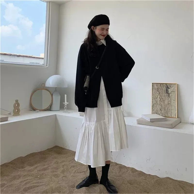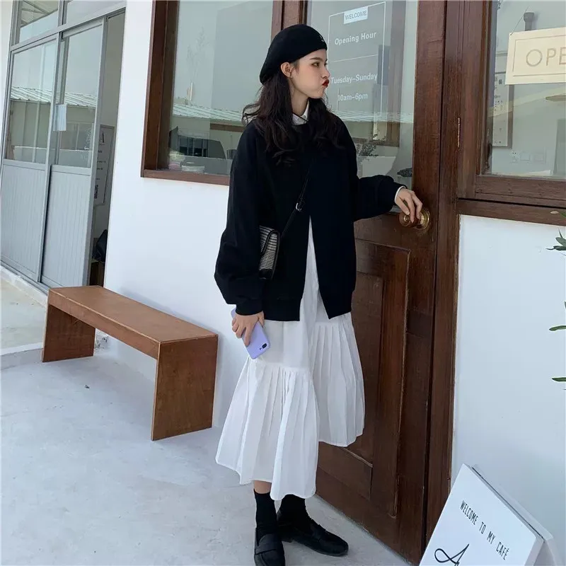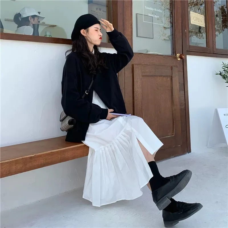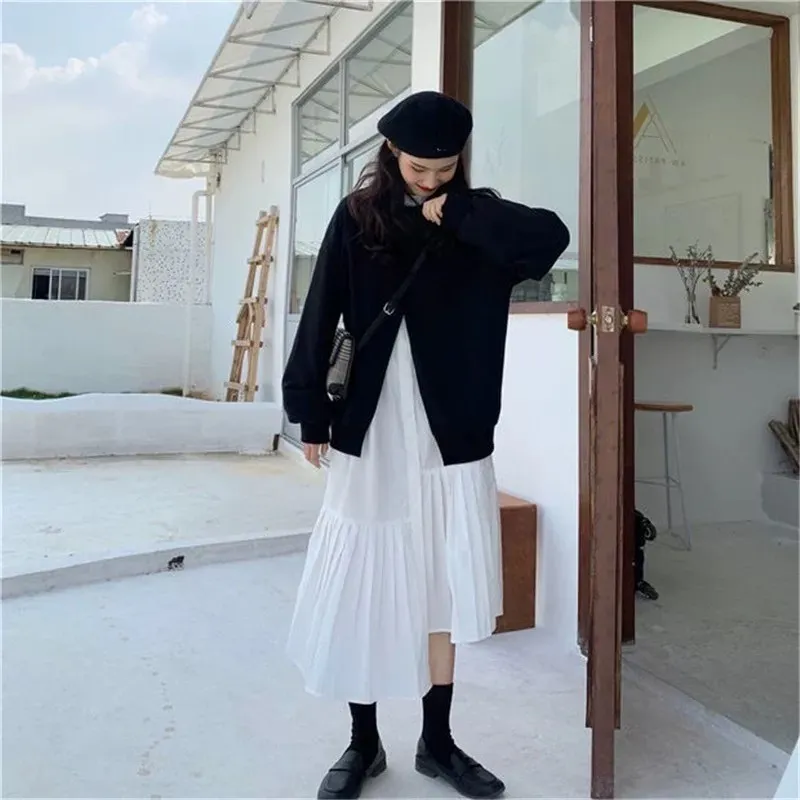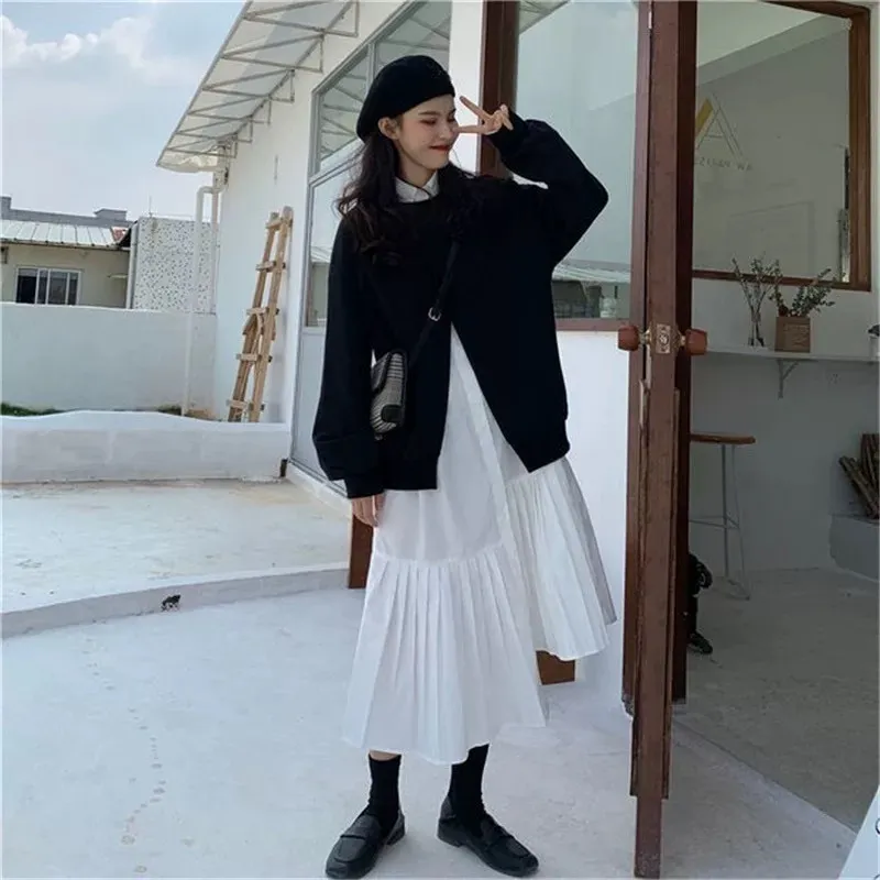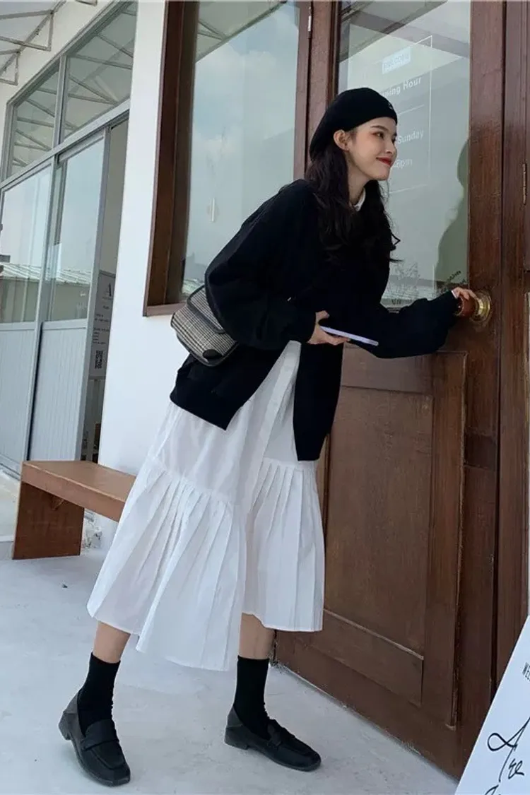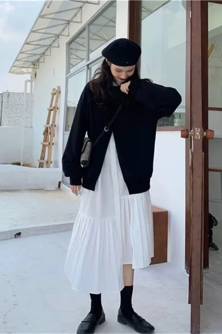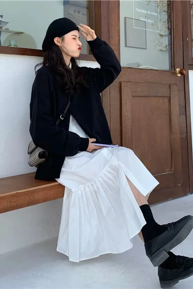 小眾設計學院風裙襬百摺設計兩件套