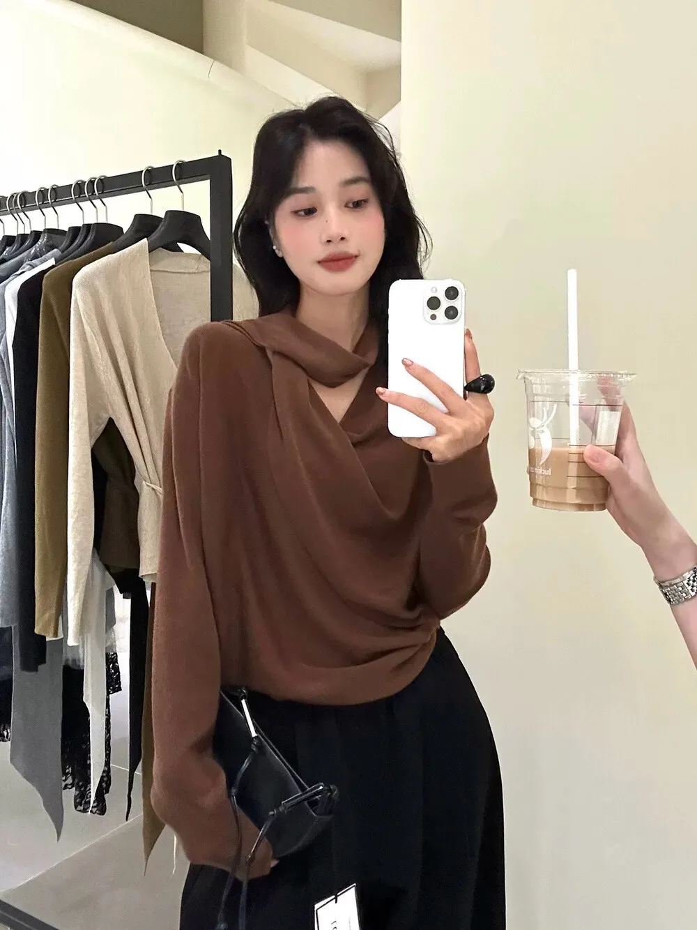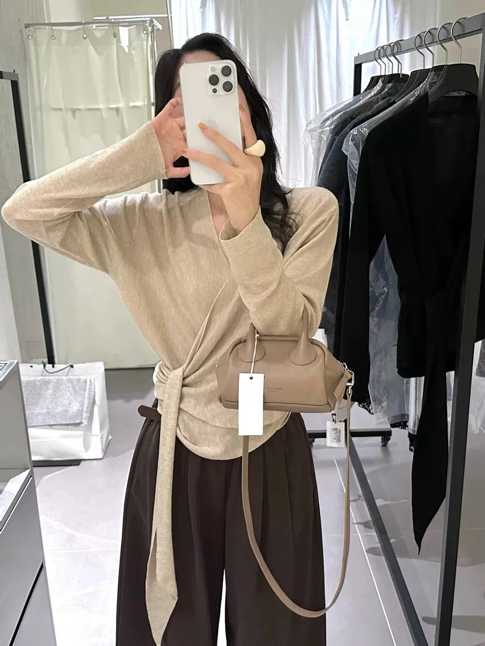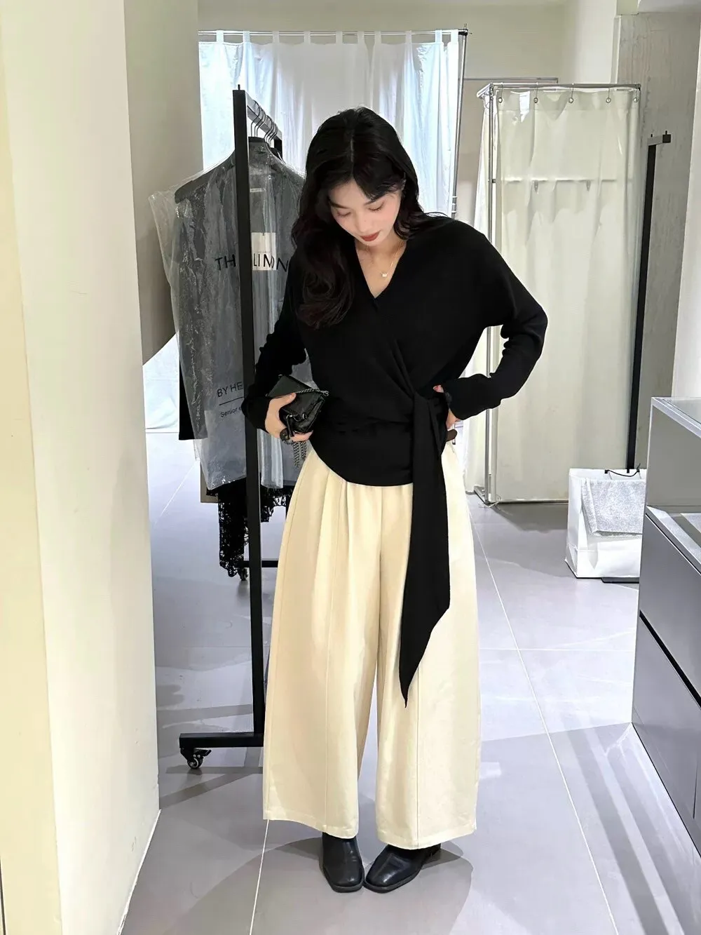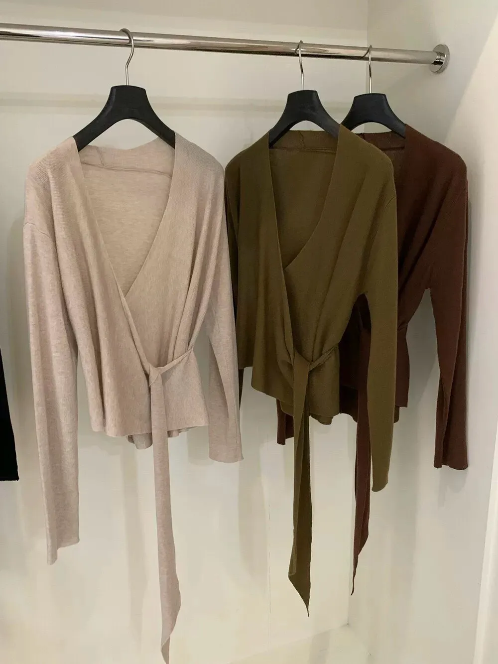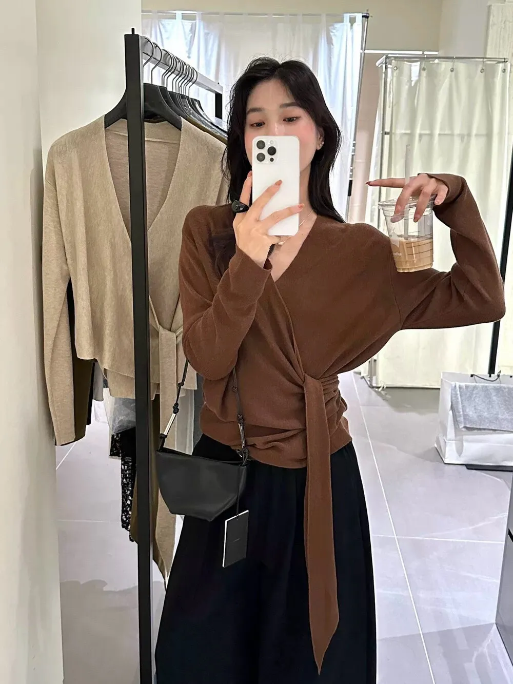 秋季鬆弛感兩穿飄帶v領針織上衣