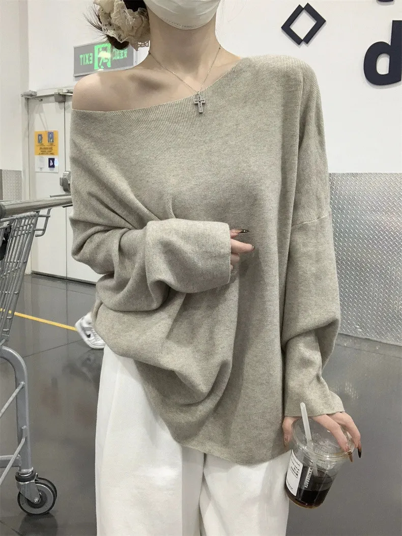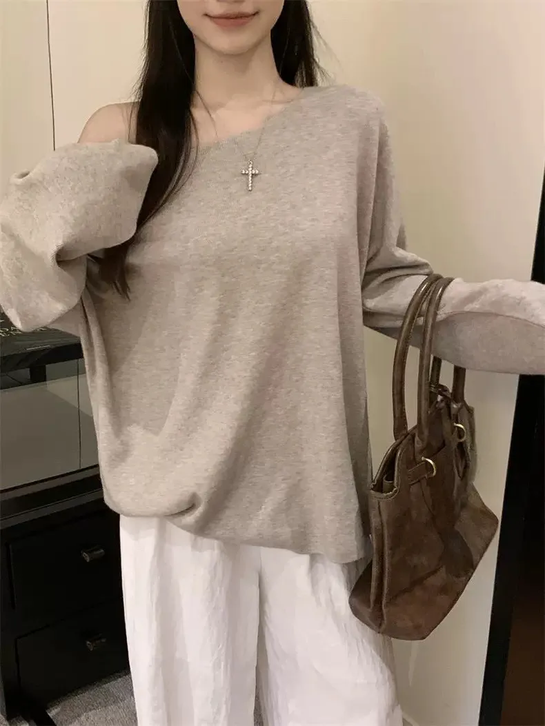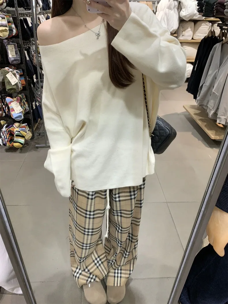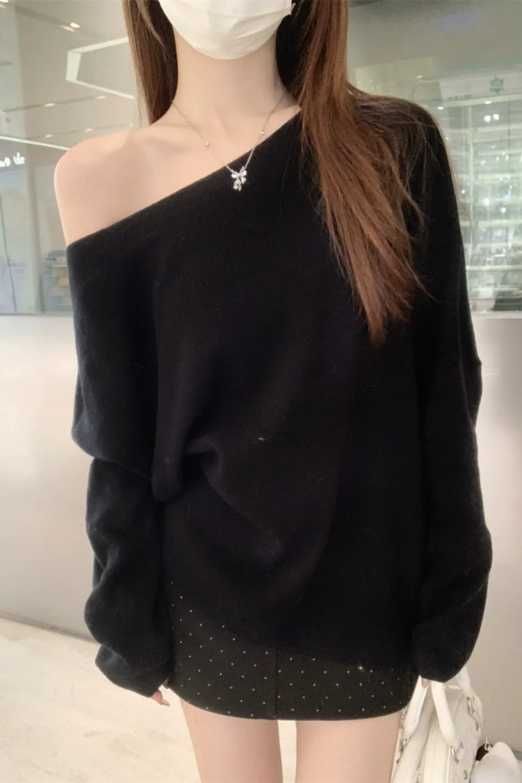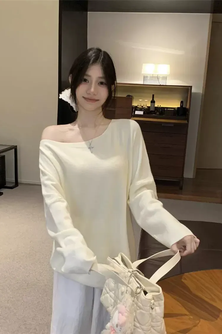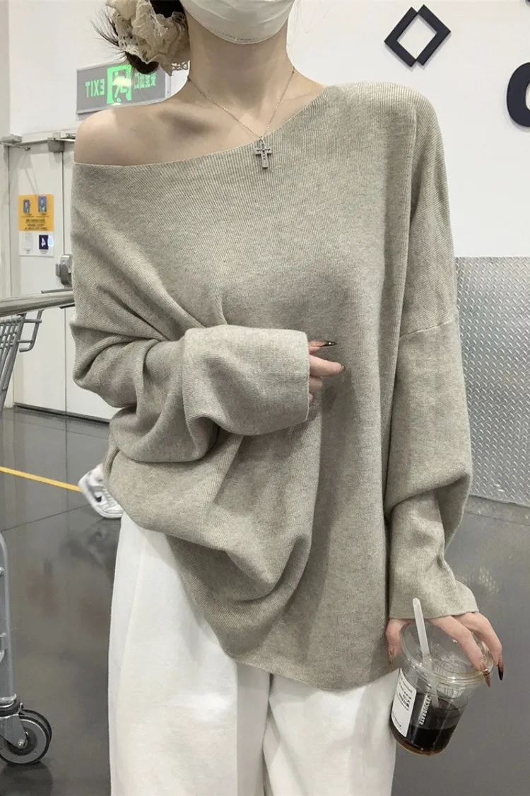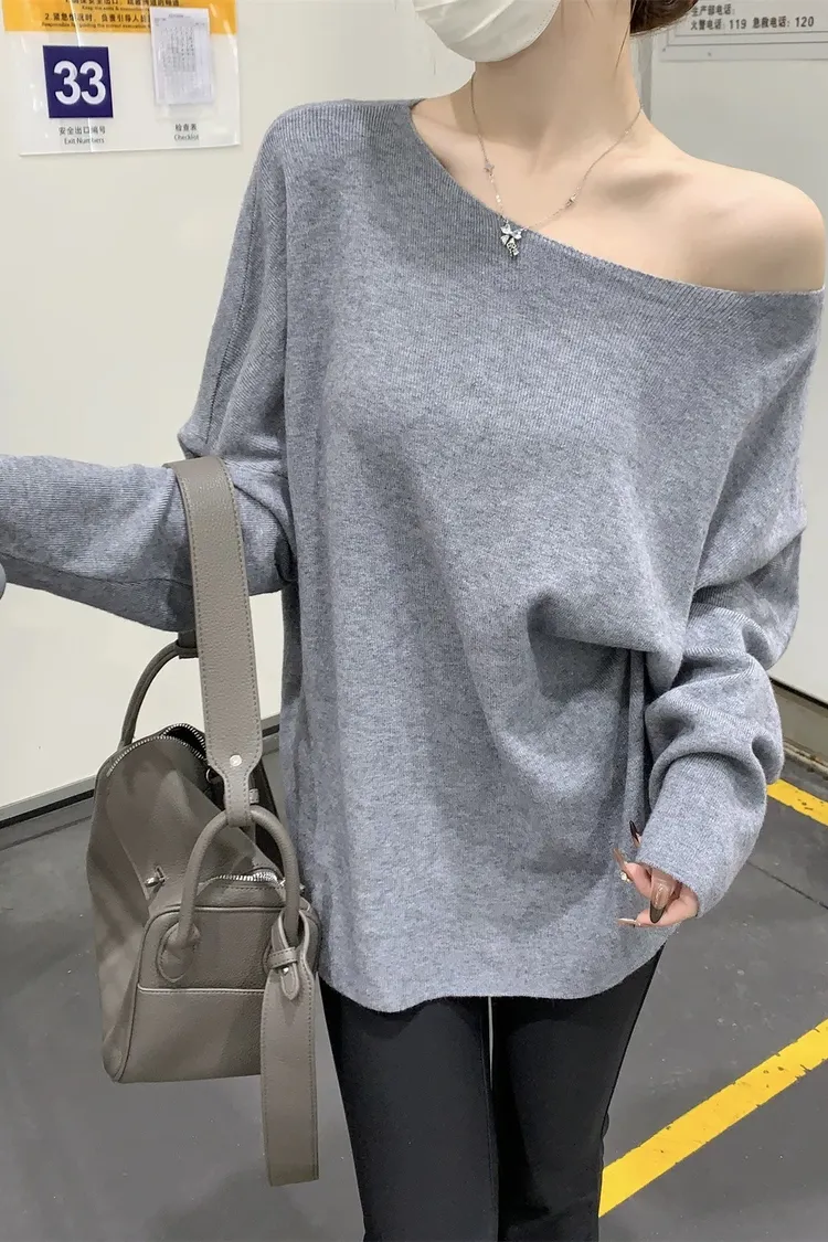 鬆弛慵懶感居家斜肩軟糯針織衫