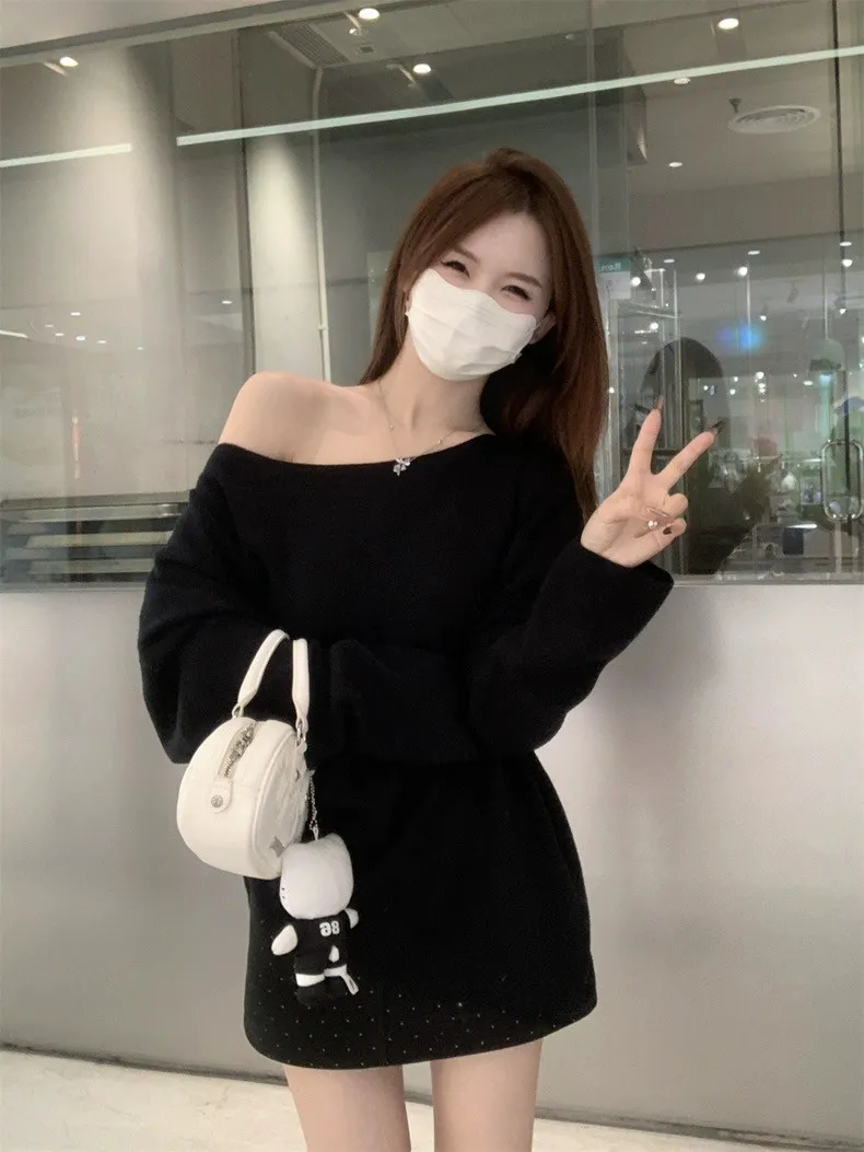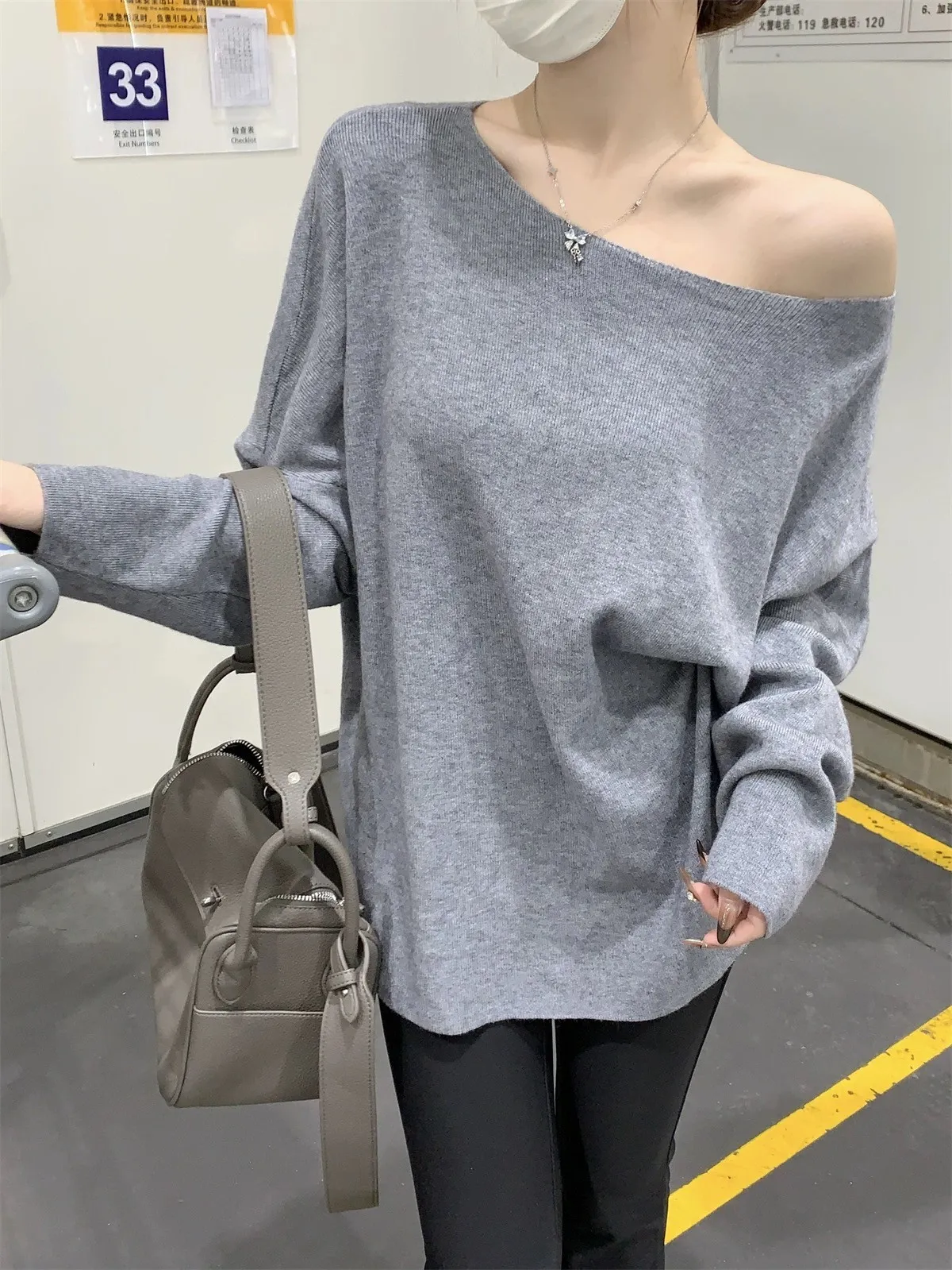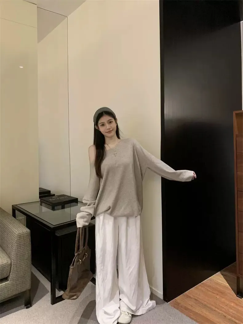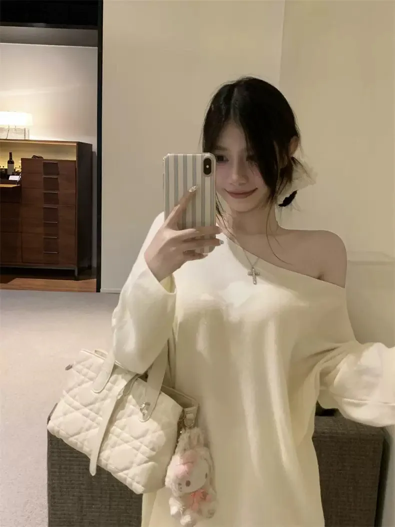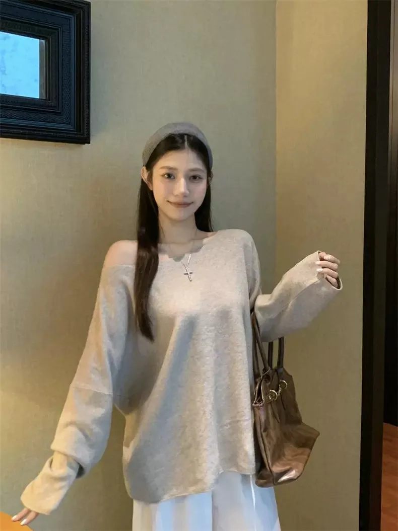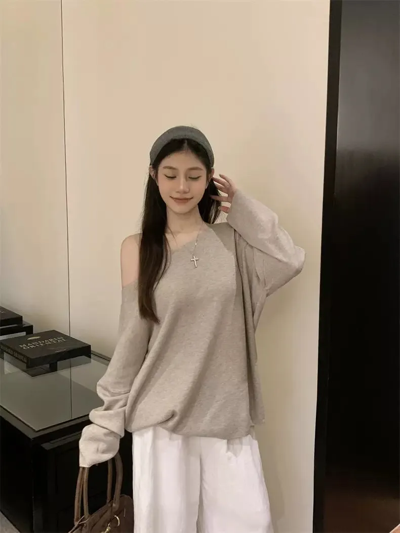 鬆弛慵懶感居家斜肩軟糯針織衫