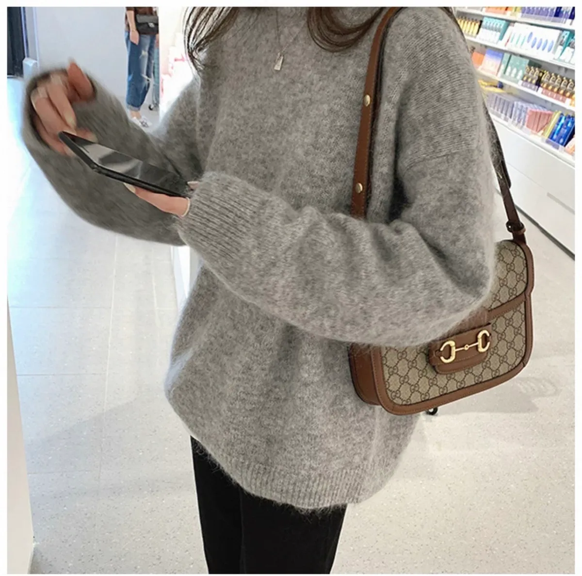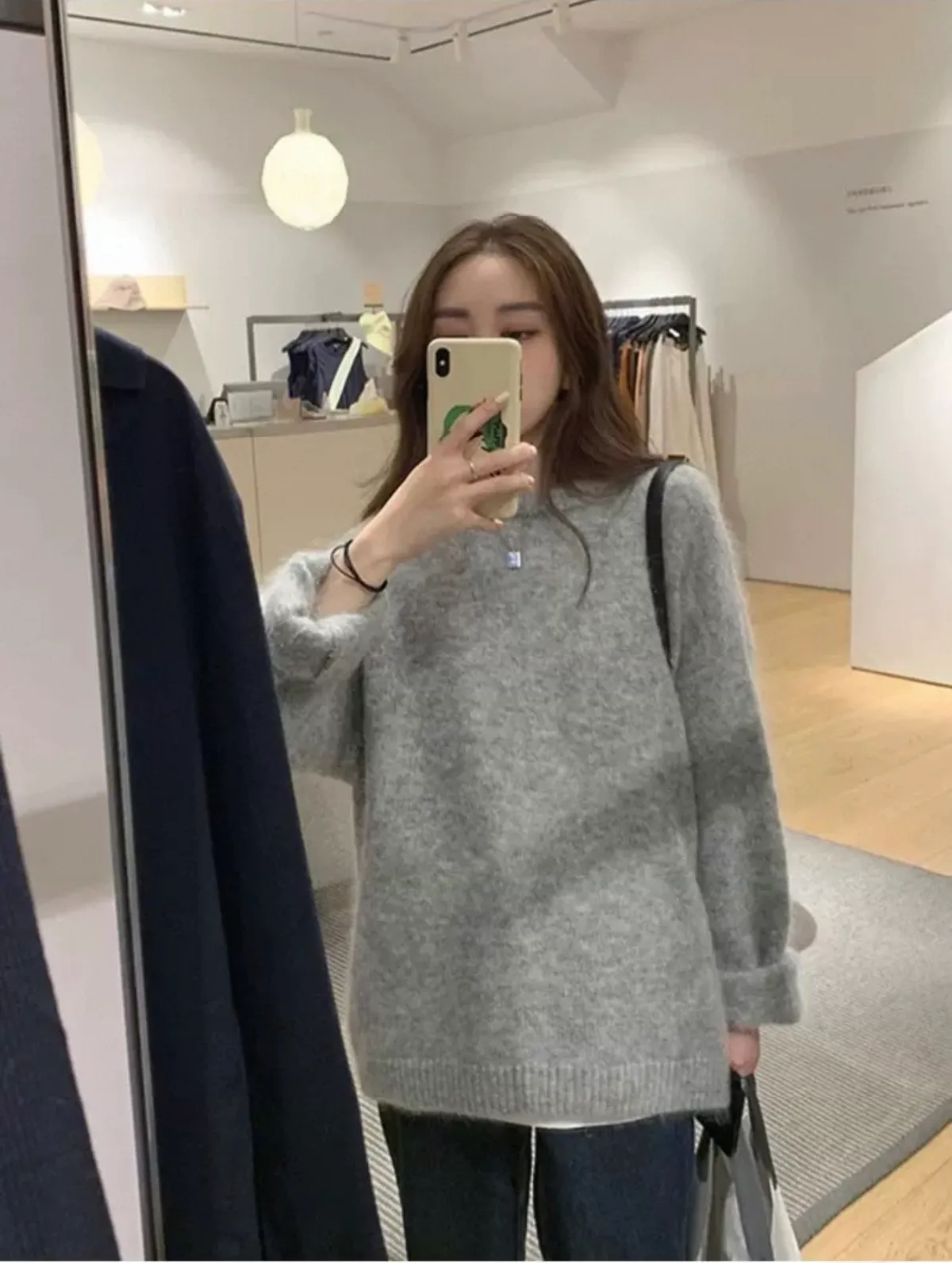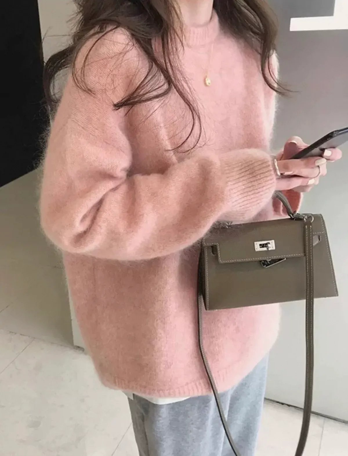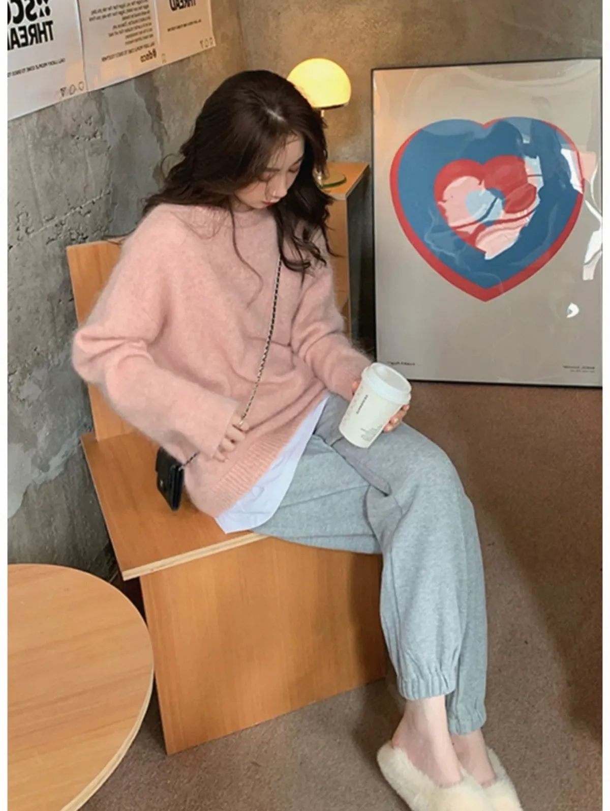 純色馬海毛軟糯慵懶感圓領針織毛衣