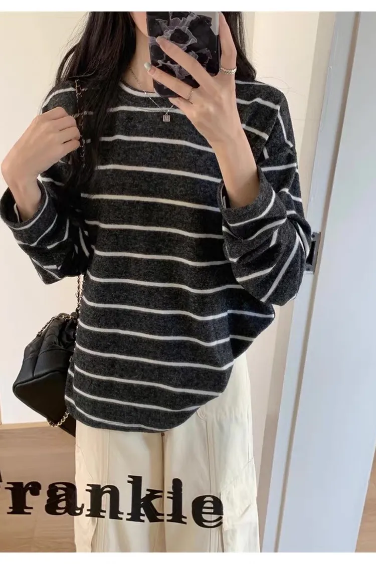 絕對舒適垂感軟糯微厚磨毛長袖上衣