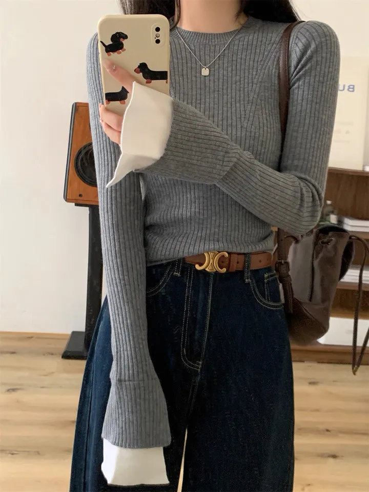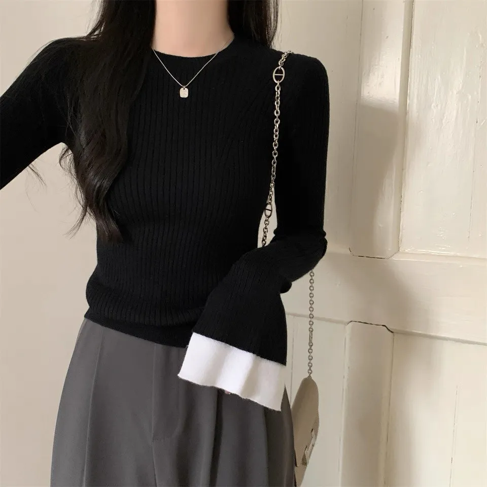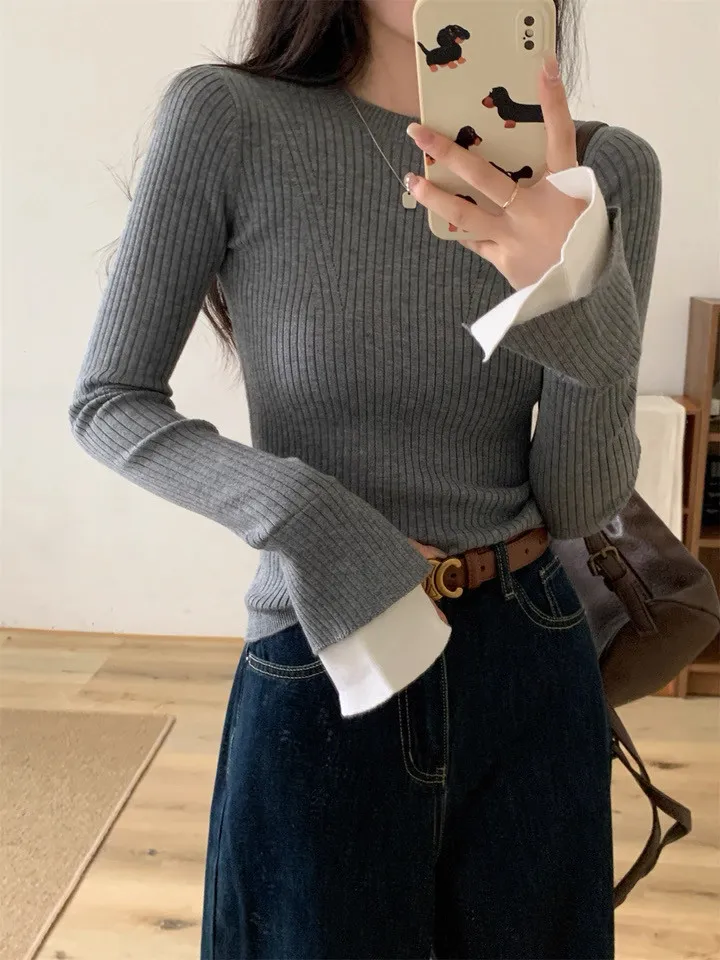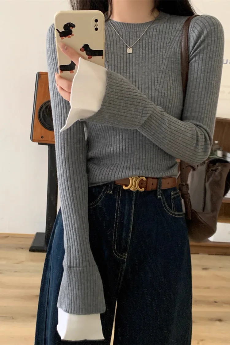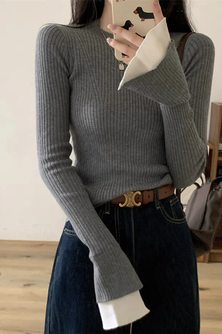 肌理感針織小眾喇叭袖打底衫