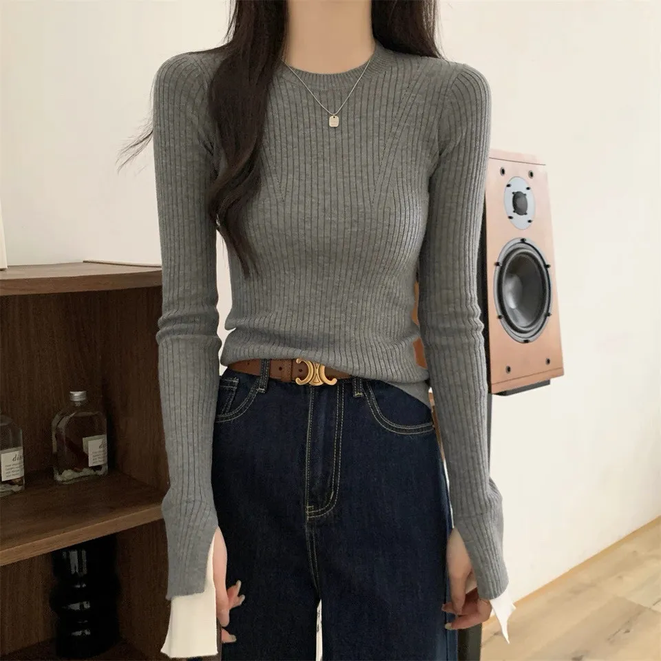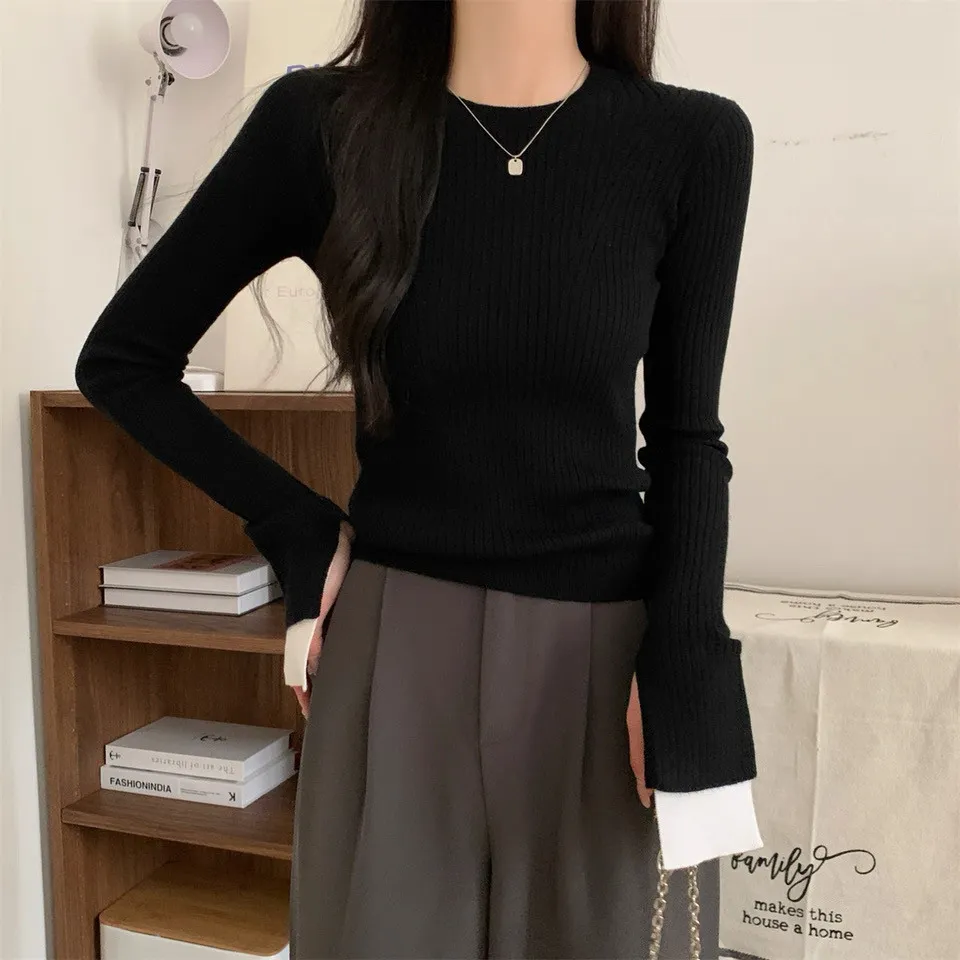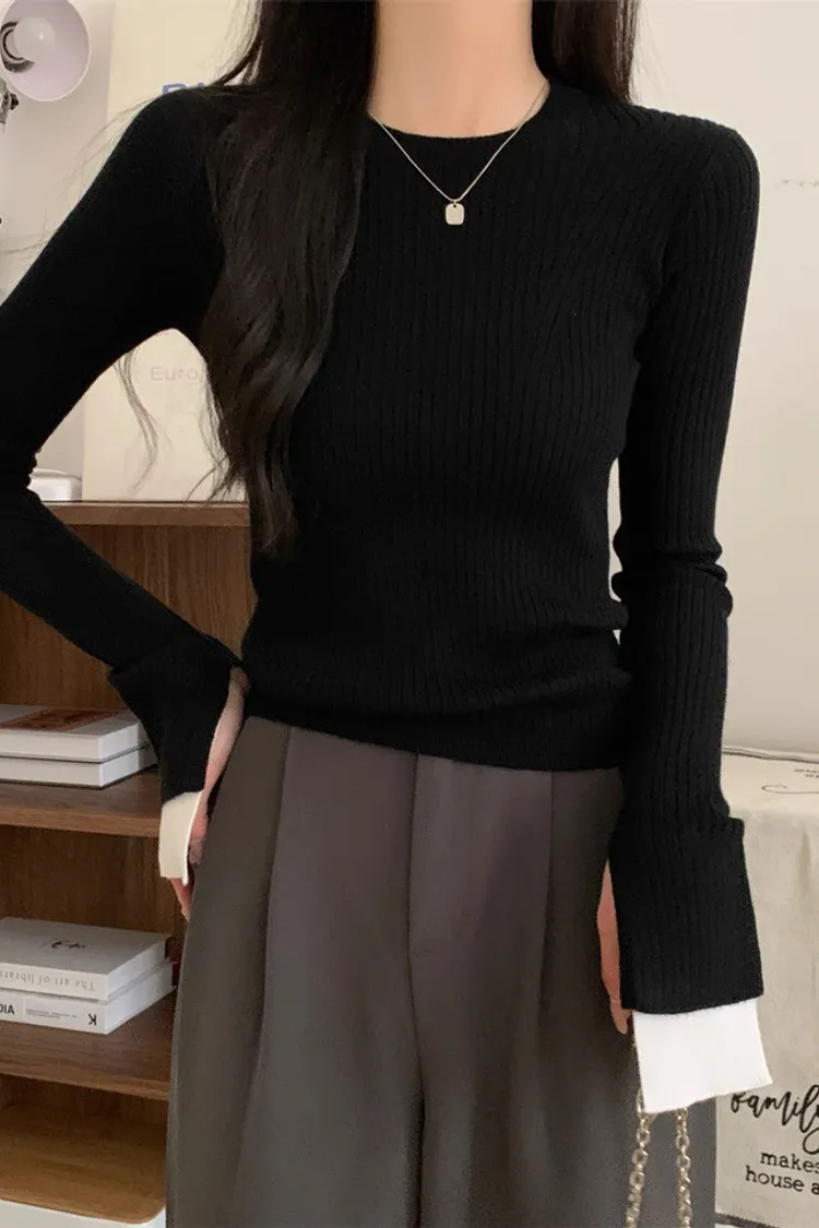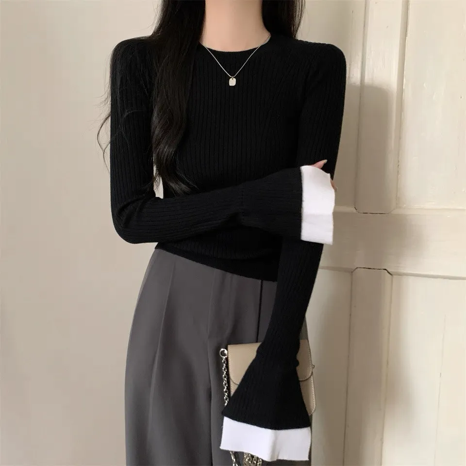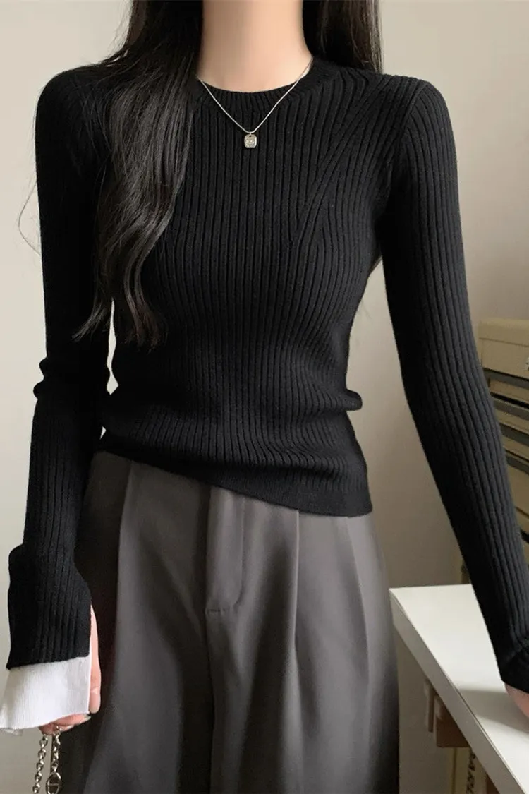 肌理感針織小眾喇叭袖打底衫