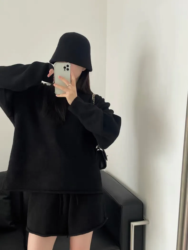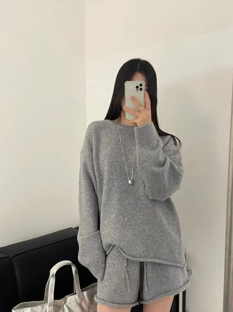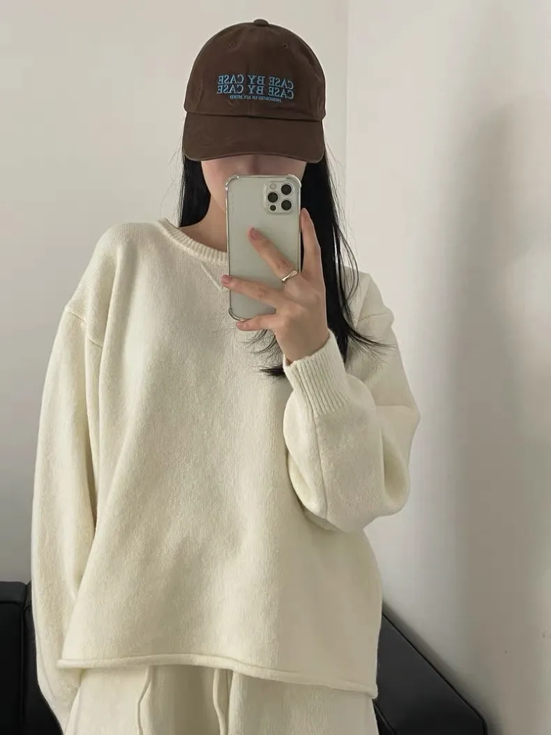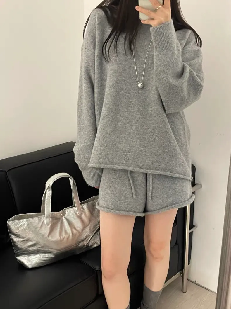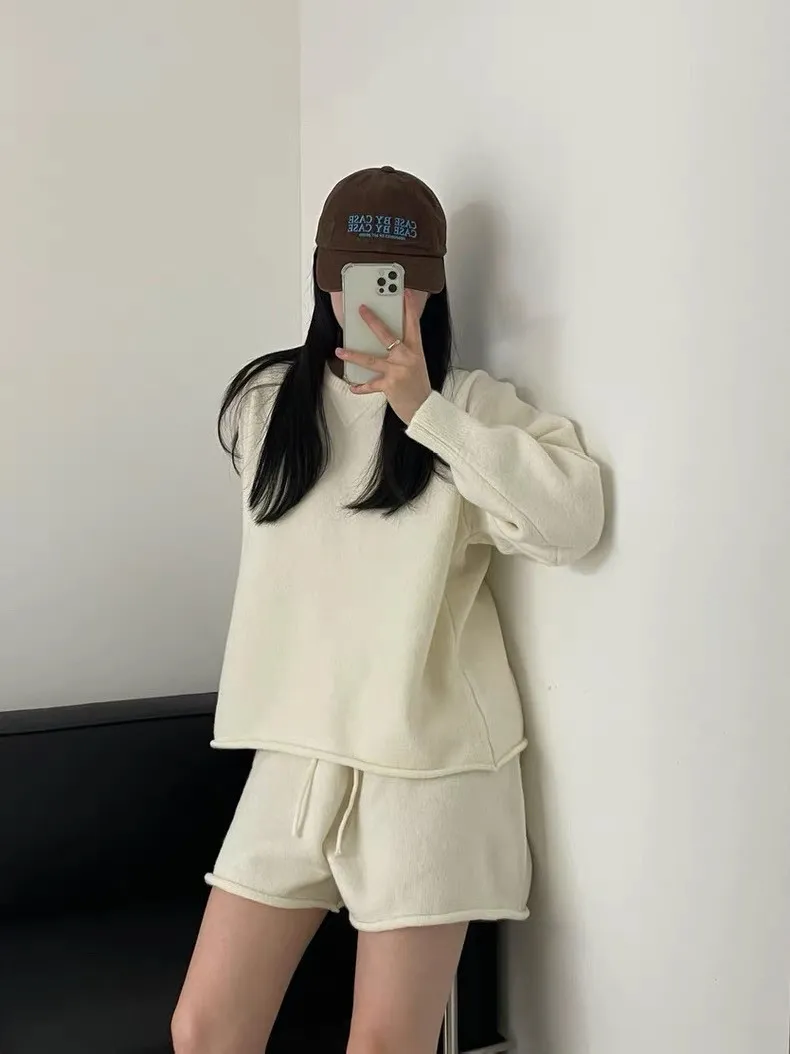 秋季慵懶軟糯寬鬆捲邊針織套裝